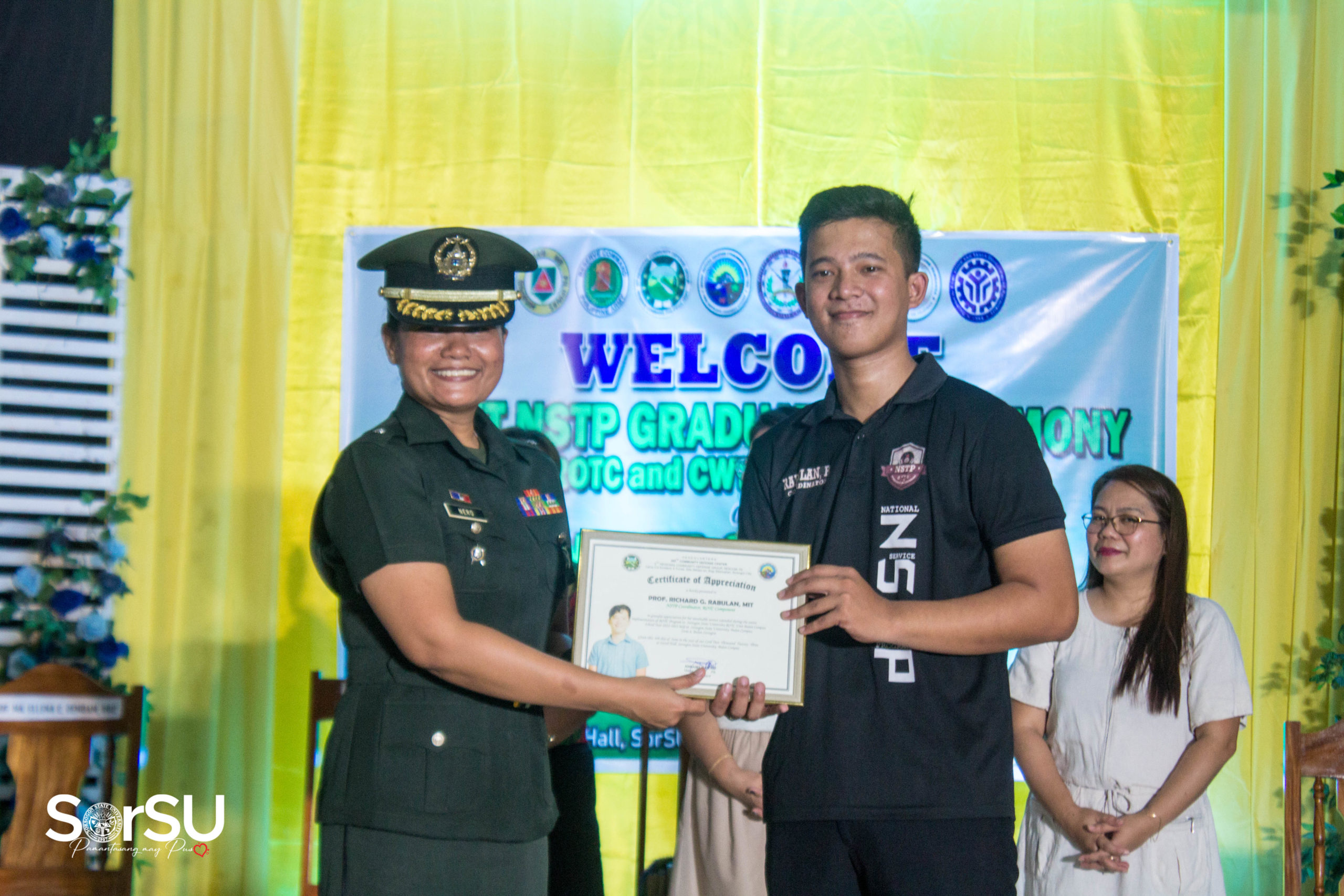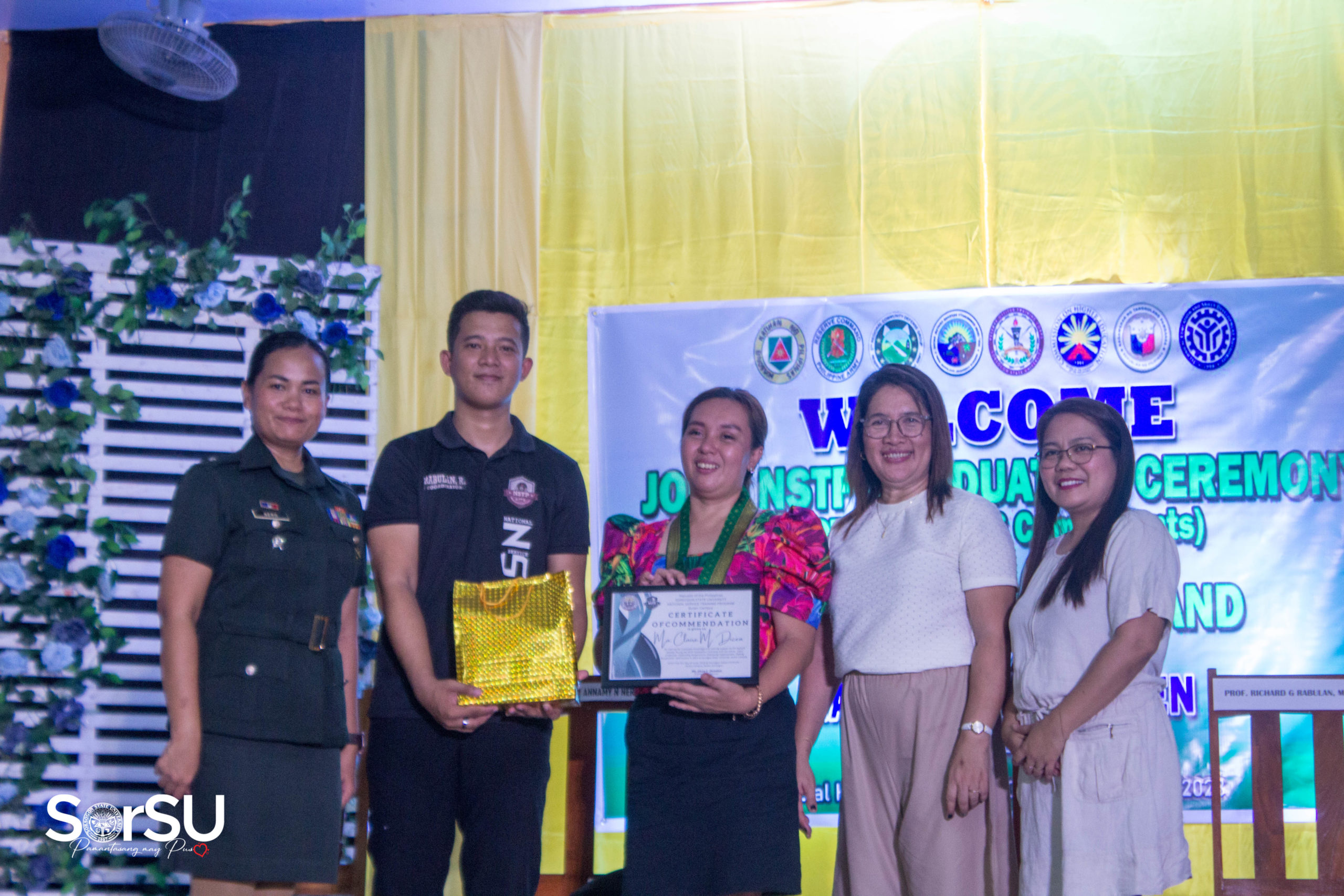 The event concluded with the presentation of Memento by MAJ Annamy N Nero (OS) PA to the NSTP Director assisted by LTC Allan Mangaser (INF) GSC PA (Assistant Commandant), which proceeded with closing remarks and the signing of the SorSU Hymn.