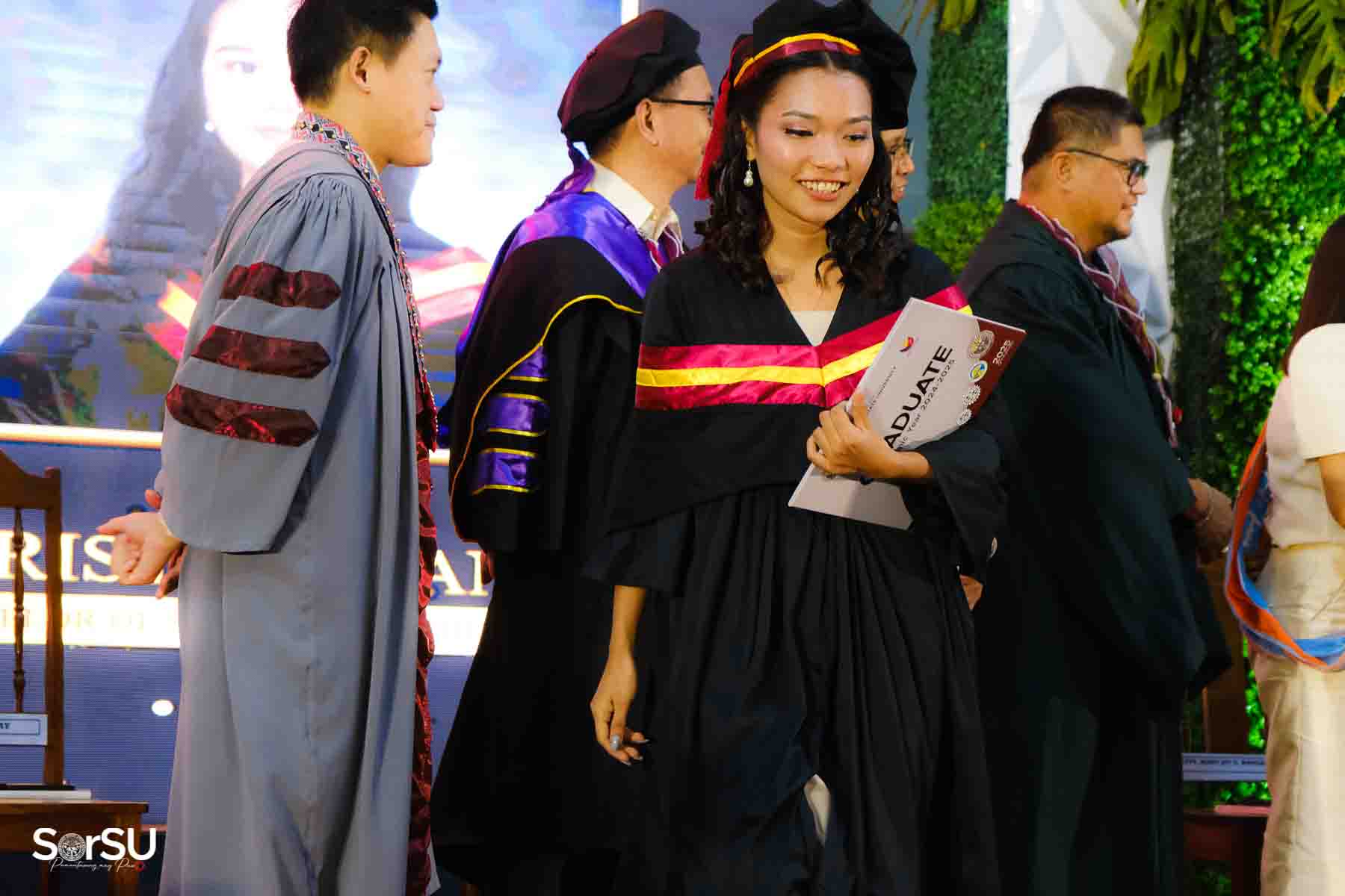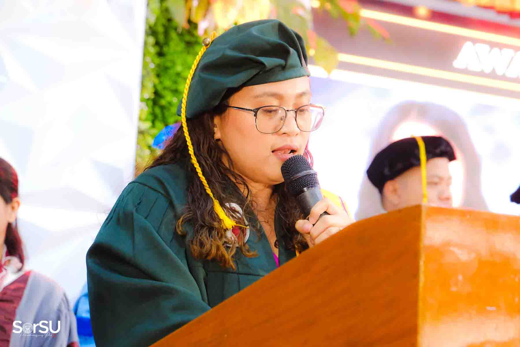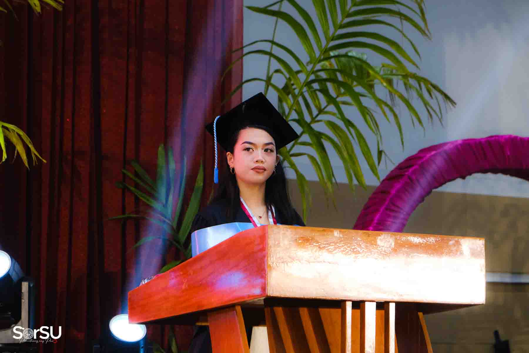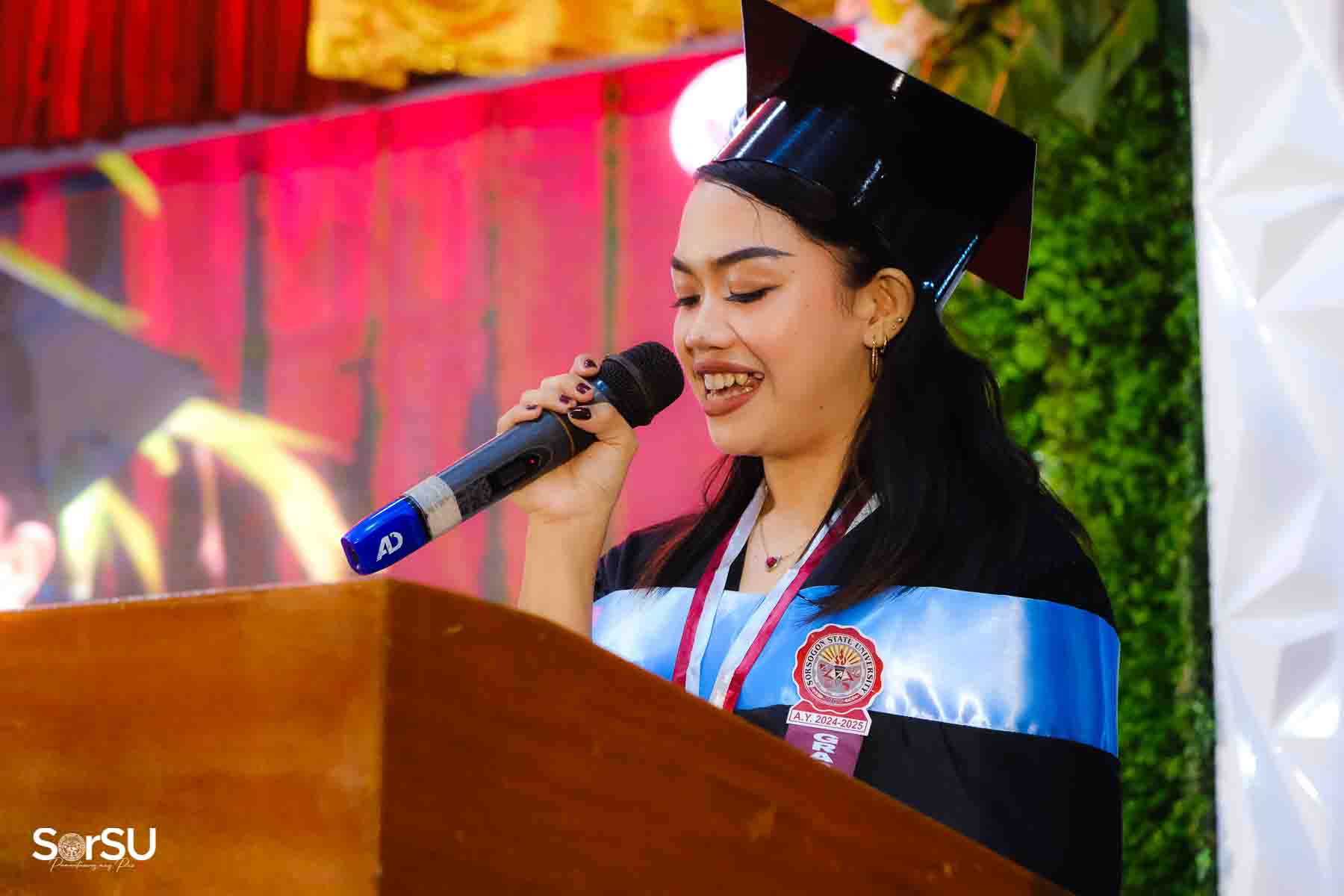 Following the commencement address was the awarding of medals to honor students and diplomas to the graduates. Ms. Alexisse Anne B. Escobal (BSNED), Magna Cum Laude, delivered the Words of Gratitude on behalf of the Class of 2025 graduates. The 32nd Commencement Exercises Day 3 concluded with the singing of the SorSU Hymn.