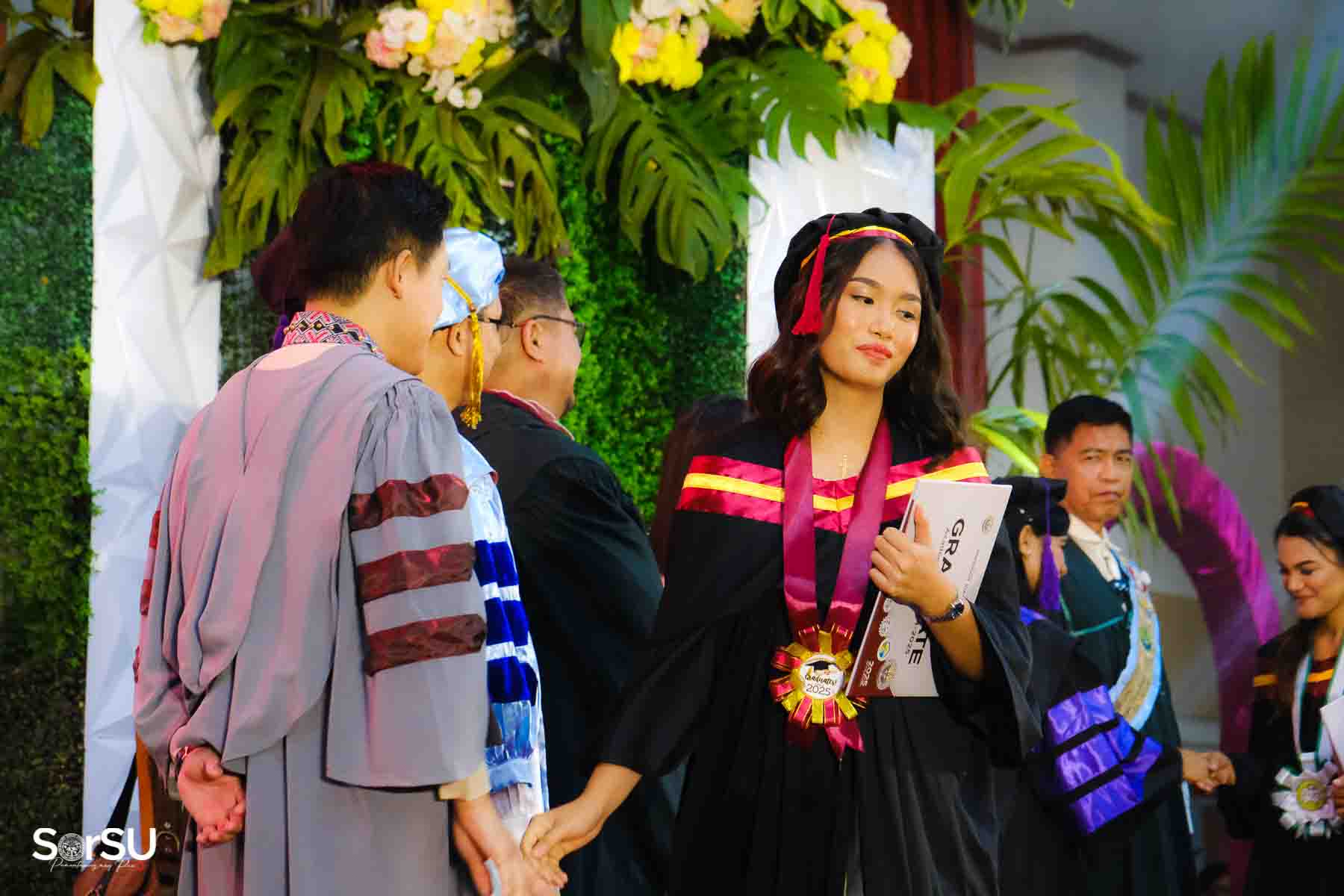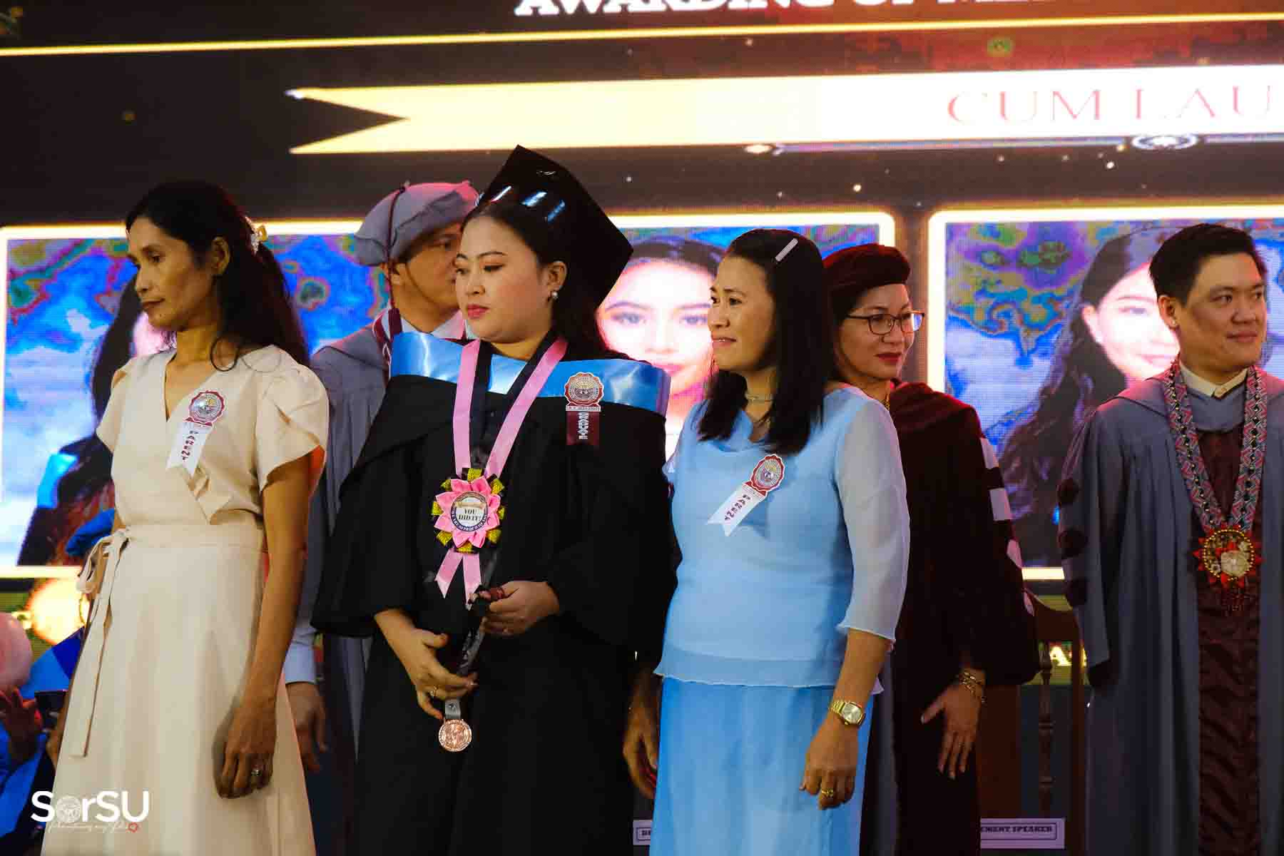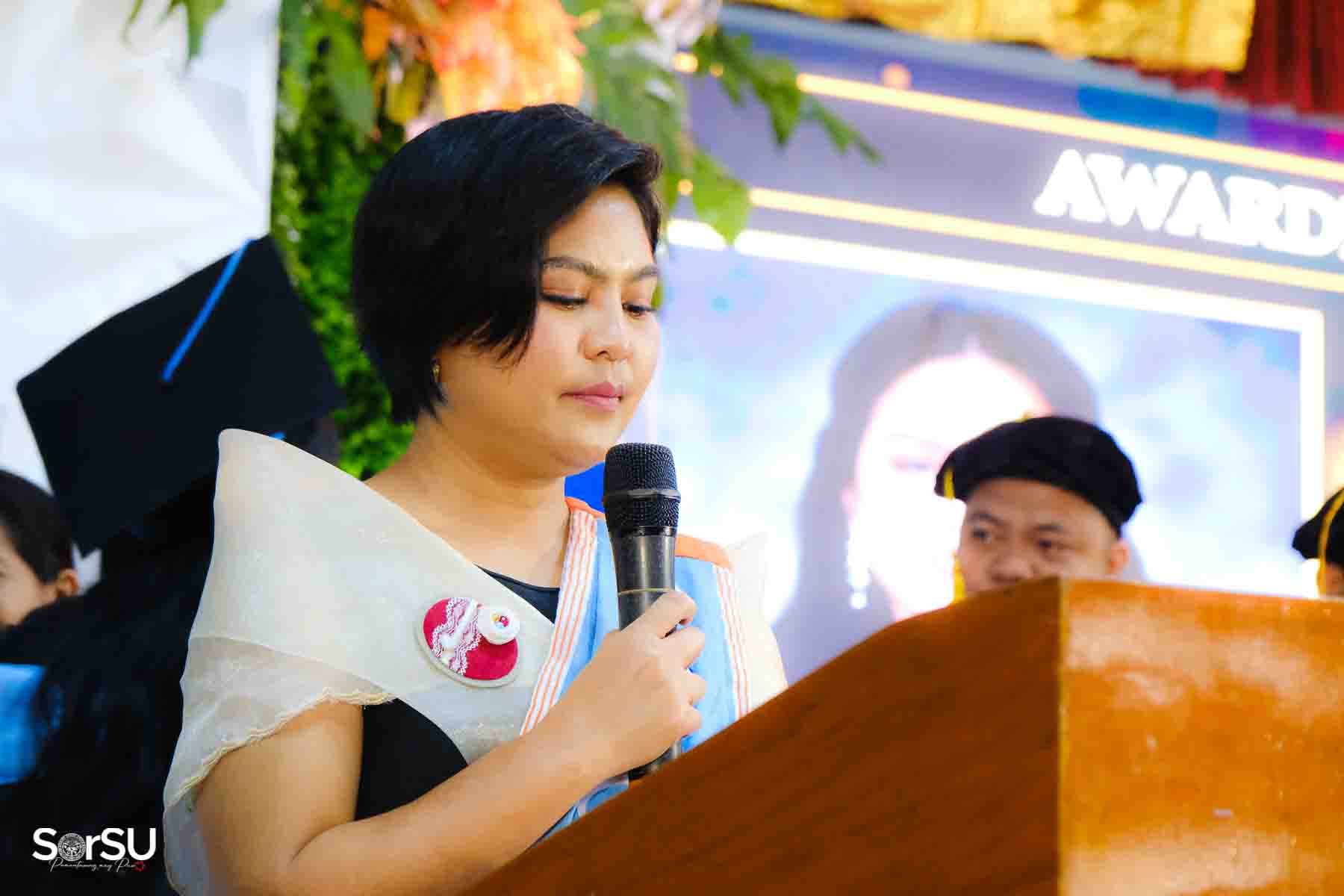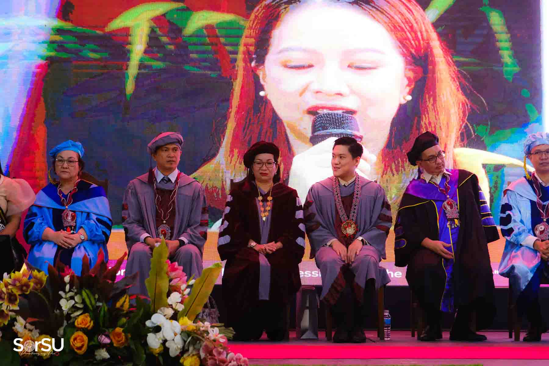 Following the commencement address was the awarding of medals to honor students and diplomas to the graduates. Ms. Alexisse Anne B. Escobal (BSNED), Magna Cum Laude, delivered the Words of Gratitude on behalf of the Class of 2025 graduates. The 32nd Commencement Exercises Day 3 concluded with the singing of the SorSU Hymn.