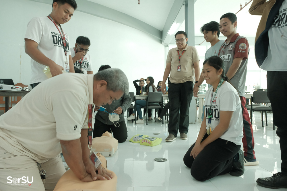 Spearheaded and organized by the Sorsogon City Disaster Risk Reduction and Management Office (CDRRMO), a total of 35 Sorsogon State University – Disaster Risk Reduction and Management/Climate Change (SorSU-DRRM/CC) Team Officers, Coordinators, Members, and Student Volunteers, headed by Prof. Saturnino C. Carranza (Director, SorSU-DRRM/CC), successfully completed a three-day Standard First Aid Training, held from January 23-25, 2025, at the SorSU E-library, Sorsogon City Campus.