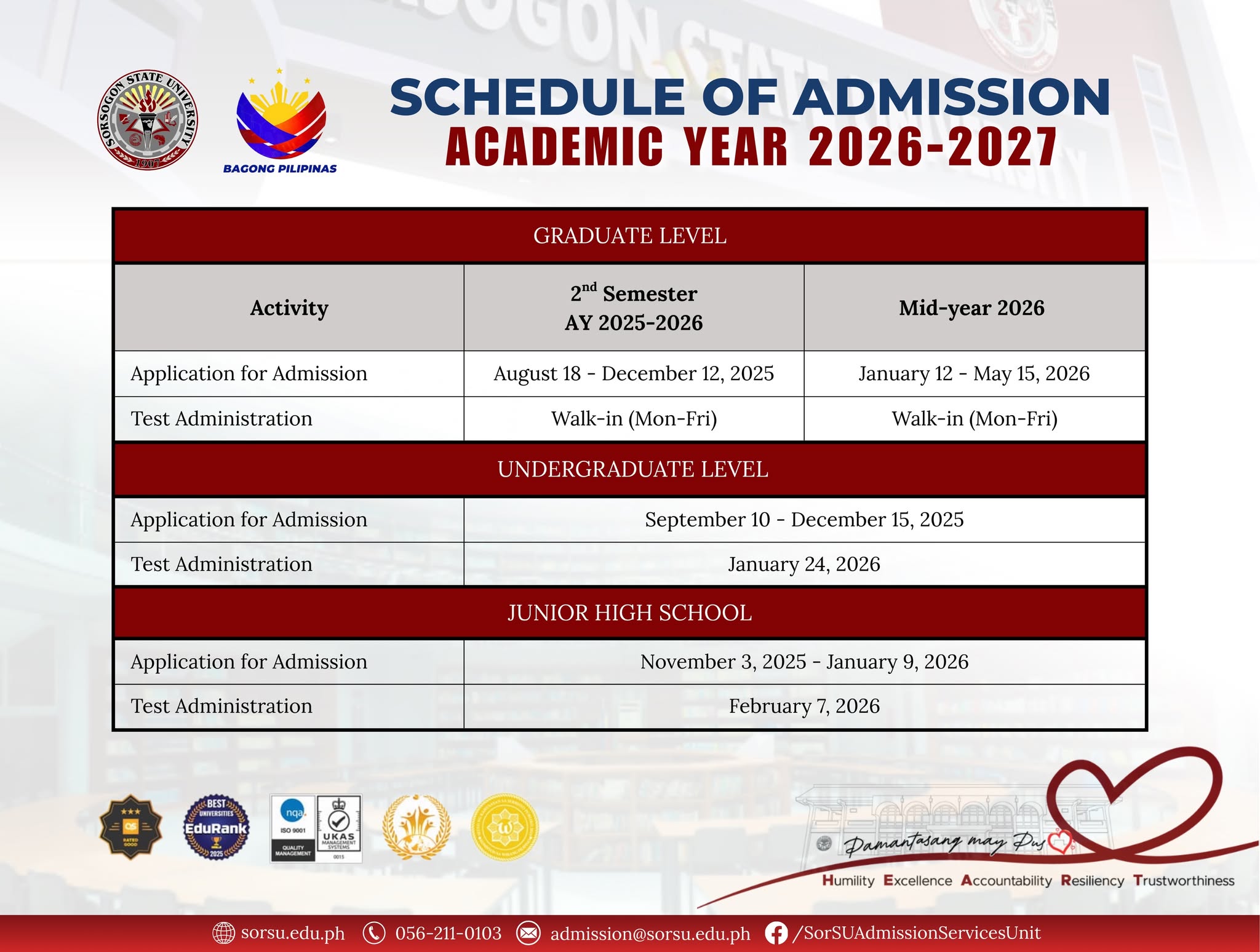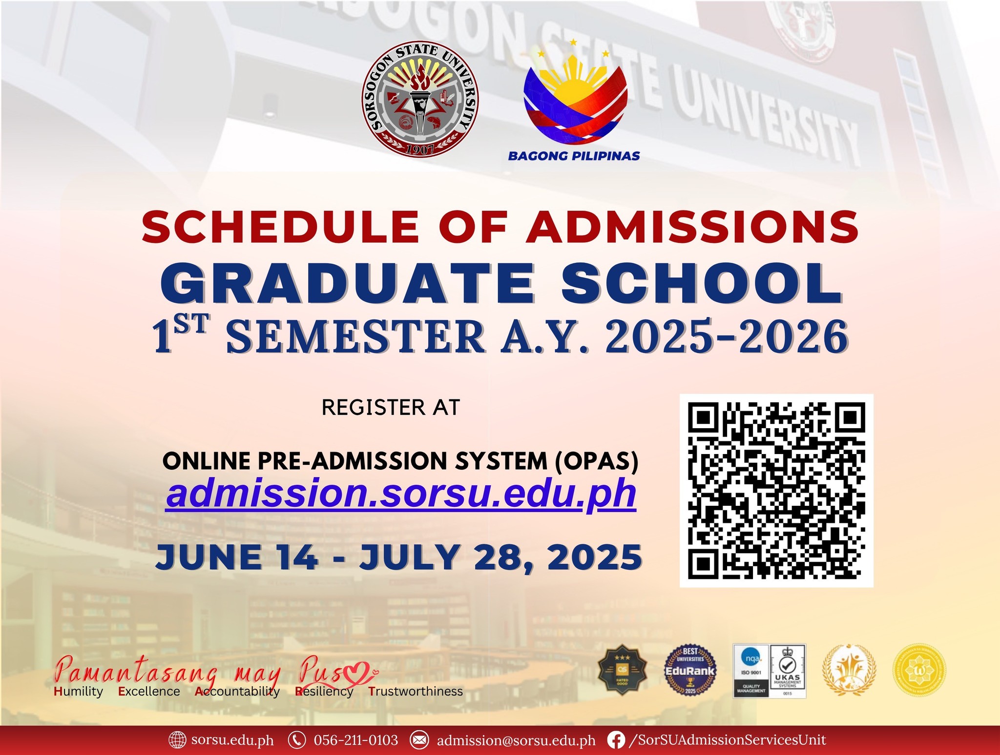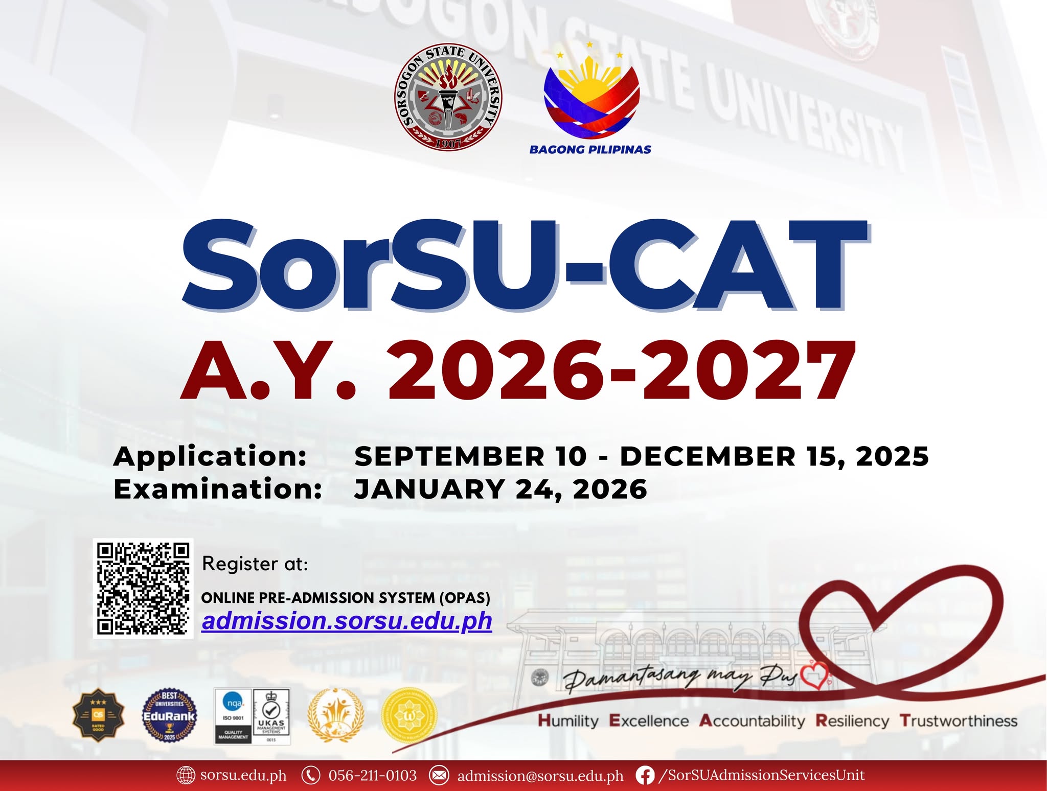 Facebook: https://www.facebook.com/SorSUAdmissionServicesUnit
