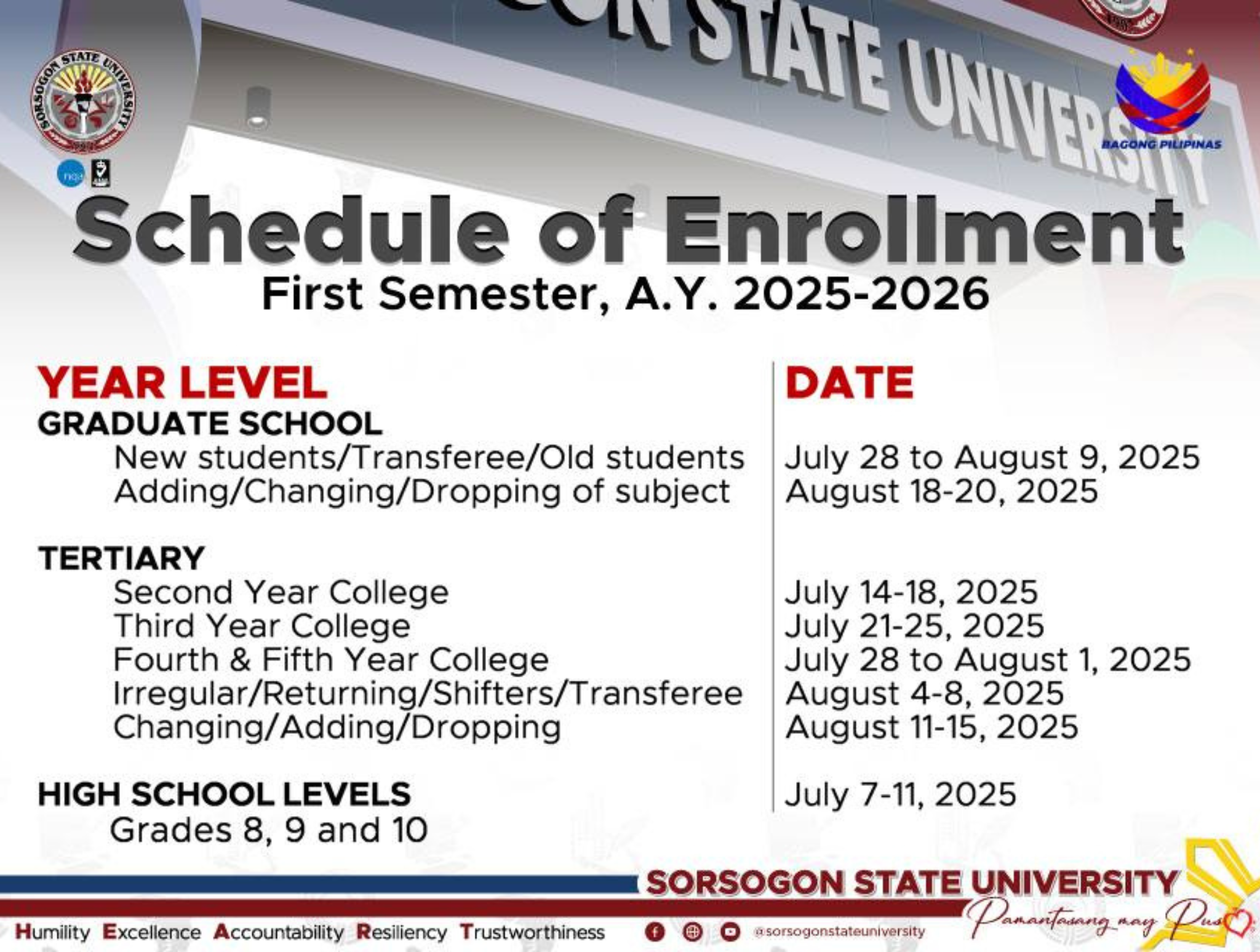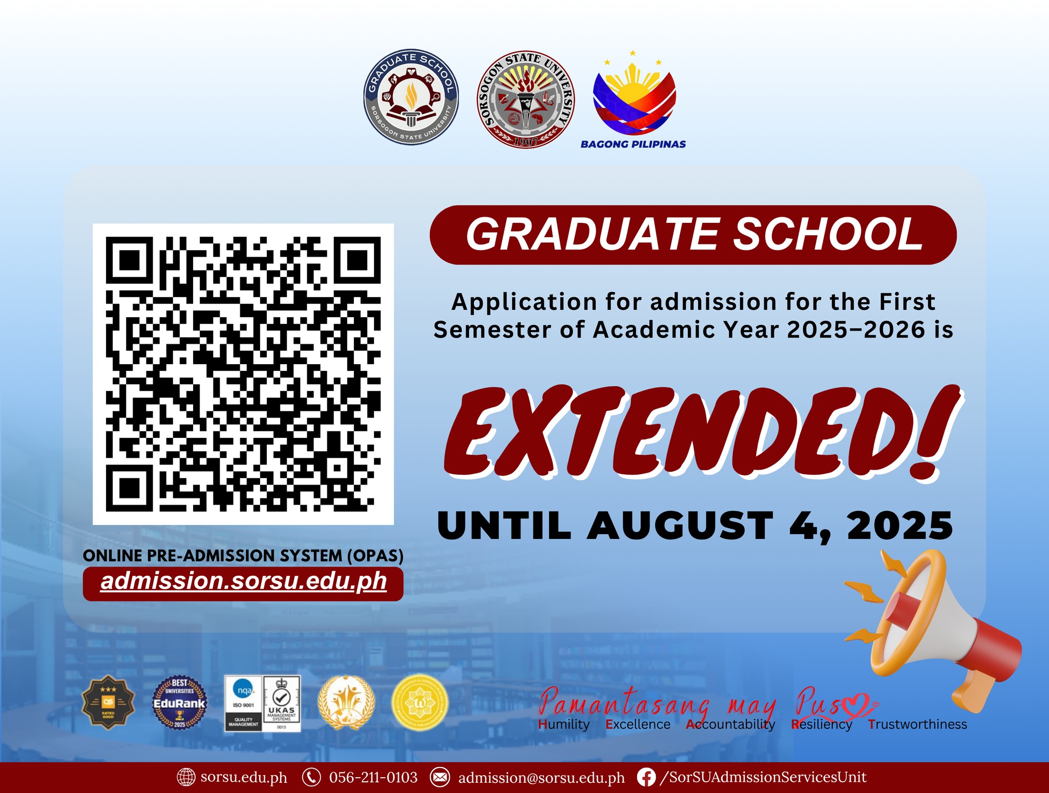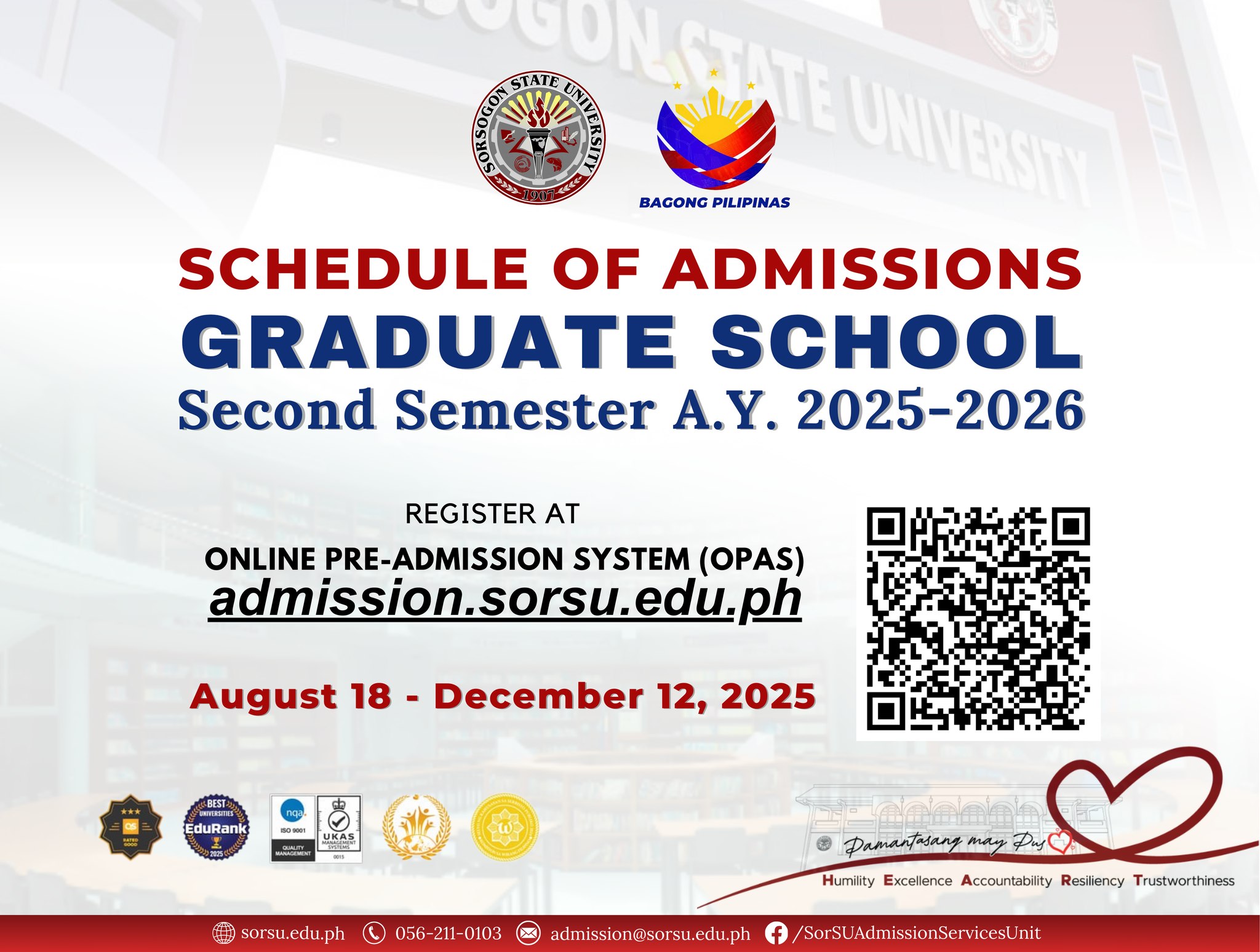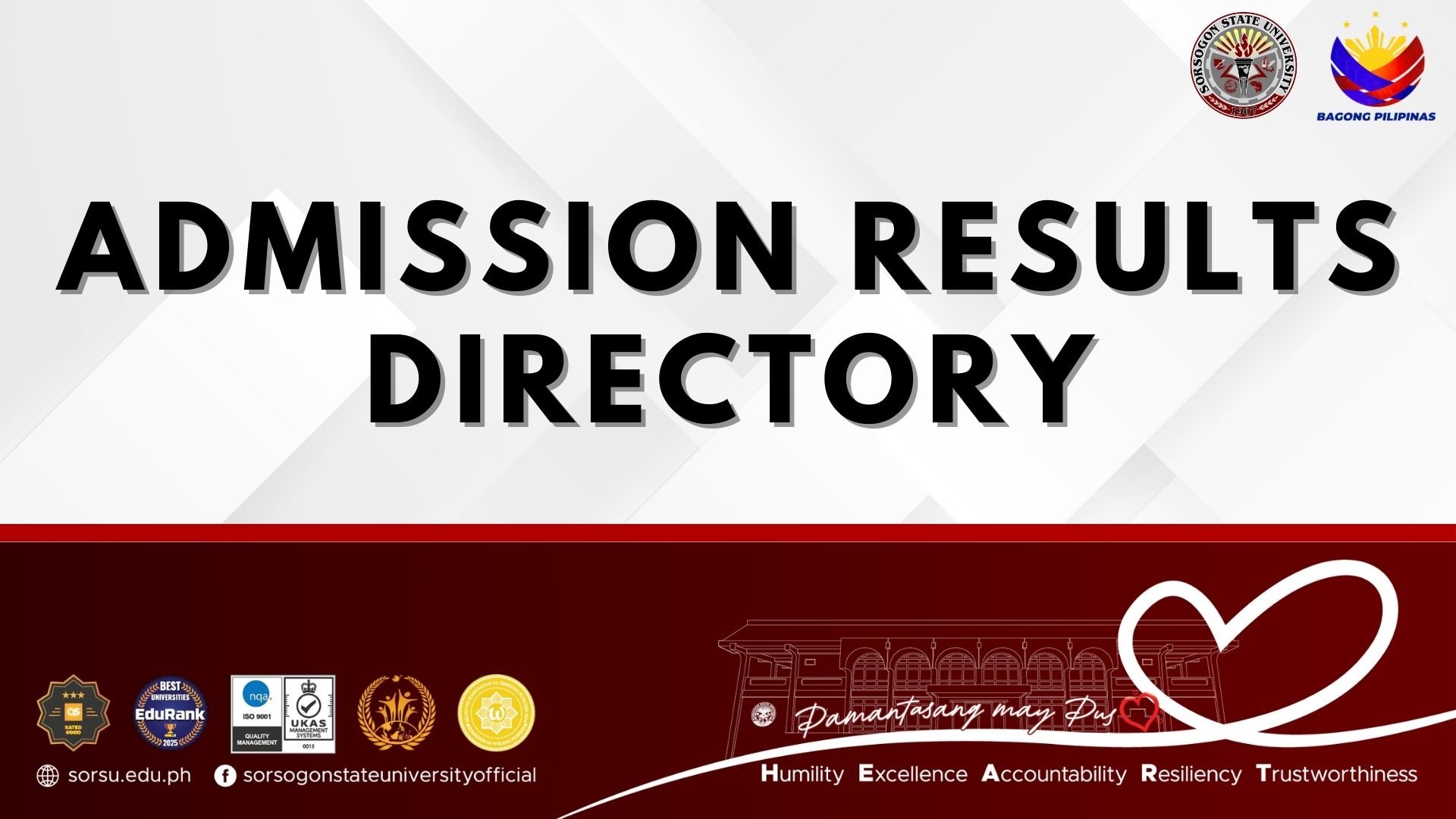 Facebook: https://www.facebook.com/SorSUAdmissionServicesUnit