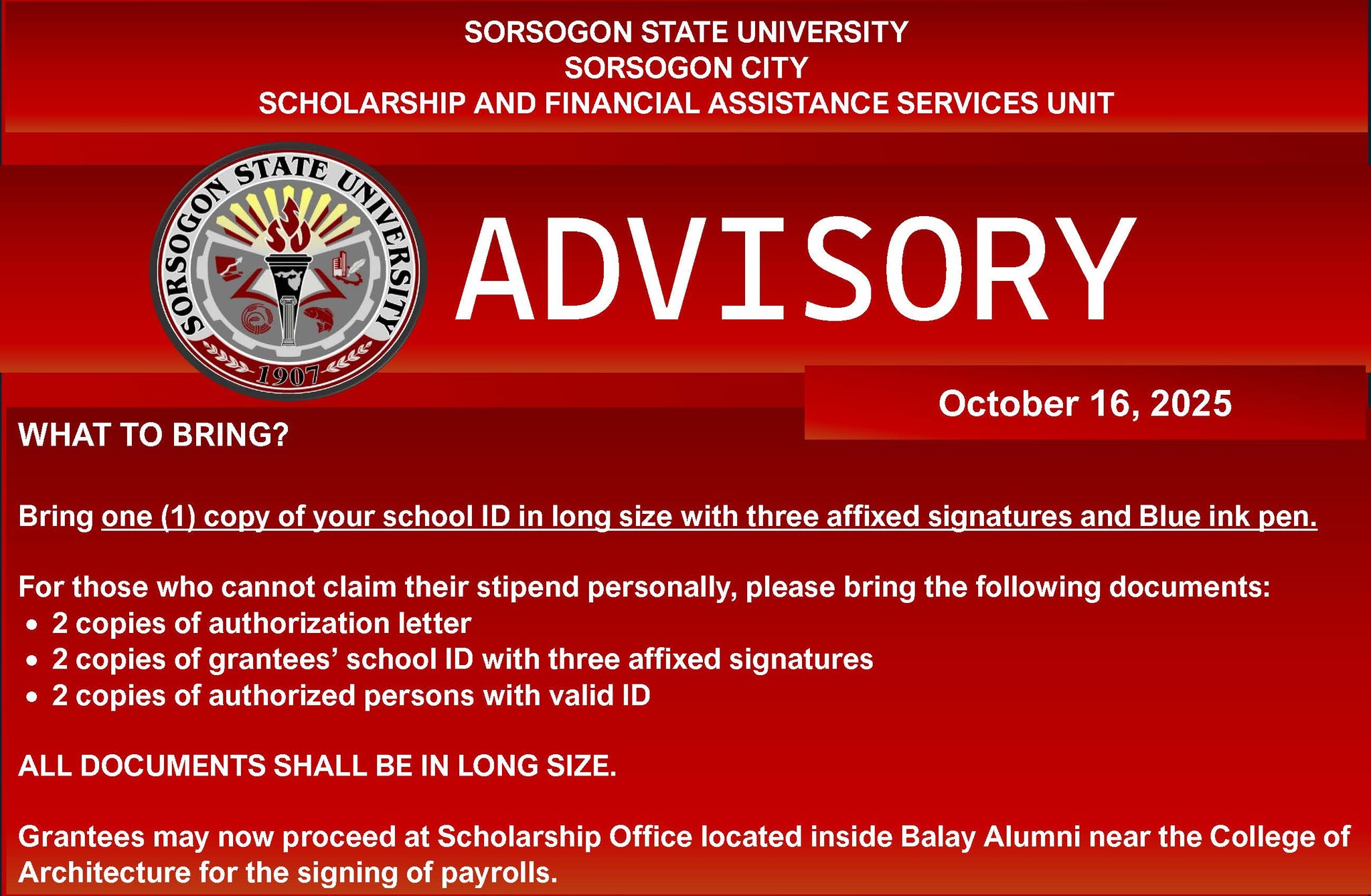 📍 Location: Scholarship Office inside Balay Alumni, near the College of Architecture