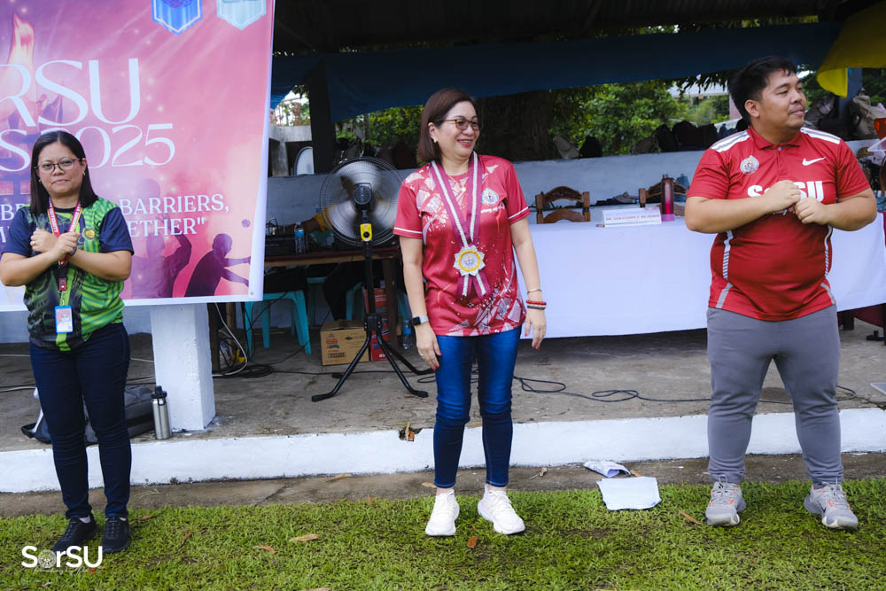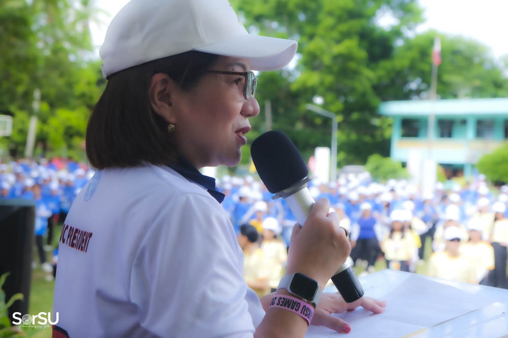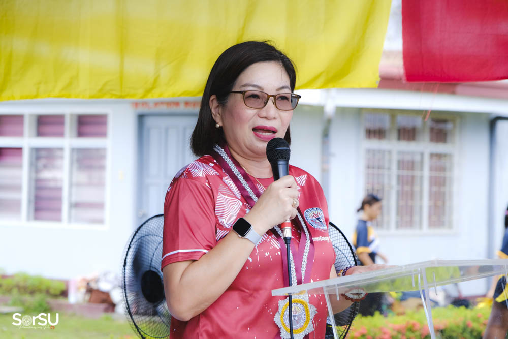 SUC President III, Dr. Geraldine F. De Jesus, actively joined the opening ceremonies of the SorSU Games 2025 at the Bulan, Castilla, and Magallanes Campuses on May 5, 6, and 7, 2025, respectively, demonstrating the administration’s commitment to supporting University events and fostering community spirit.