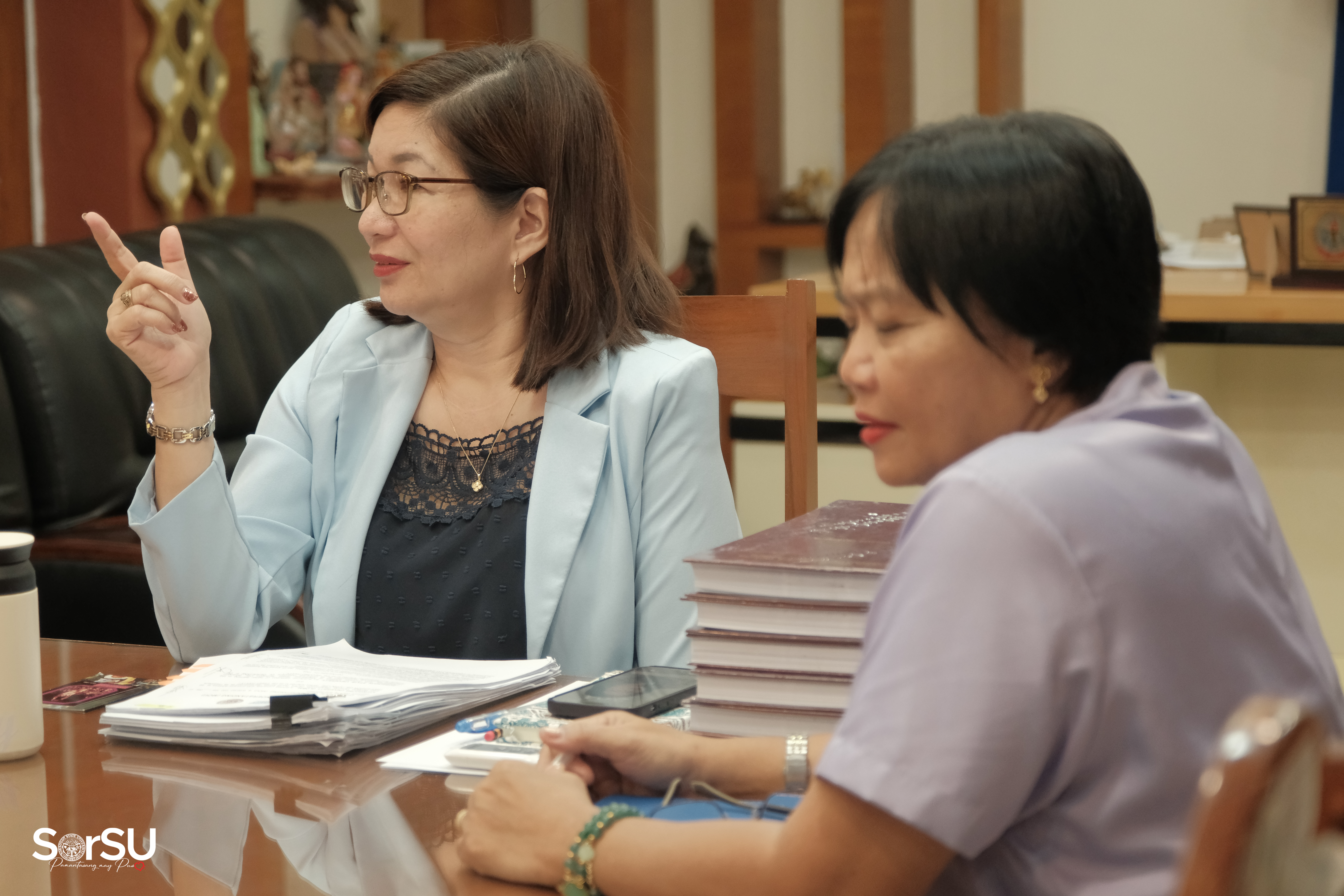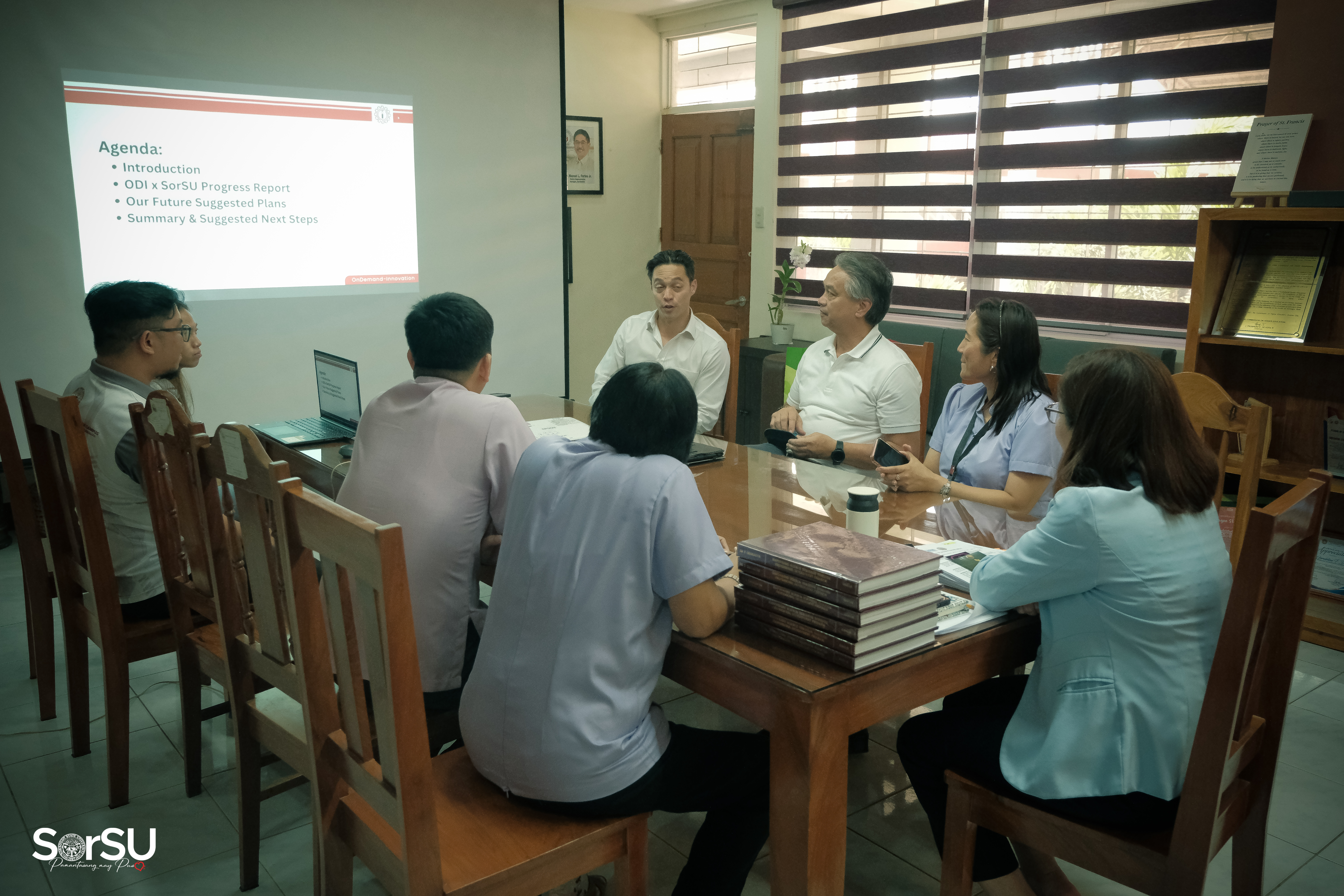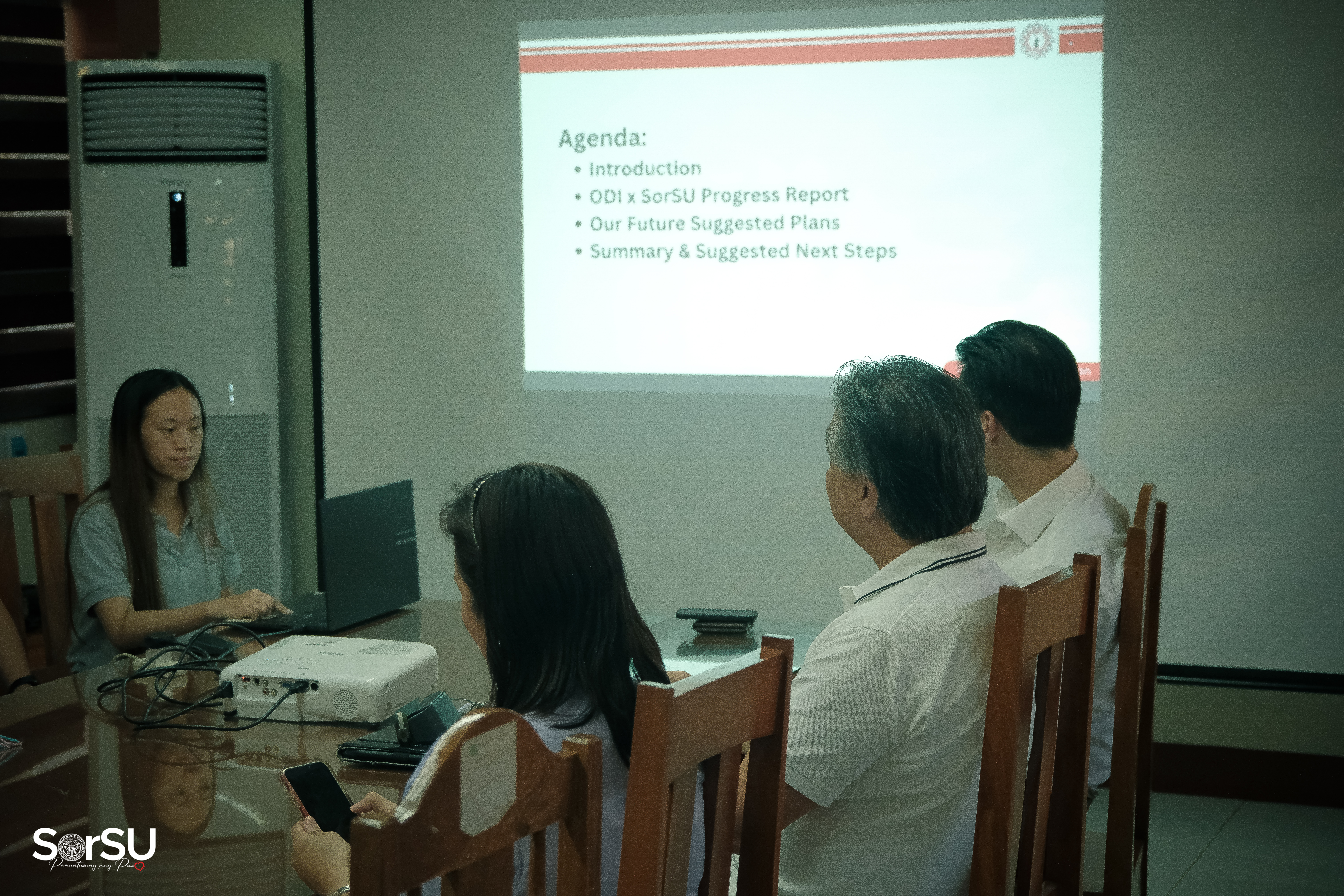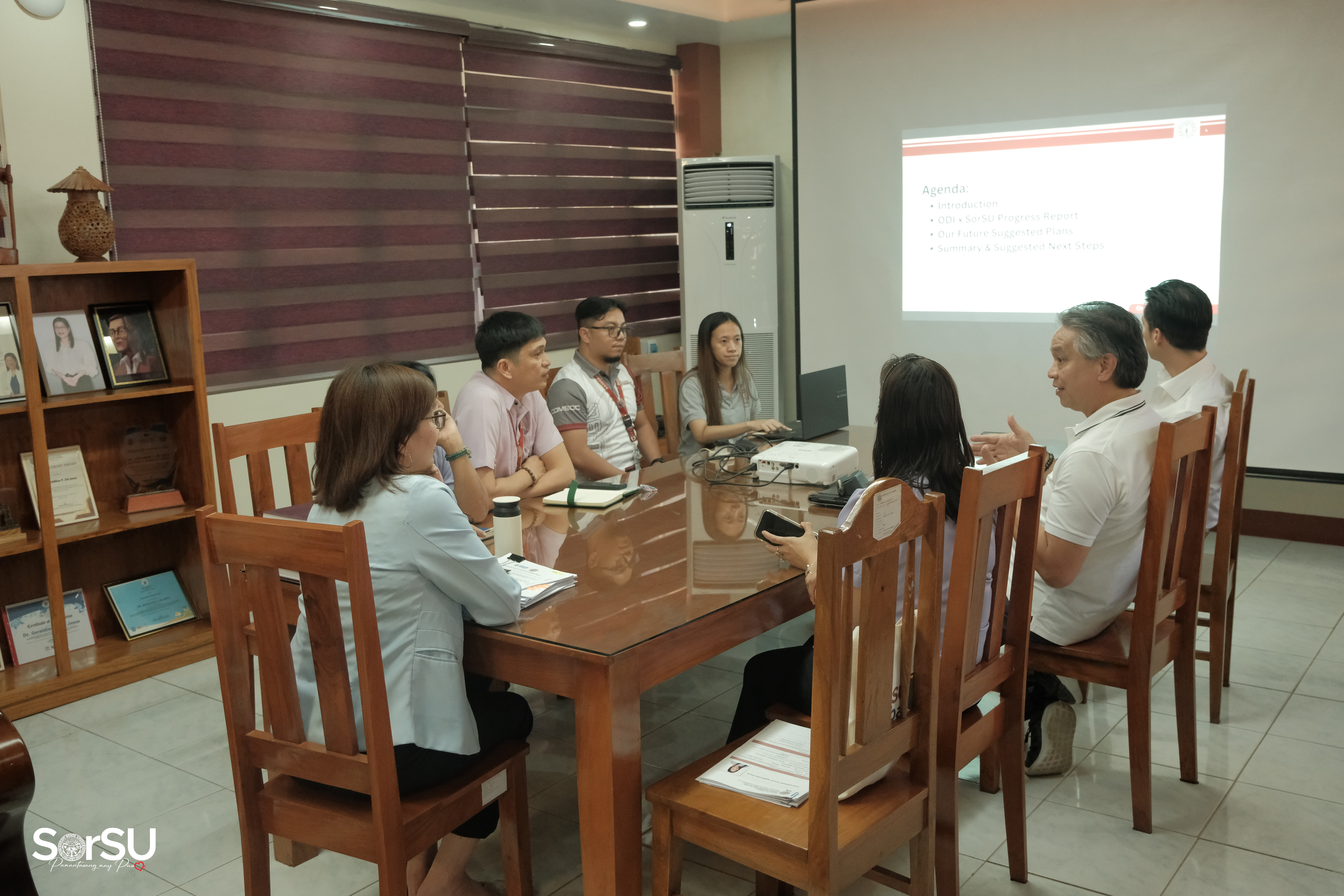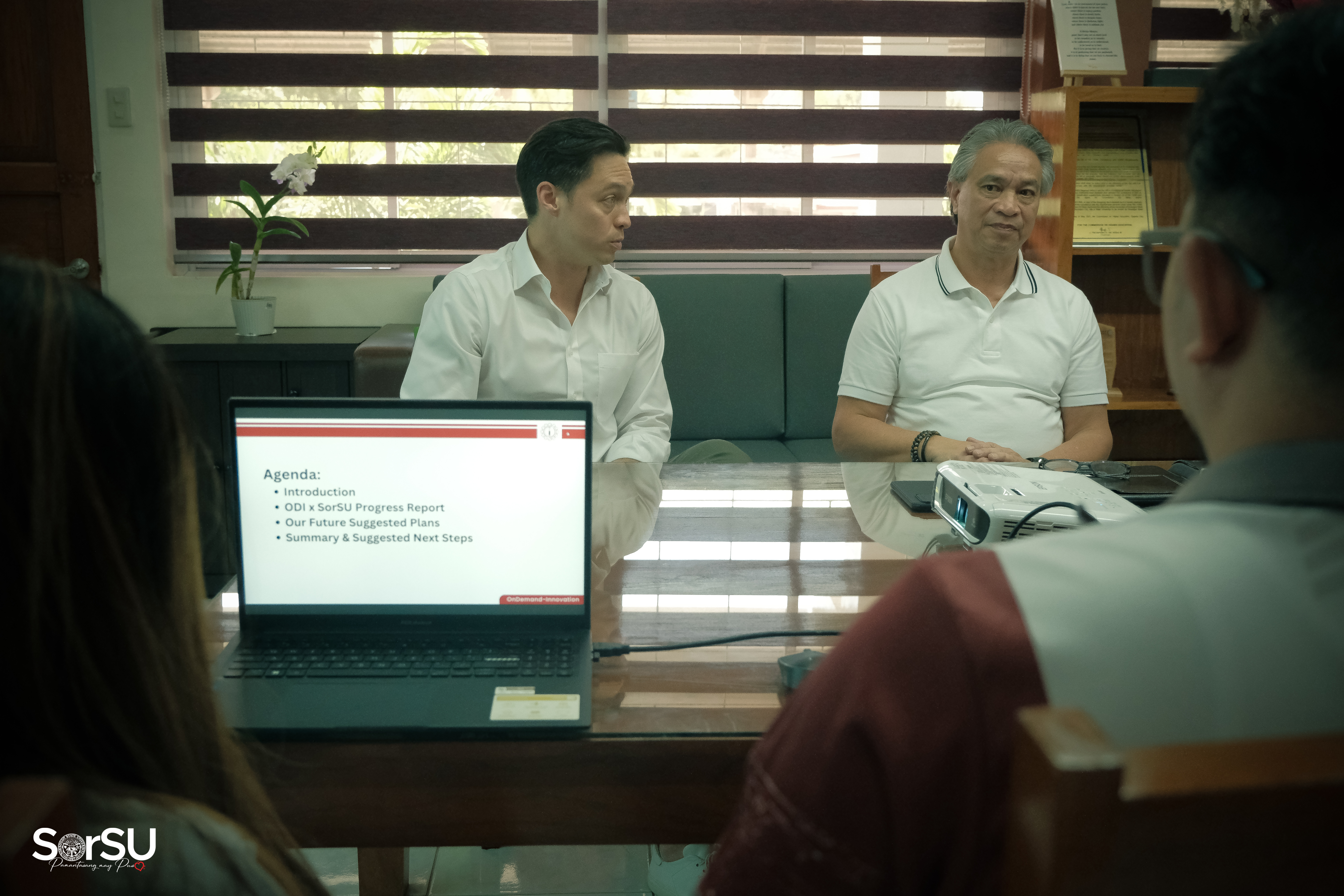 Subsequently, CEO Espina spearheaded a presentation meeting with President De Jesus alongside concerned SorSU Top Executives, wherein the former discussed matters relative to the ODI & SorSU Progress Report, particularly regarding the internship, assistance, & recruitment program for SorSUeno students, as well as the proposed curriculum mapping.