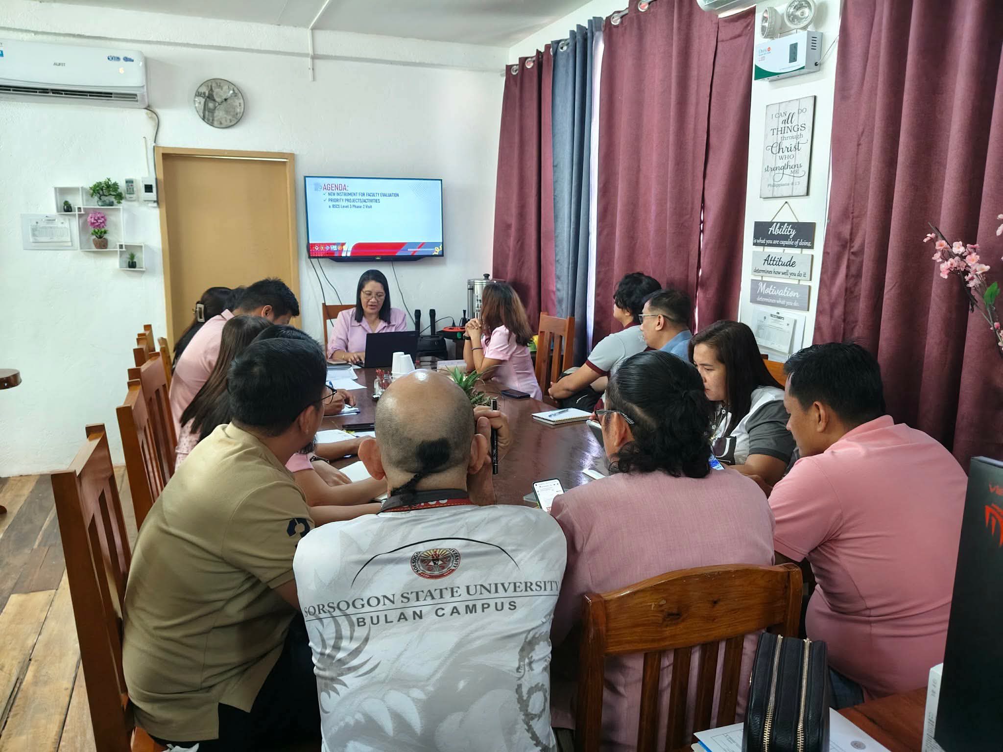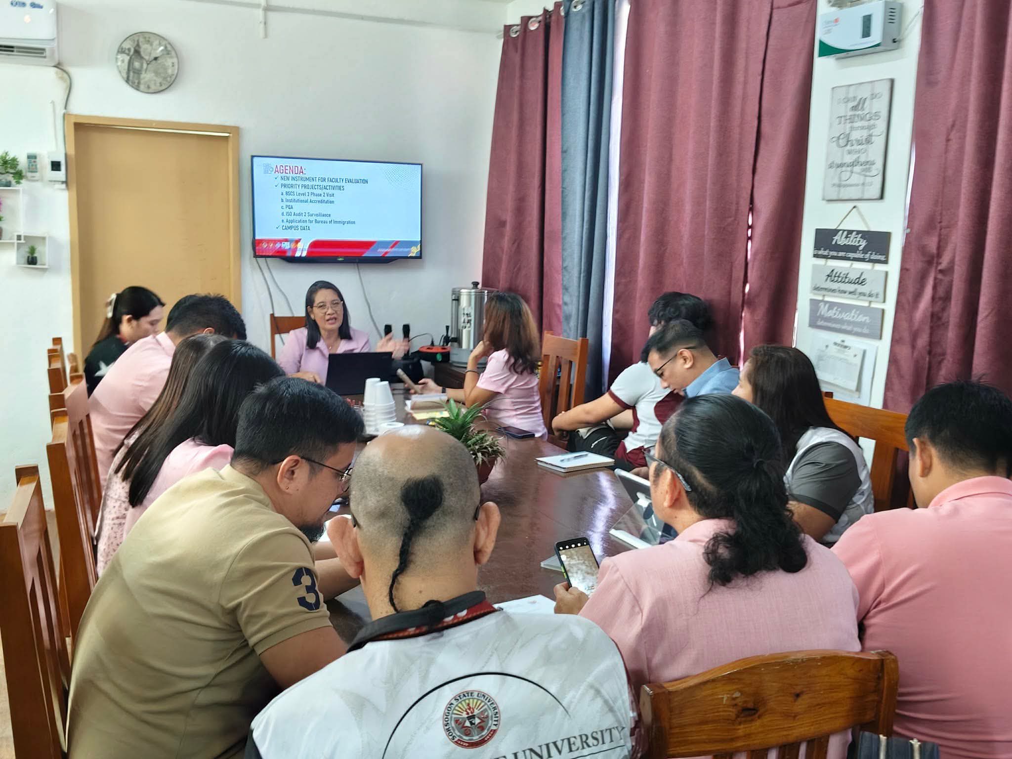 The meeting underscored the importance of coordination across offices in achieving institutional goals, ensuring quality service delivery, and sustaining the University’s standards in instruction, research, extension, and governance. Sorsogon State University – Bulan Campus