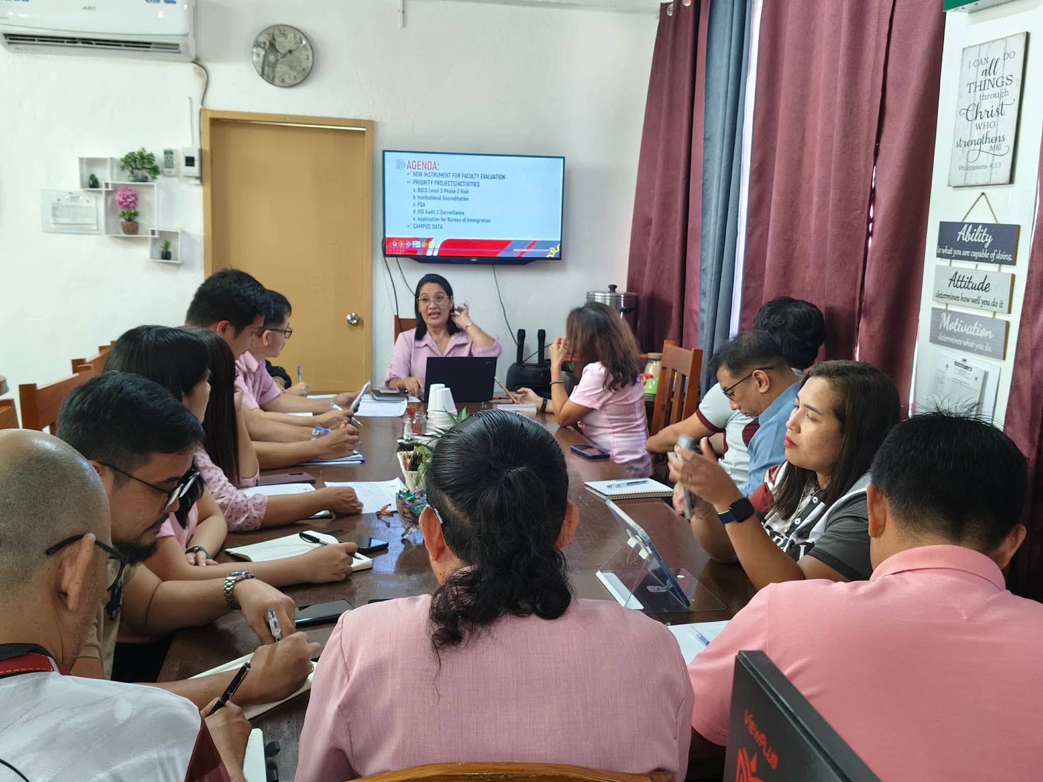 Presided over by the Campus Director, the meeting served as a venue for presenting updates on recent developments affecting both the Bulan Campus and the University as a whole. Among the major agenda items discussed were the results of the 4th Quarter 2025 Board of Regents Meeting, the 2025 performance results per delivery unit, and the alignment of targets for Institutional Performance in 2026.