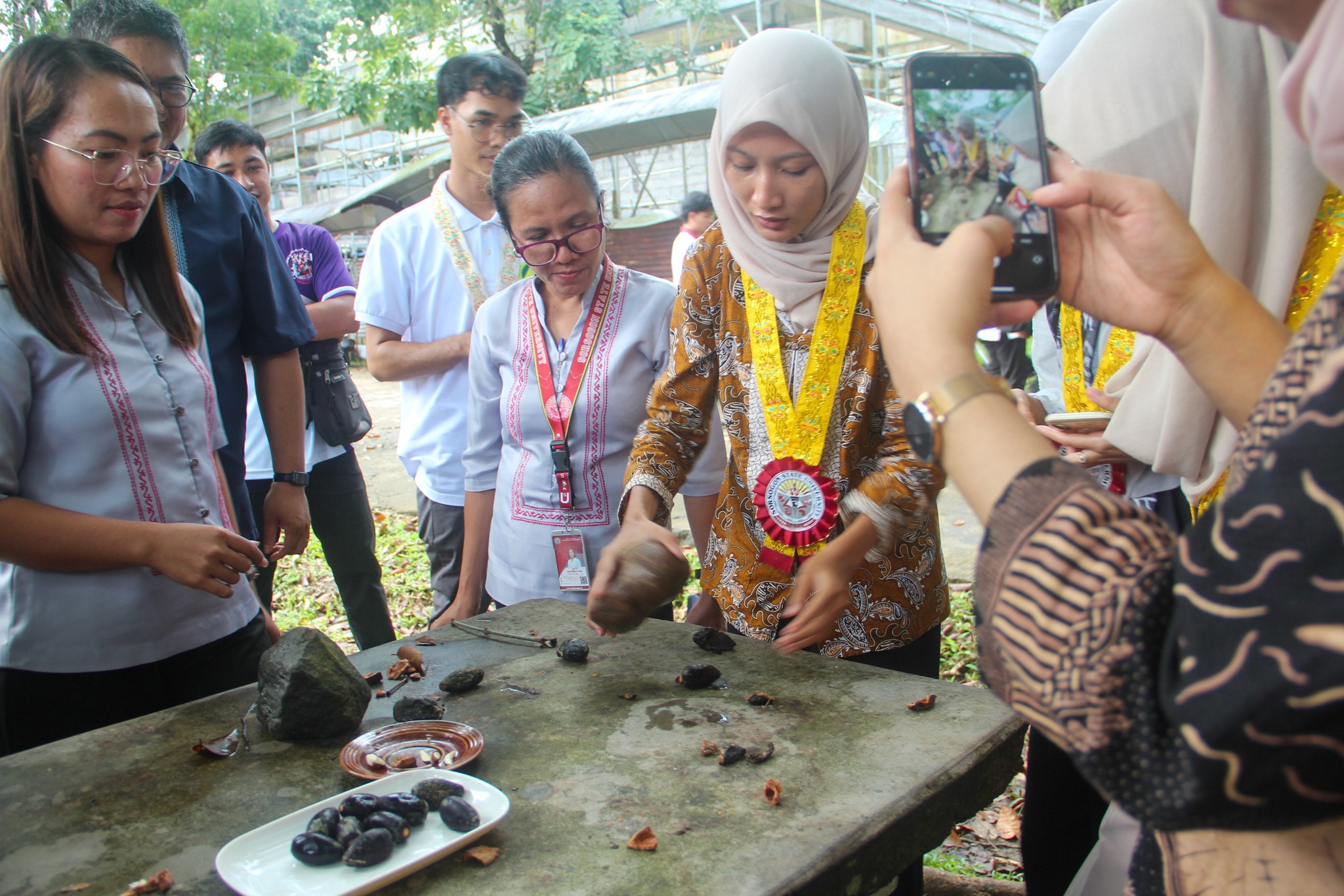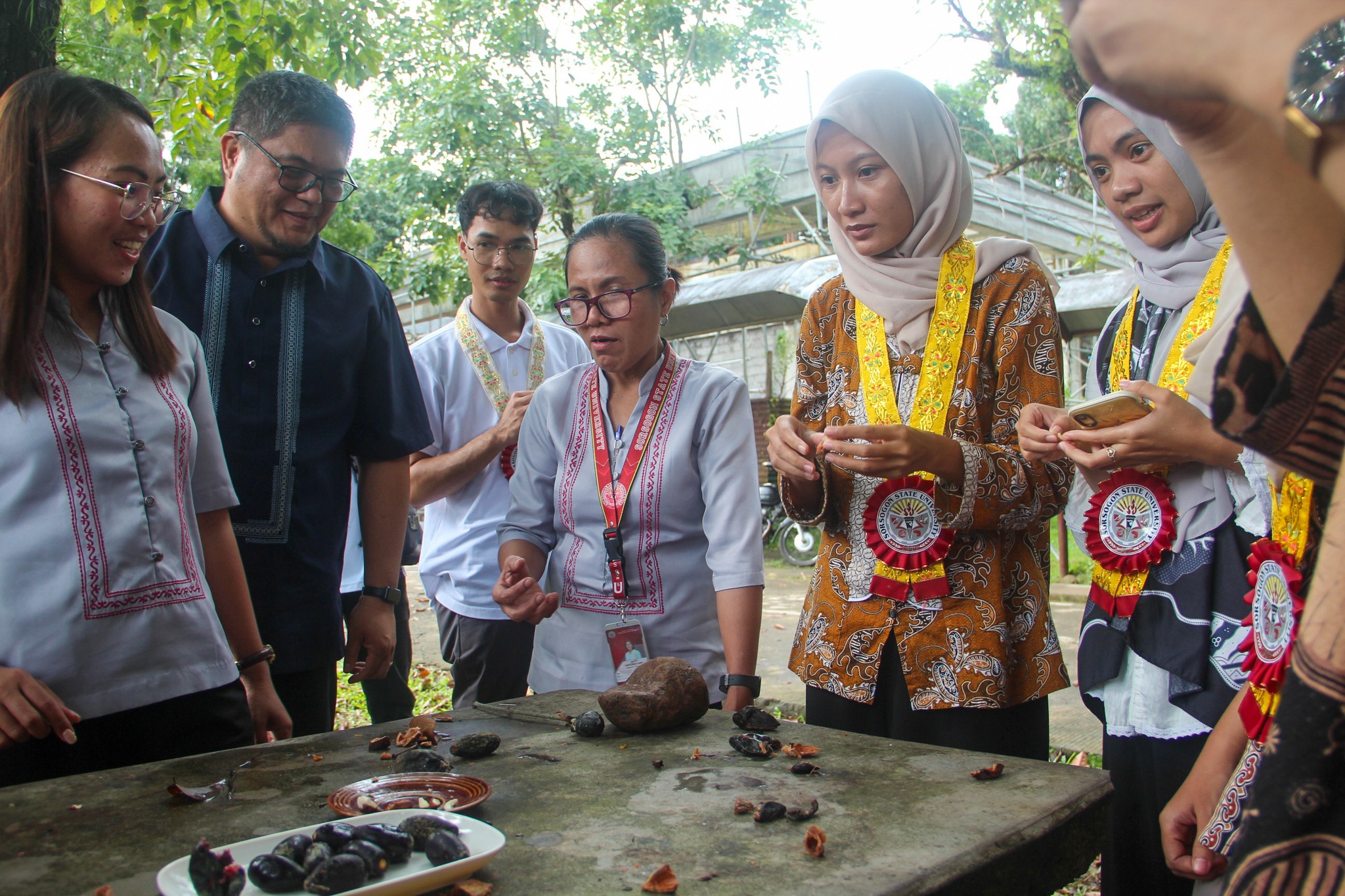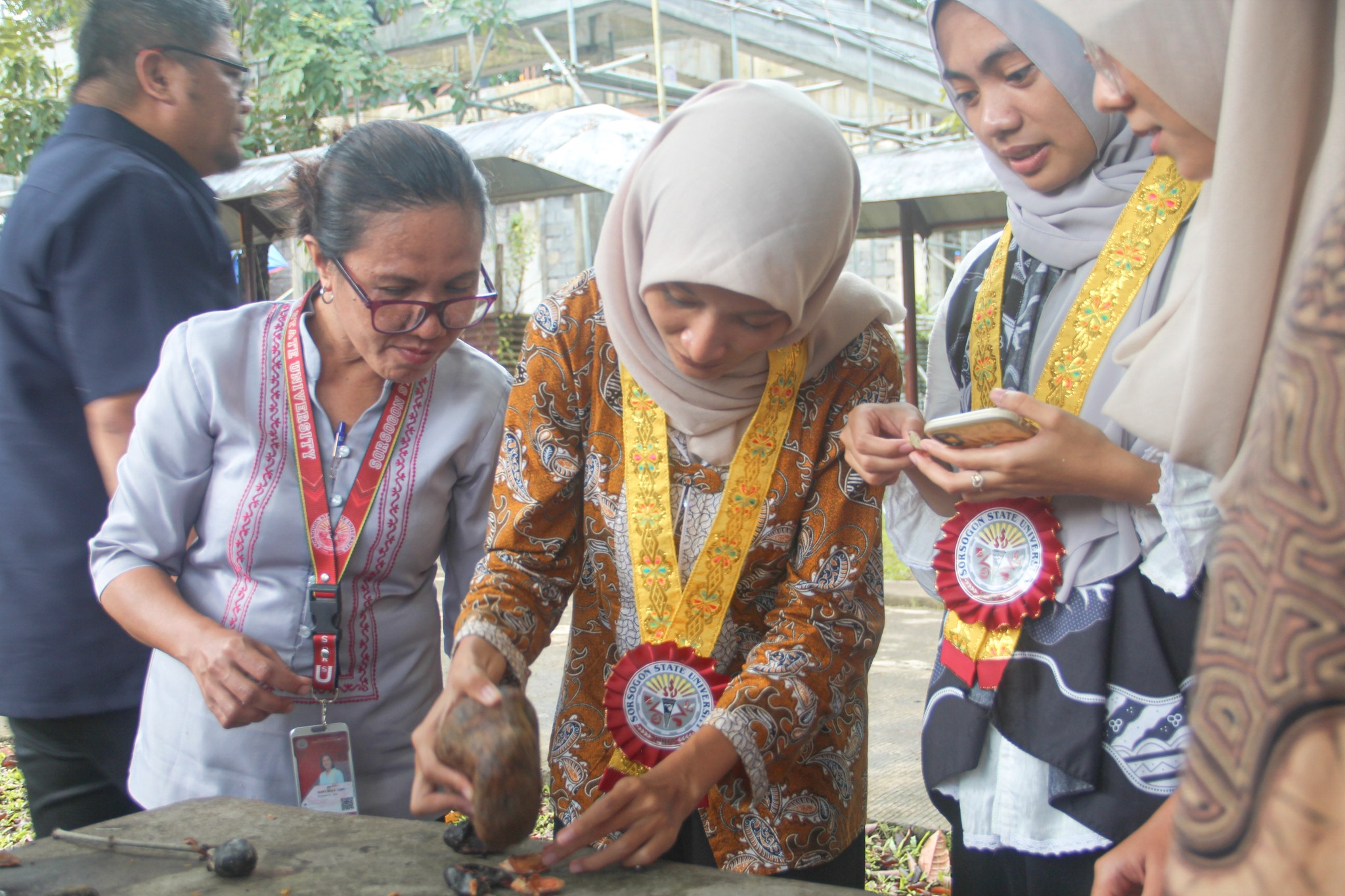 To further highlight the academic and cultural exchange, the delegates participated in classroom and field observations, where Indonesian students engaged in discussions, laboratory sessions, and hands-on activities such as the cleft-grafting of Pili seedlings. This was followed by a campus tour showcasing SorSU’s academic areas, laboratories, and facilities. Demonstrating their shared commitment to environmental sustainability, the delegates also joined a tree-planting activity and the “Tilad ng Pili” (Pili Nut Cracking Activity) initiative, symbolizing growth, unity, and ecological stewardship.