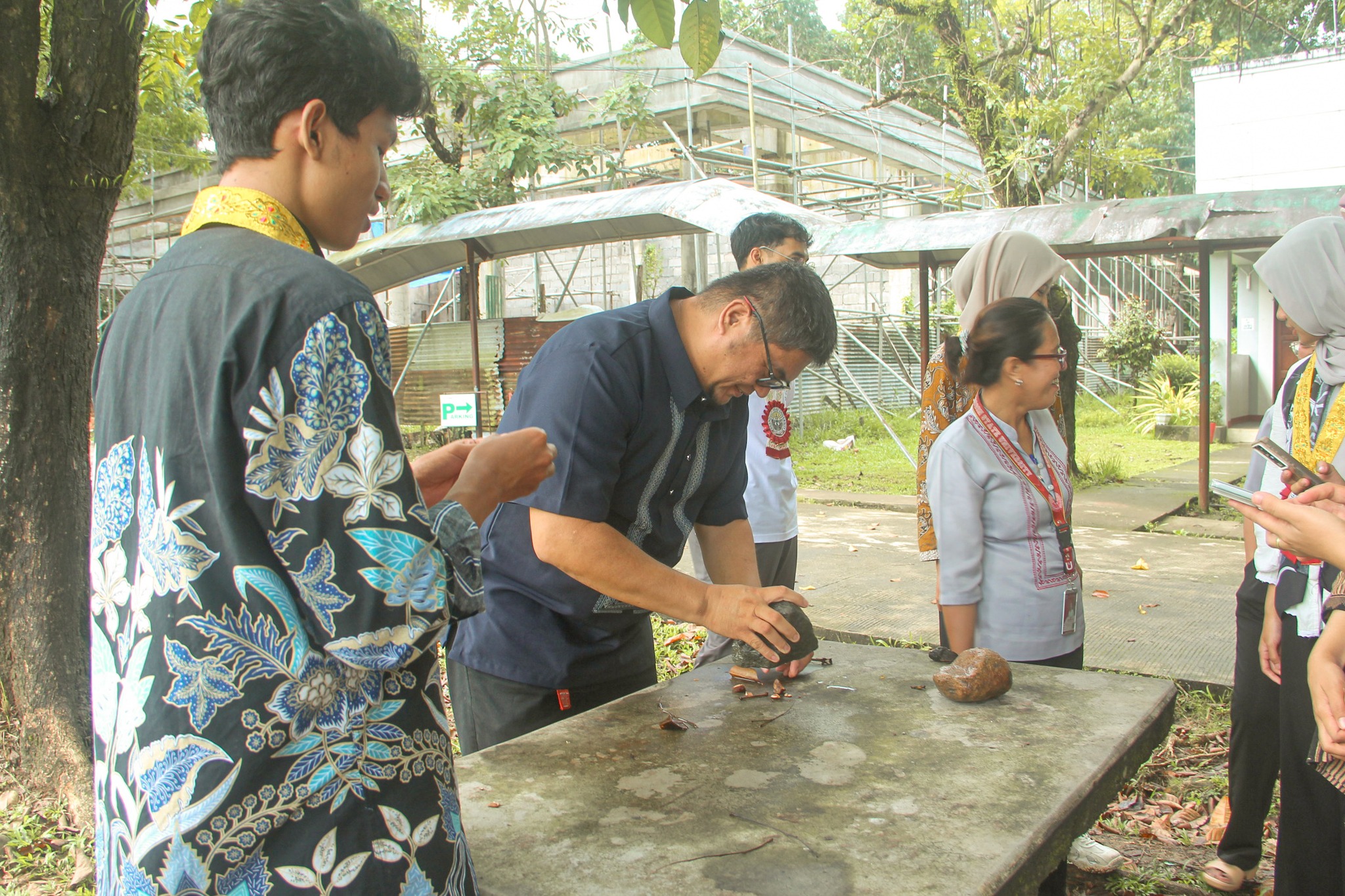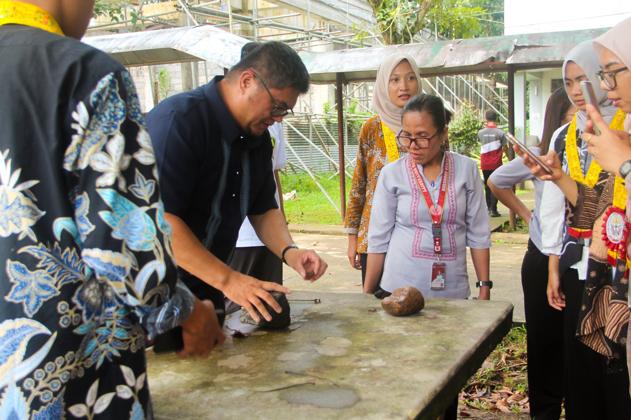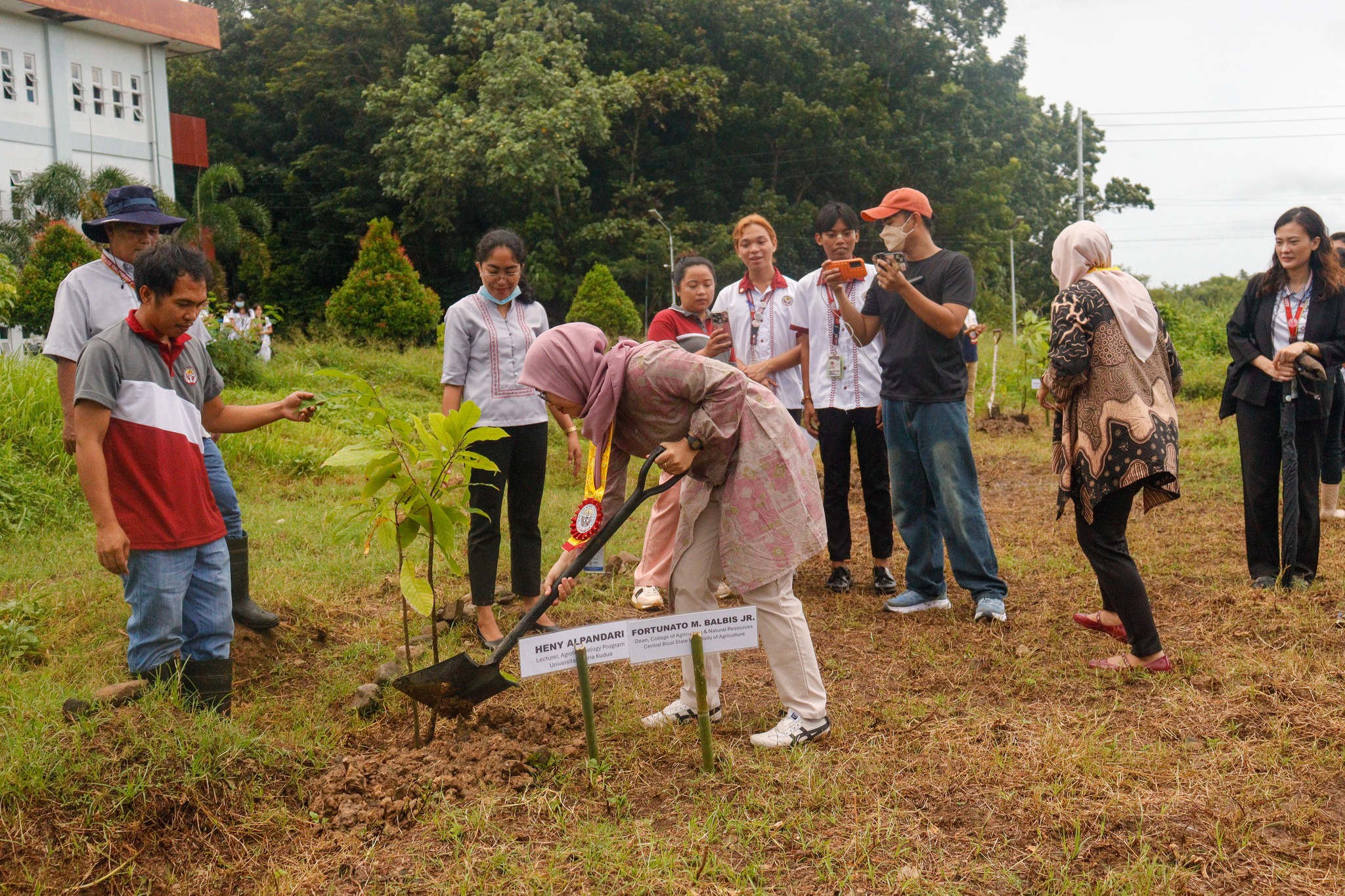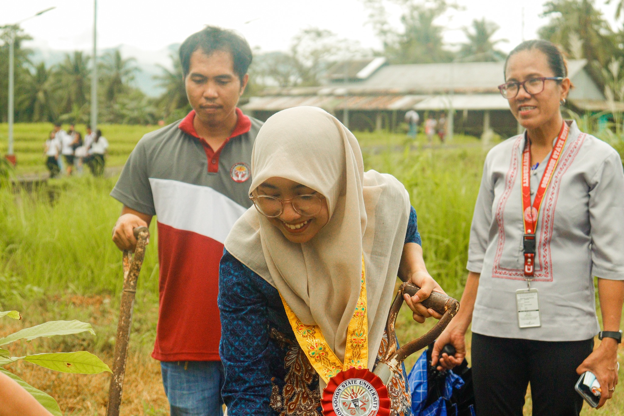 To further highlight the academic and cultural exchange, the delegates participated in classroom and field observations, where Indonesian students engaged in discussions, laboratory sessions, and hands-on activities such as the cleft-grafting of Pili seedlings. This was followed by a campus tour showcasing SorSU’s academic areas, laboratories, and facilities. Demonstrating their shared commitment to environmental sustainability, the delegates also joined a tree-planting activity and the “Tilad ng Pili” (Pili Nut Cracking Activity) initiative, symbolizing growth, unity, and ecological stewardship.