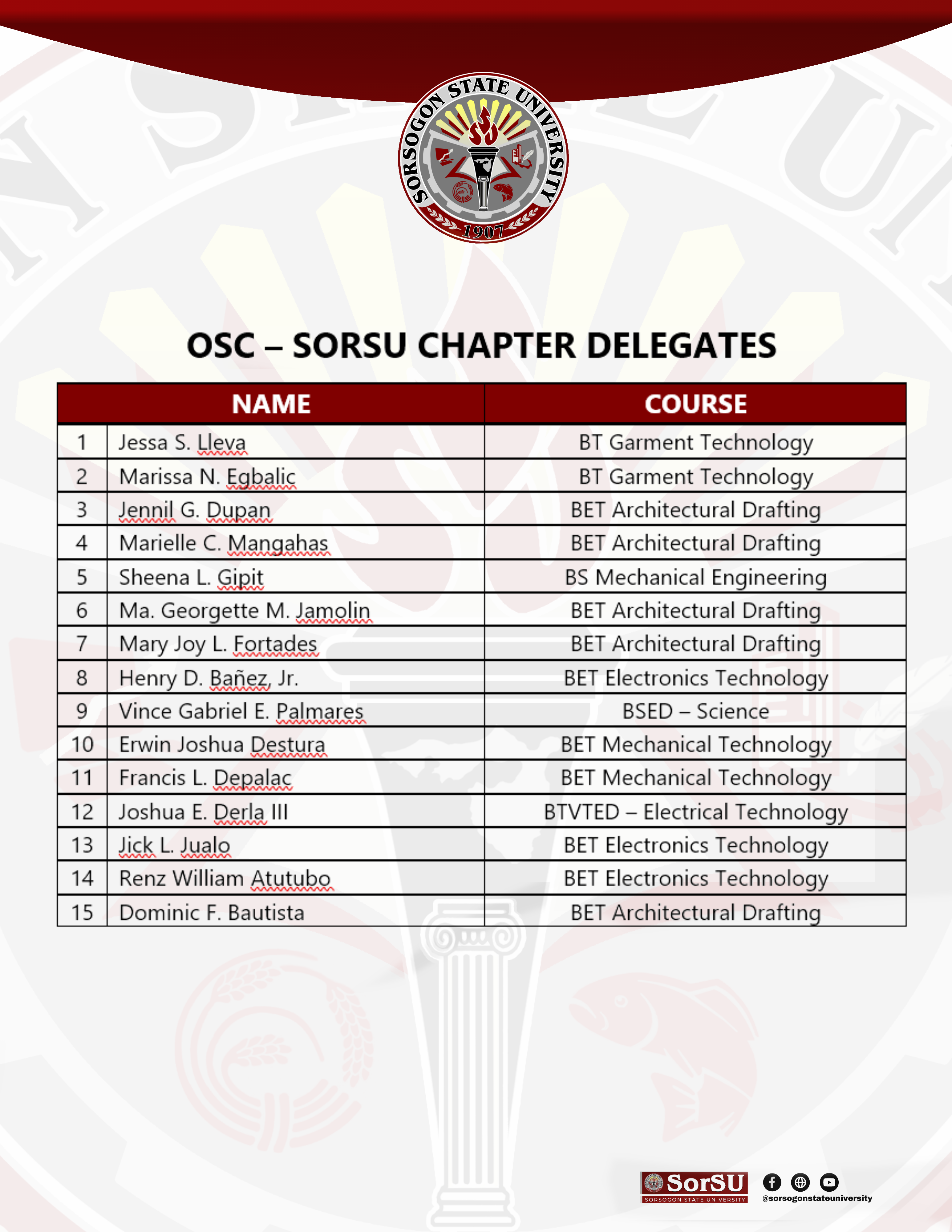 The SorSU delegates who won the tournament are: