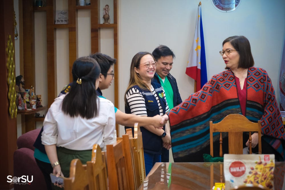 Representatives from the Malinao Treatment and Rehabilitation Center, under the Department of Health, paid a courtesy visit to SUC President III, Dr. Geraldine F. De Jesus, on February 13, 2026, at the Office of the University President. The visit was to formally request approval to hold the “Defend Your Future, Achieve Greatness, Drug Symposium” at Sorsogon State University, Sorsogon City Campus.