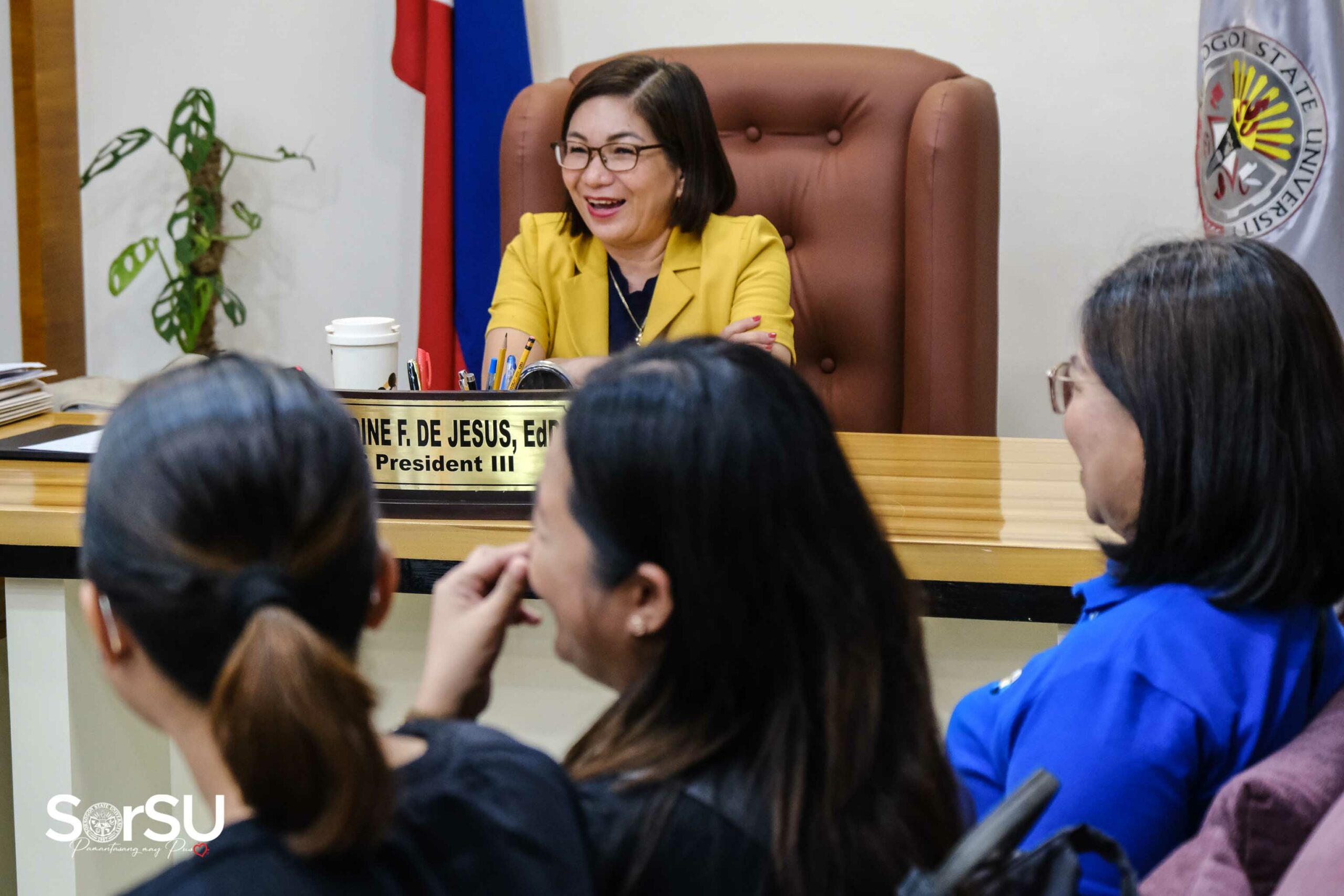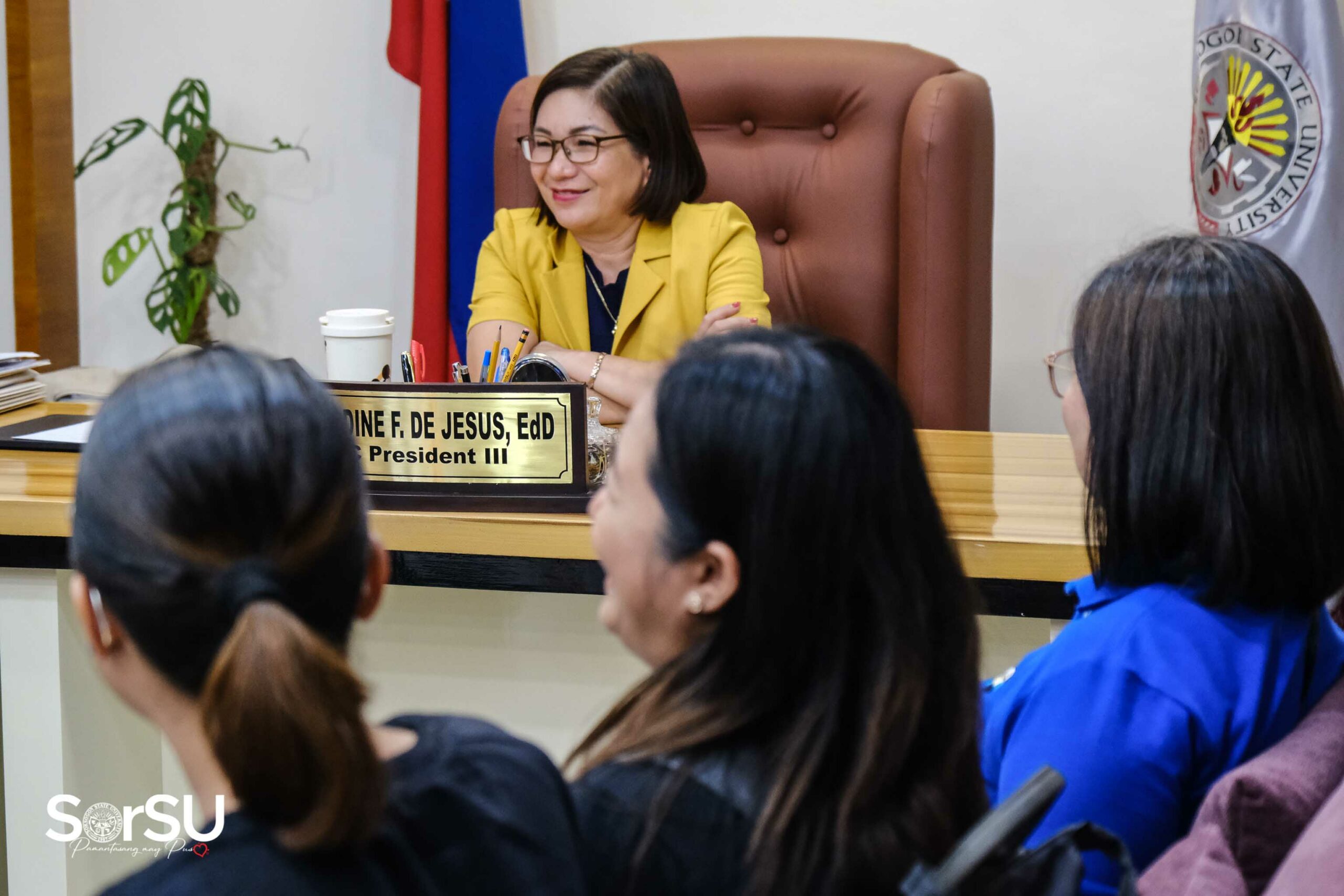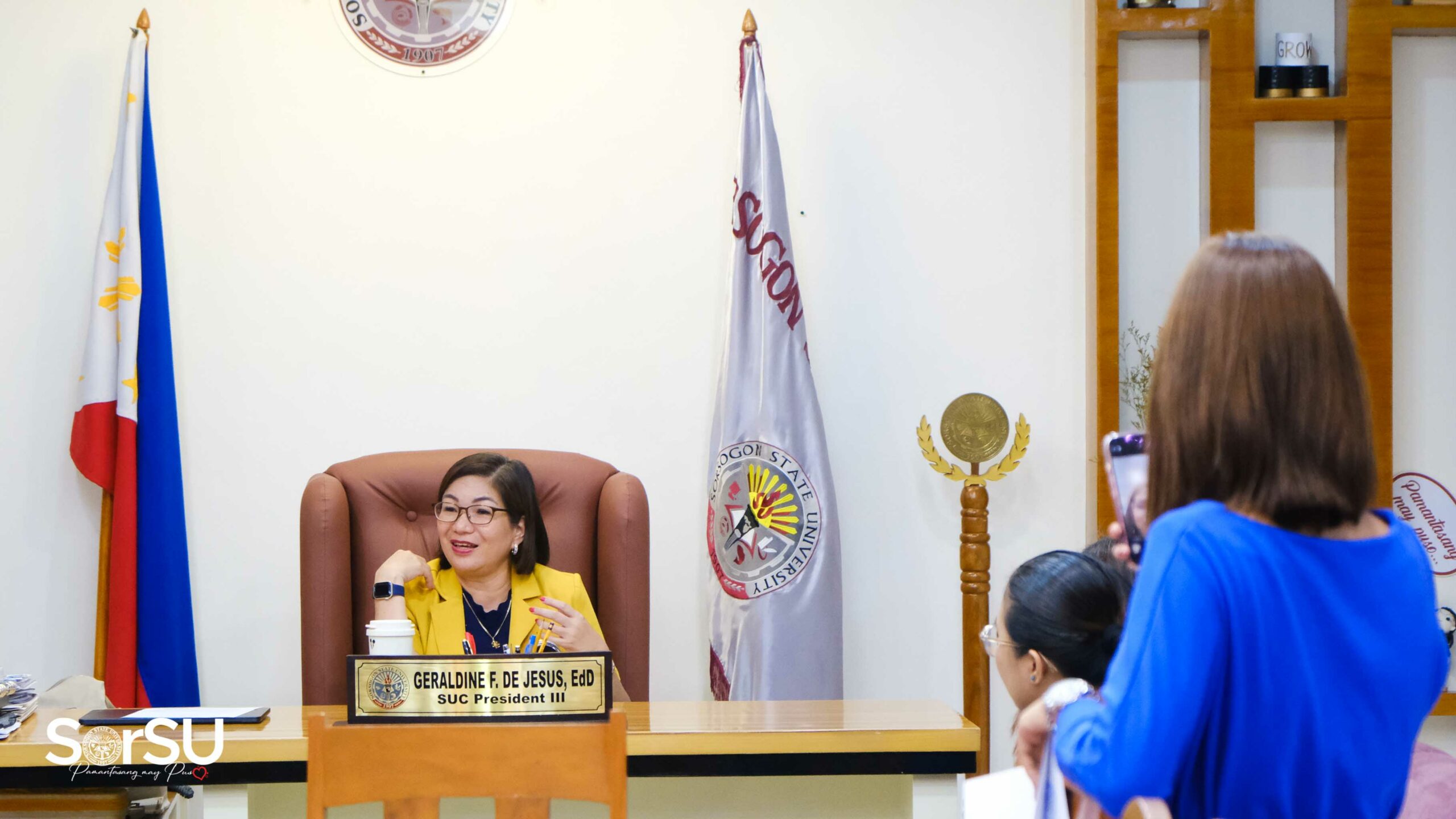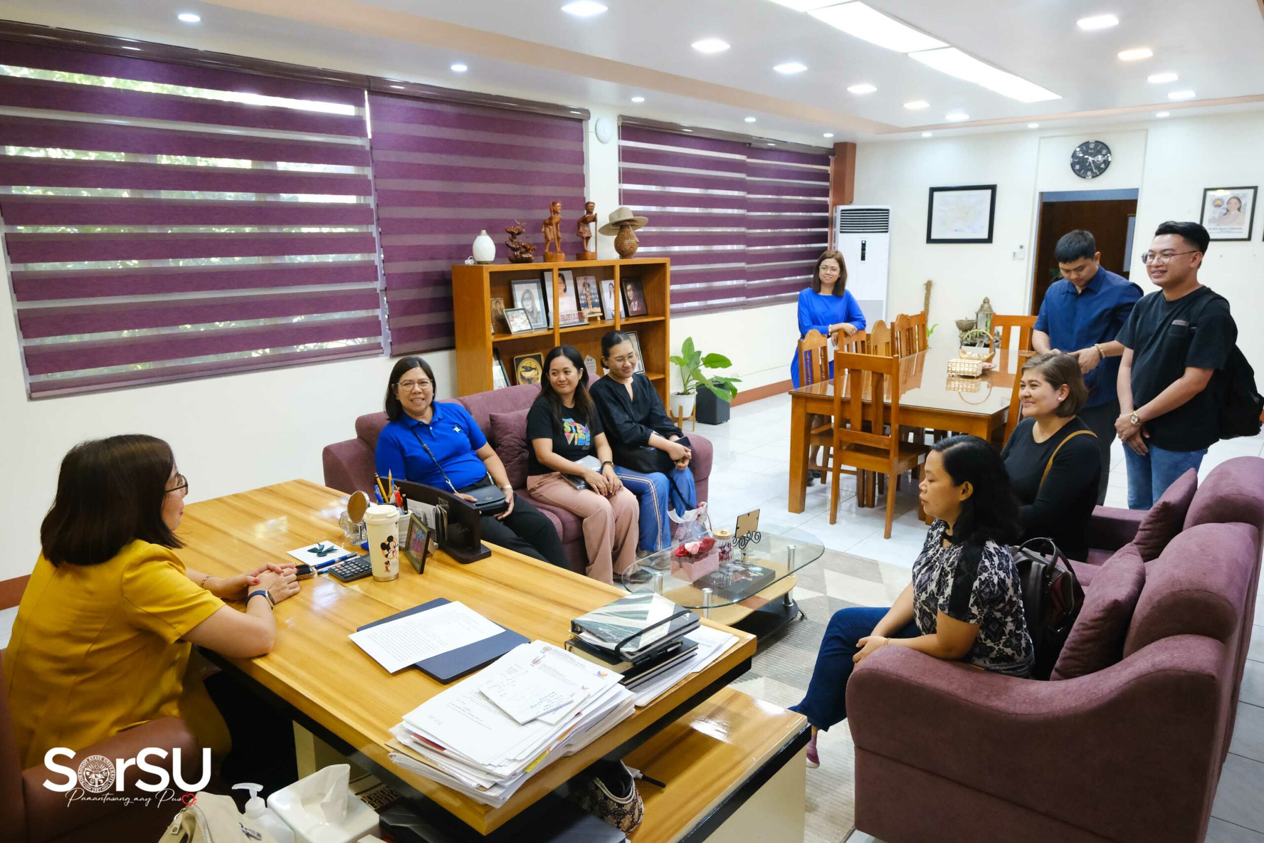 On June 3, 2025, the Department of Science and Technology-Science Education Institute (DOST-SEI) delegates, led by Ms. Cynthia Gayya (Chief, Science Education Institute), paid a courtesy visit to SUC President III, Dr. Geraldine F. De Jesus, at the office of the University President, Sorsogon State University.
