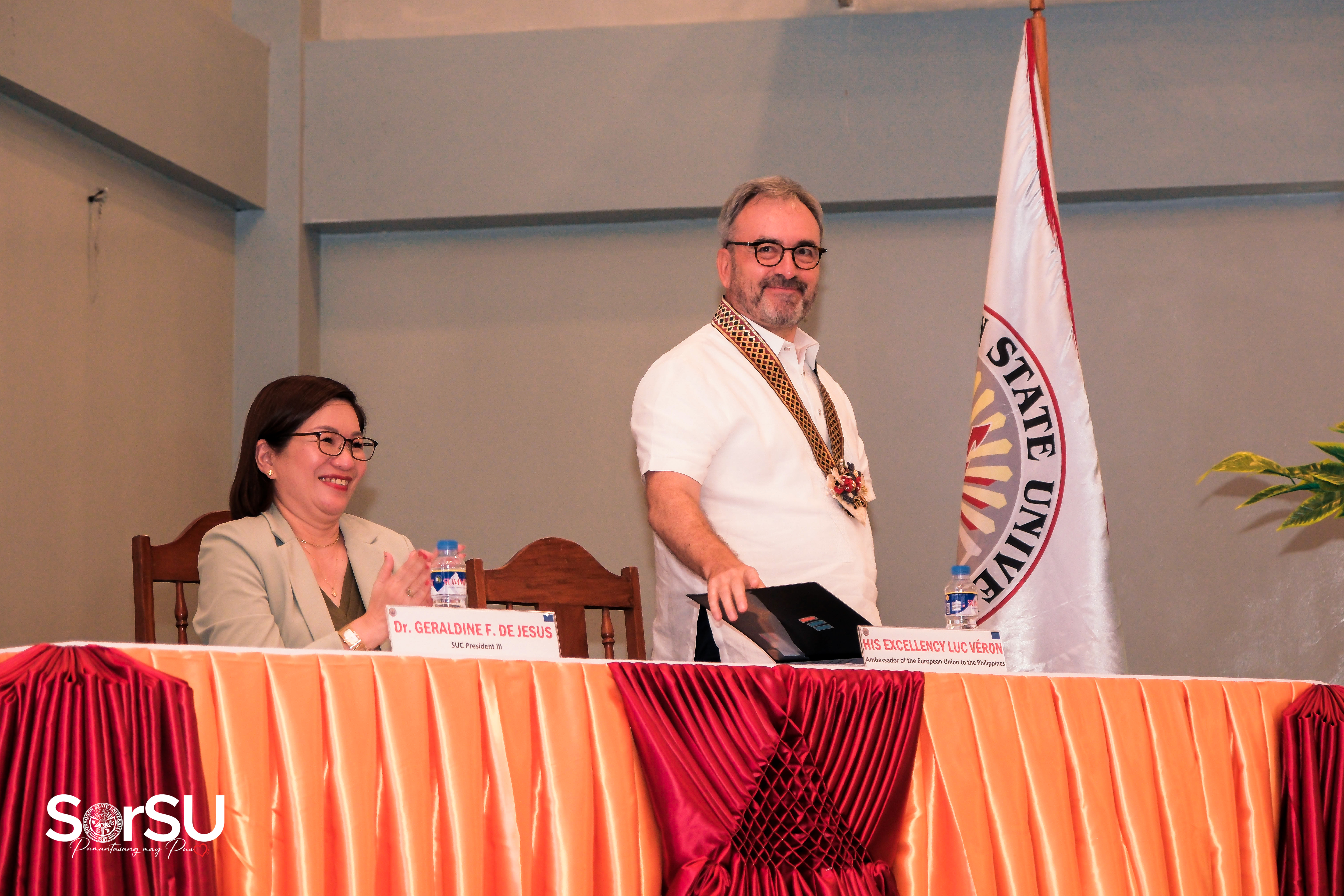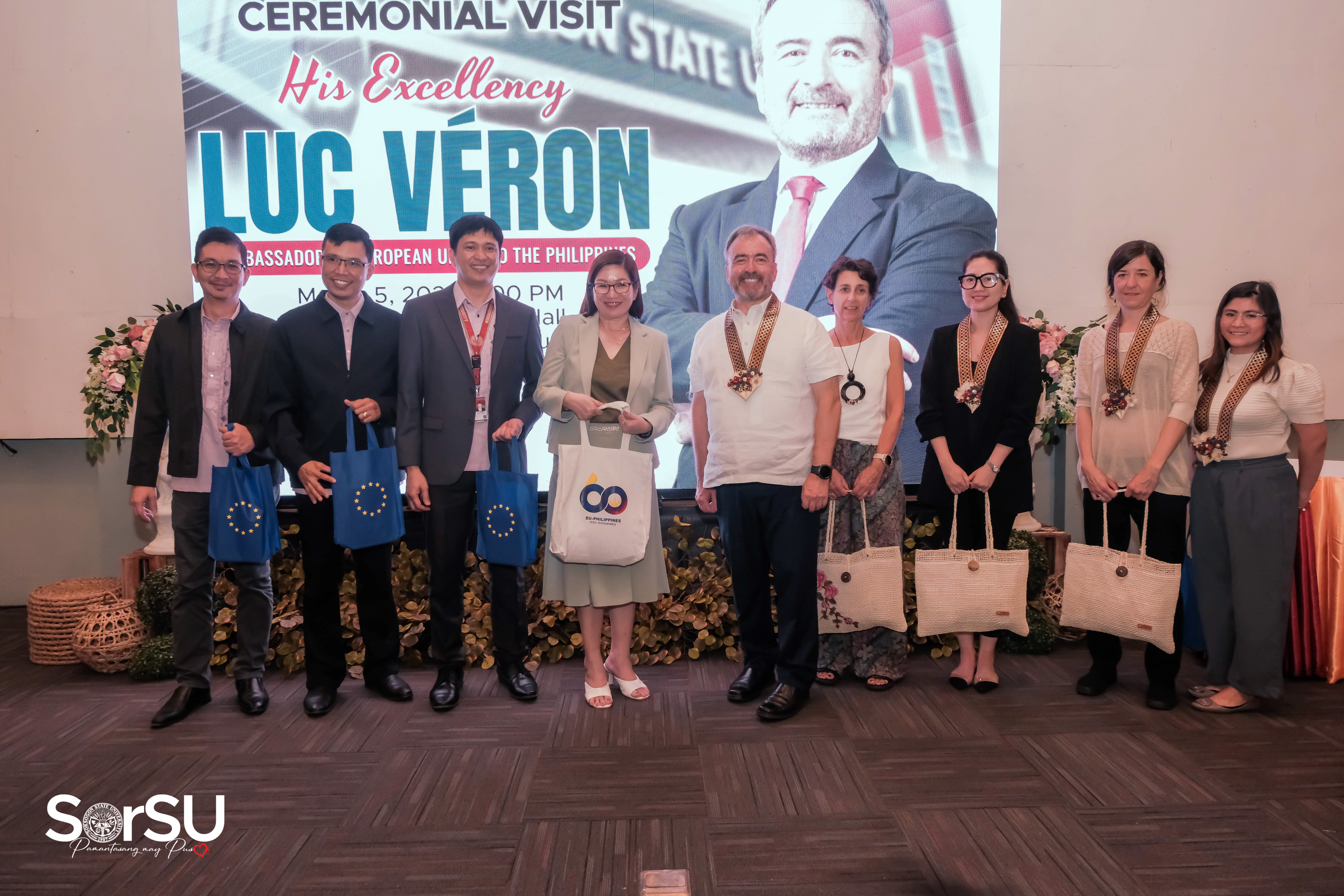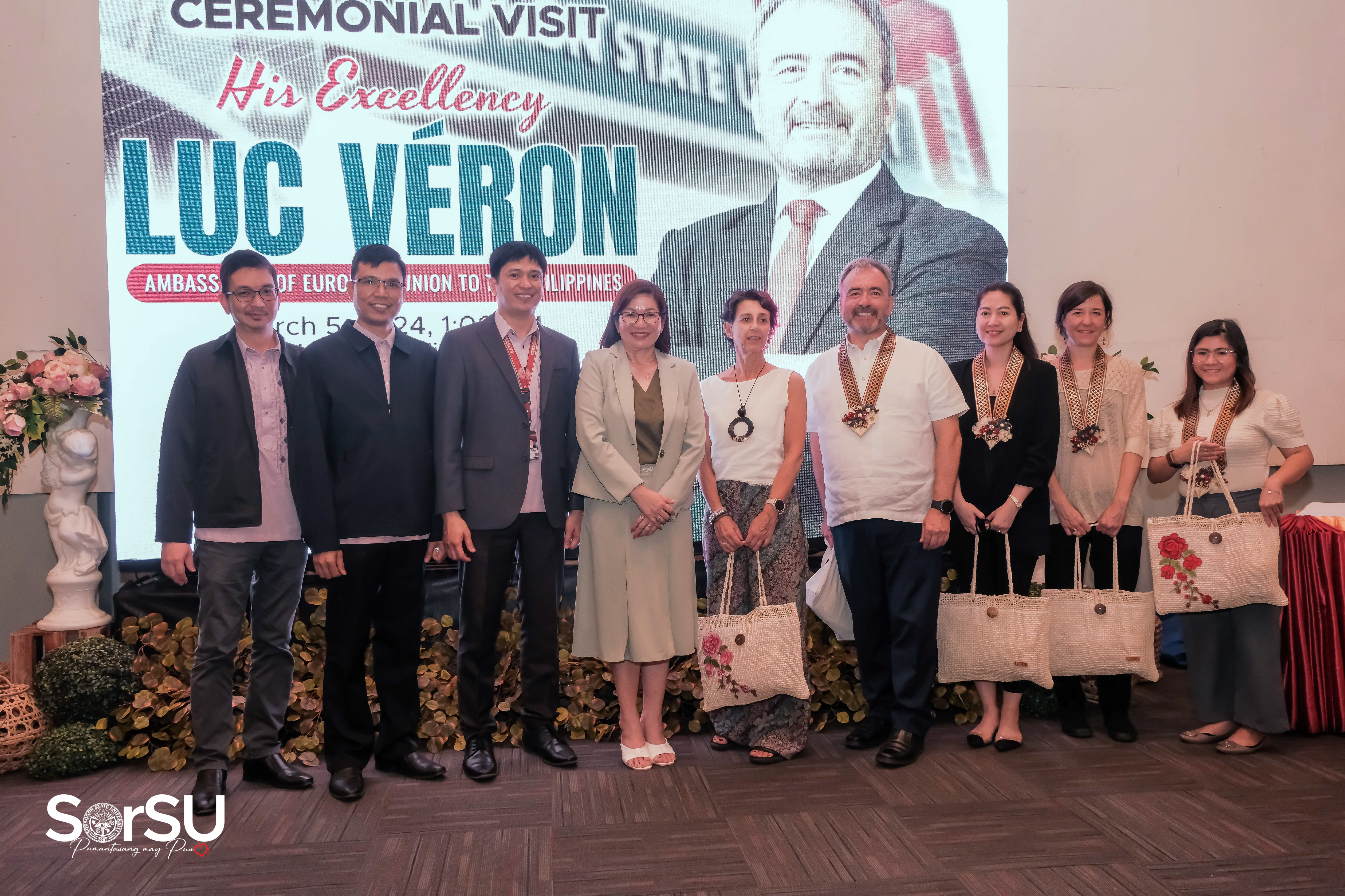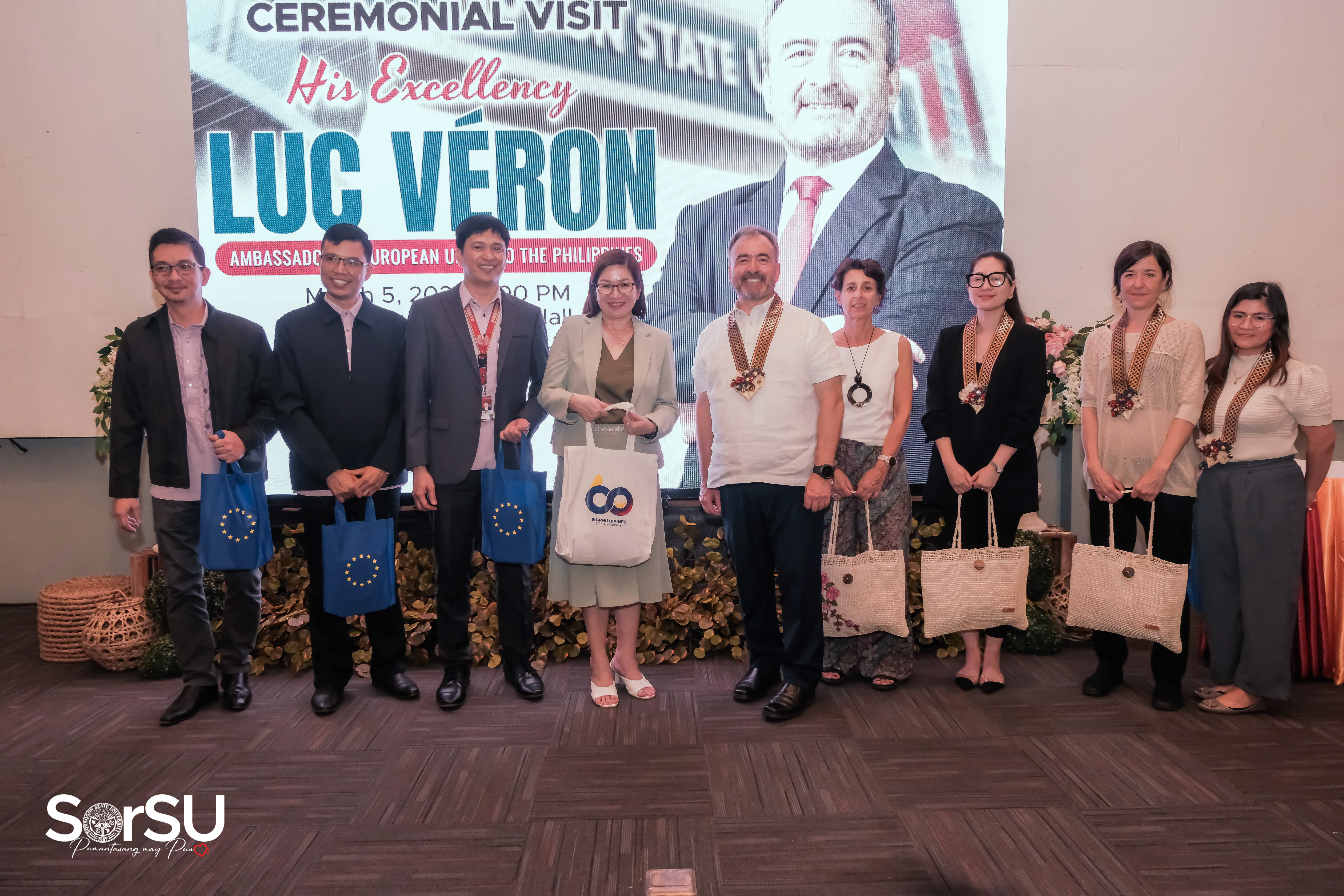 In another astounding milestone of Sorsogon State University as the premier institution of the province, the Ambassador of the European Union (EU) to the Philippines, His Excellency Luc Véron, alongside the esteemed EU delegation paid a historic visit to SorSU, where the EU Ambassador and his team were graciously received by SUC President III, Dr. Geraldine F. De Jesus, and SorSU top executives & officials on March 05, 2024.