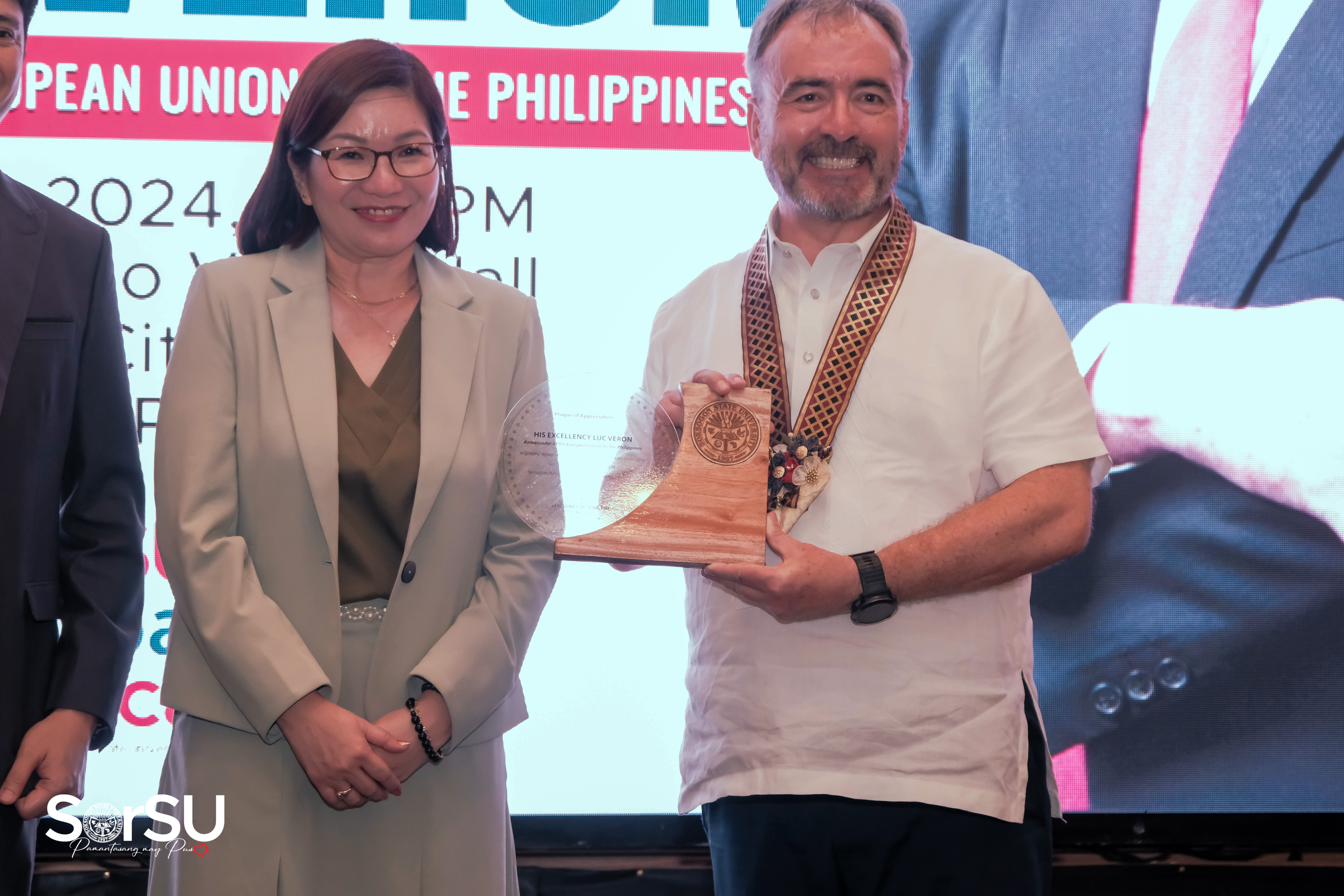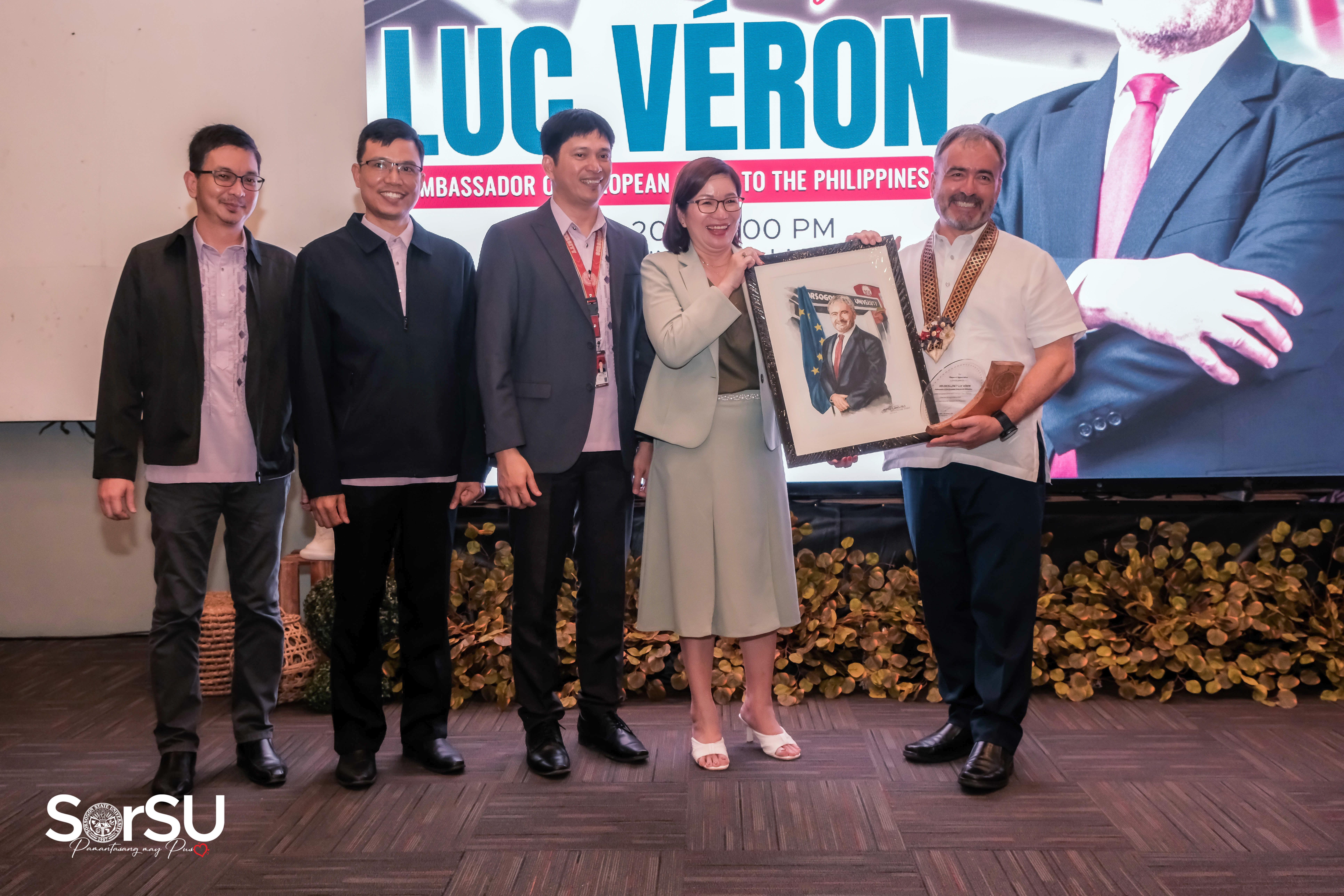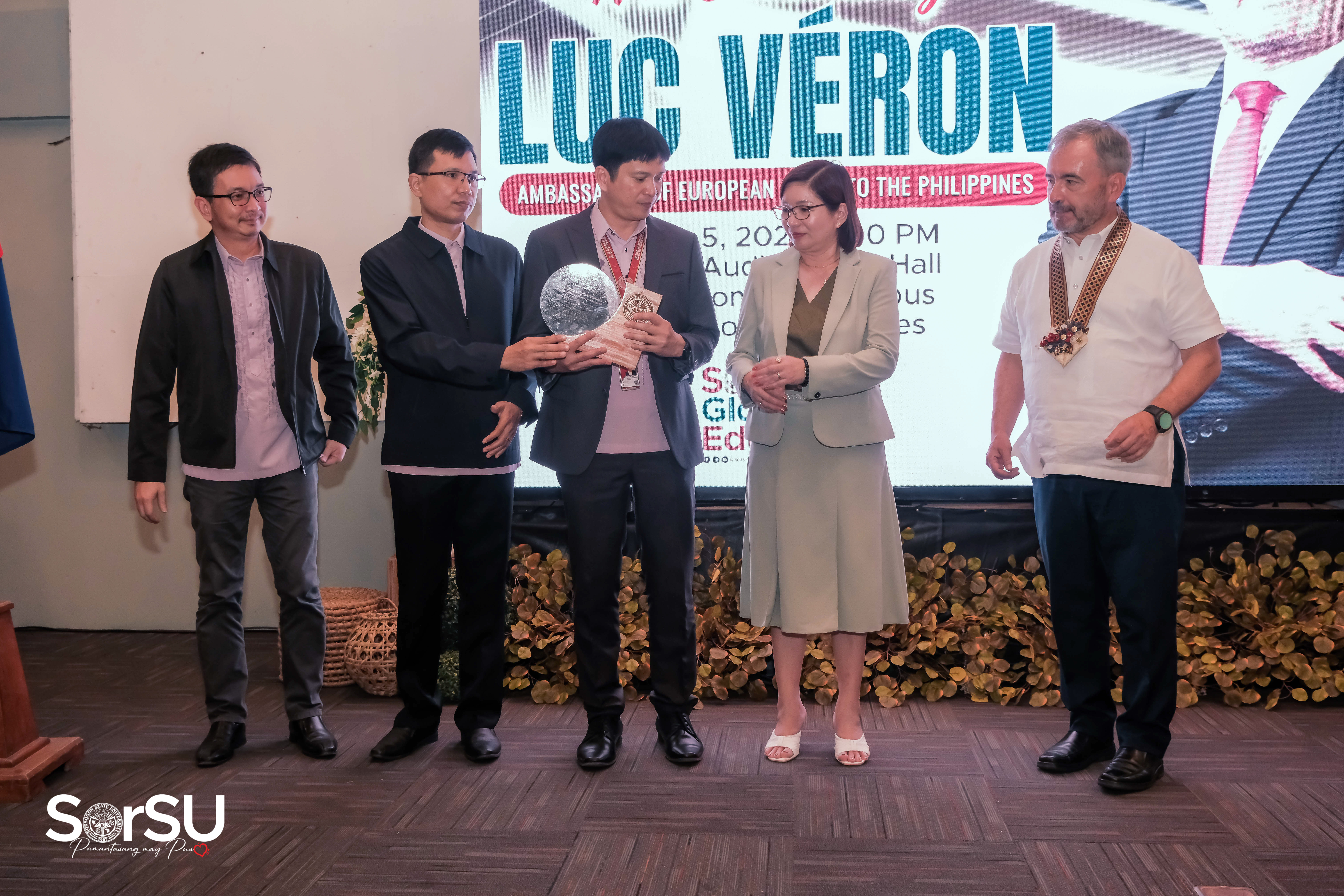 Afterward, the Awarding of Plaque of Appreciation to His Excellency Luc Véron transpired, which was awarded by SorSU President De Jesus as well as SorSU Vice Presidents: Mr. Gerald E. Fulay, JD (Vice President for Administration and Finance), Mr. Jhonner D. Ricafort (Vice President for Academic Affairs), and Dr. Ryan V. Dio (Vice President for Research, Extension and Training).