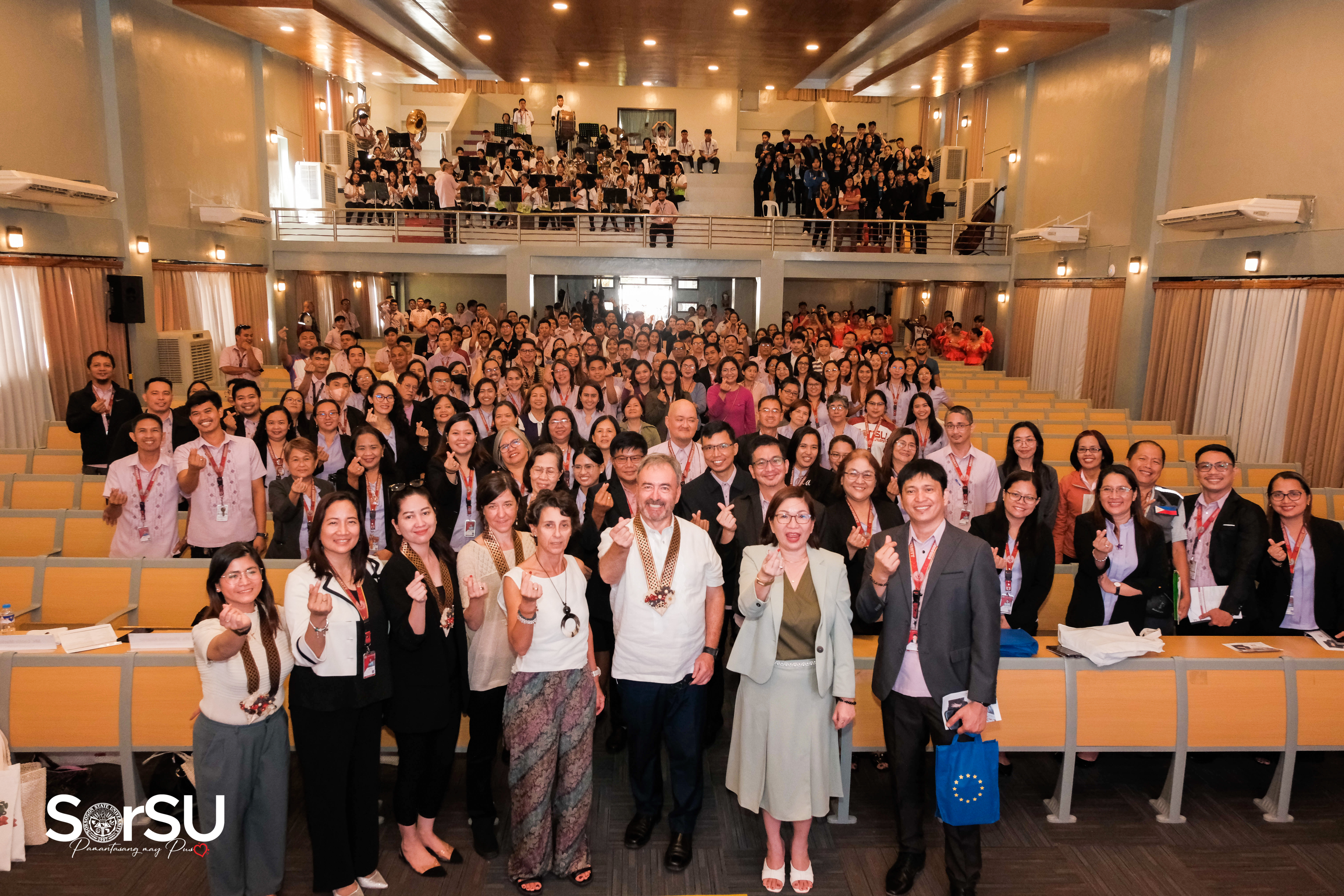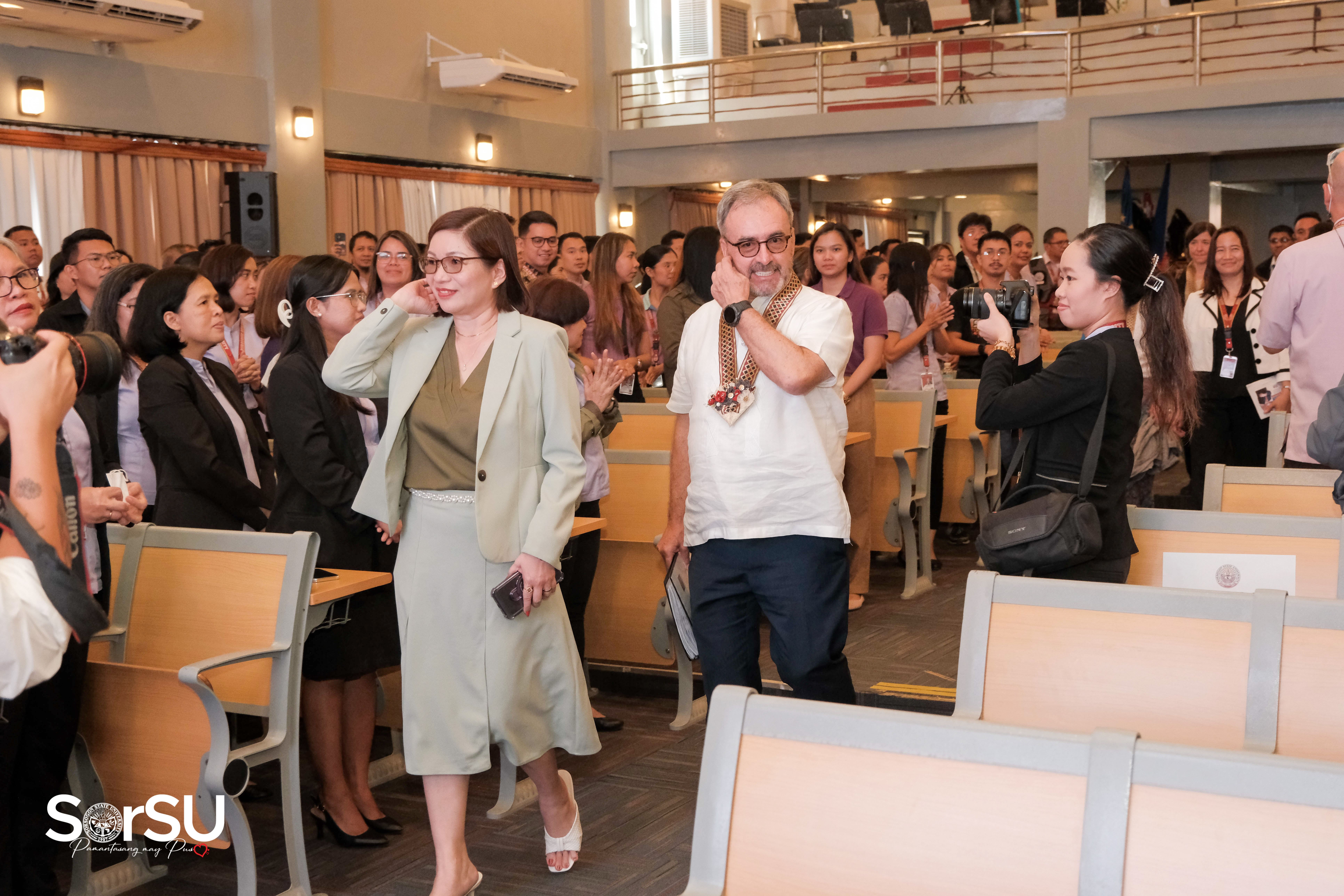 Eagerly lined-up SorSUeños likewise warmly welcomed the EU Ambassador and his delegation as he was ushered by the SorSU officials to the SorSU teaching and non-teaching personnel that await him at the SorSU Audio-Visual Hall, Sorsogon City Campus.