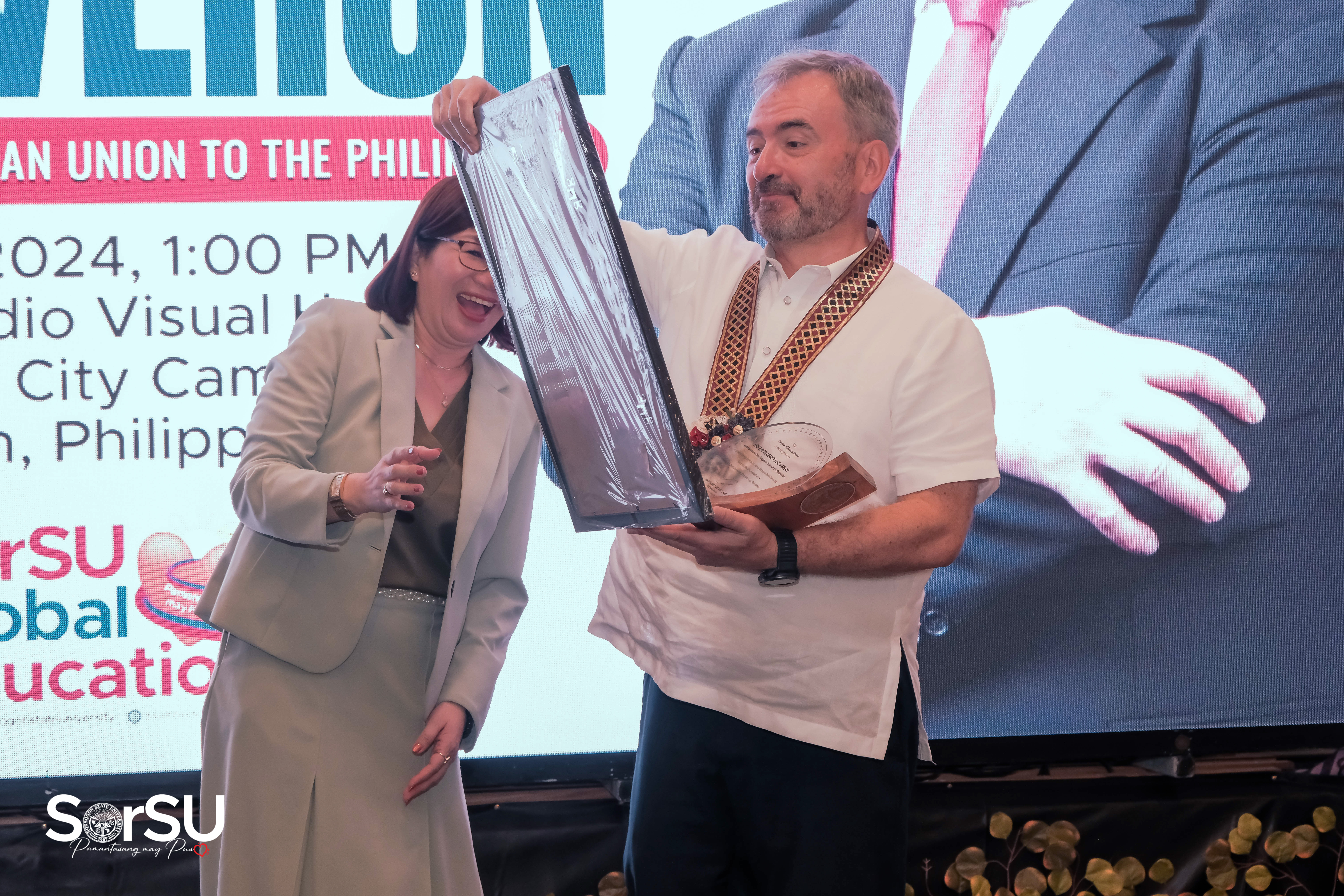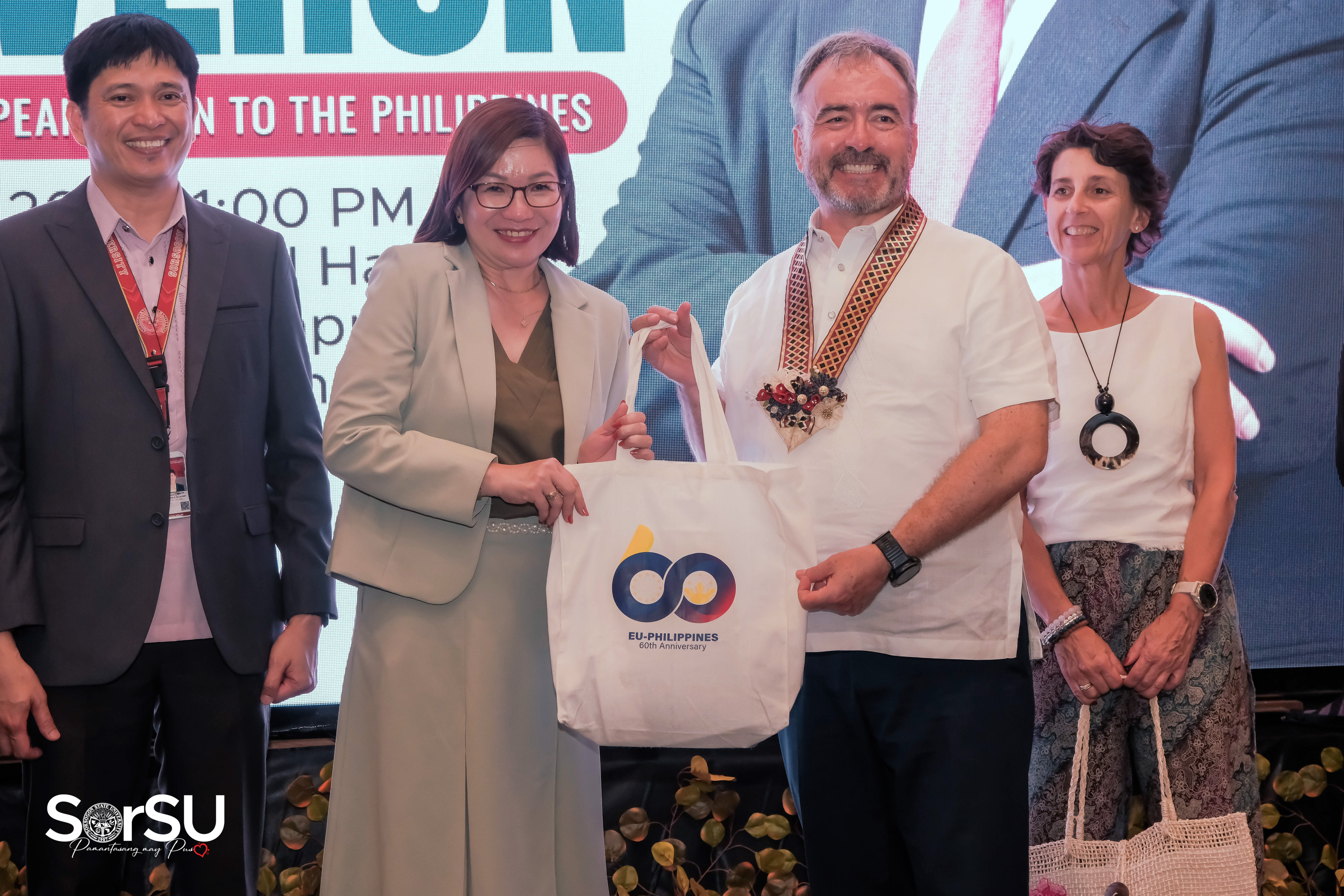 Similarly, SUC President III, Dr. Geraldine F. De Jesus, during her message, conveyed her great pride and delight in welcoming His Excellency and the entire EU delegation to the 𝘗𝘢𝘮𝘢𝘯𝘵𝘢𝘴𝘢𝘯𝘨 𝘔𝘢𝘺 𝘗𝘶𝘴𝘰, emphasizing that the SorSU community never expected the visit by guests with such distinguished credentials as the institution is far from the capital city of Manila.