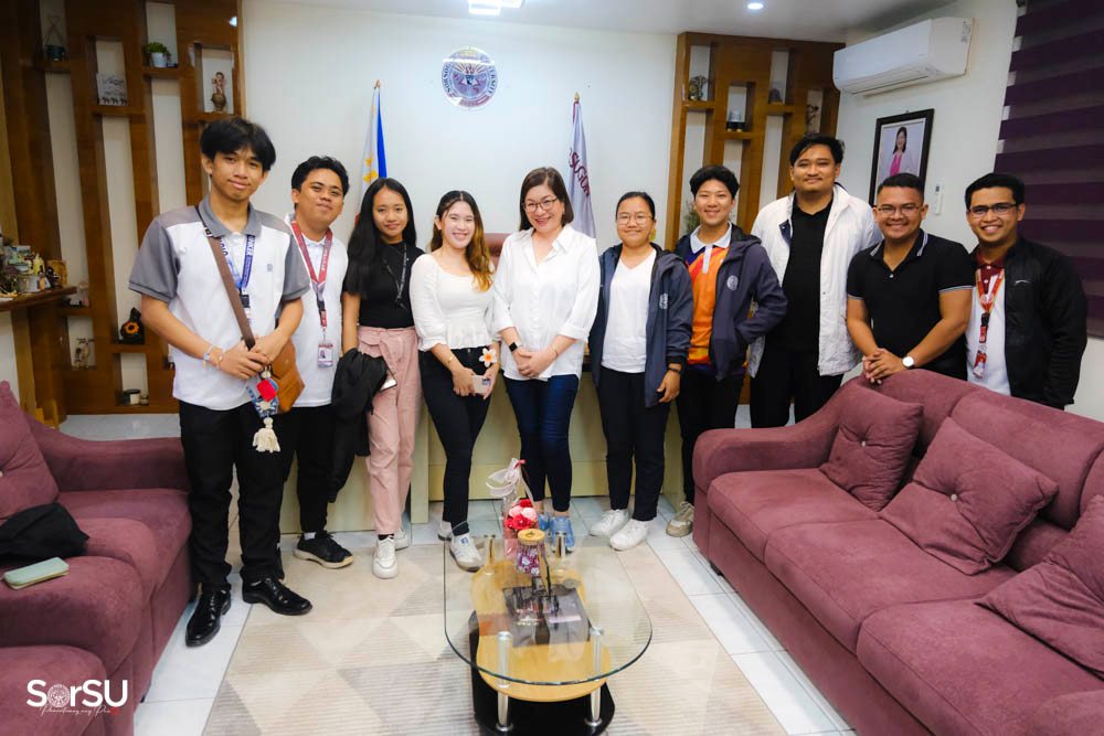 Present during the courtesy visit were Mr. Erwin Formento, Mr. Mel-jhun Evangelista, Ms. Rhyz April Gueta, Ms. Lougen Lozada, Ms. Mariel Angela Rodrigo, Mr. Kharl Andrei Hizon, Mr. Josh Bayoca, Mr. Gabriel Joash de Gala, along with Mr. Jopet Vincent B. Medalla (Faculty-in-charge/KGU-SorSU Exchange Faculty).