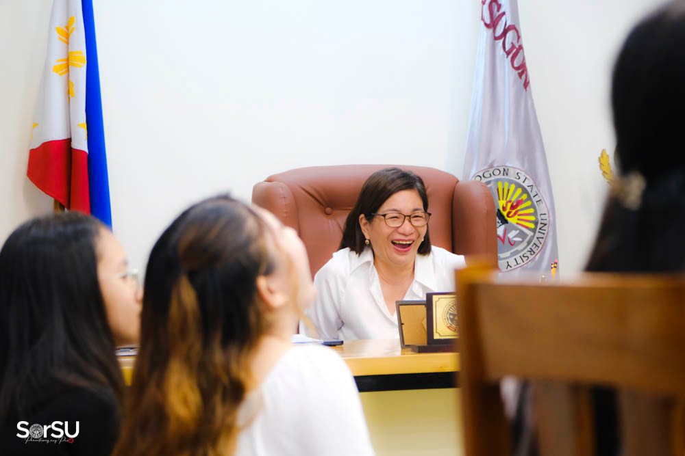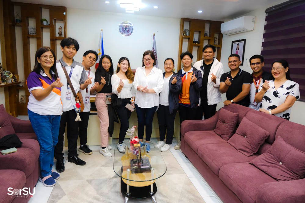 Sorsogon State University-Bulan Campus students who recently completed their academic and cultural exchange program at Kien Giang University in Vietnam paid a courtesy visit to SUC President III, Dr. Geraldine F. De Jesus, on May 6, 2025, at the Office of the University President.
