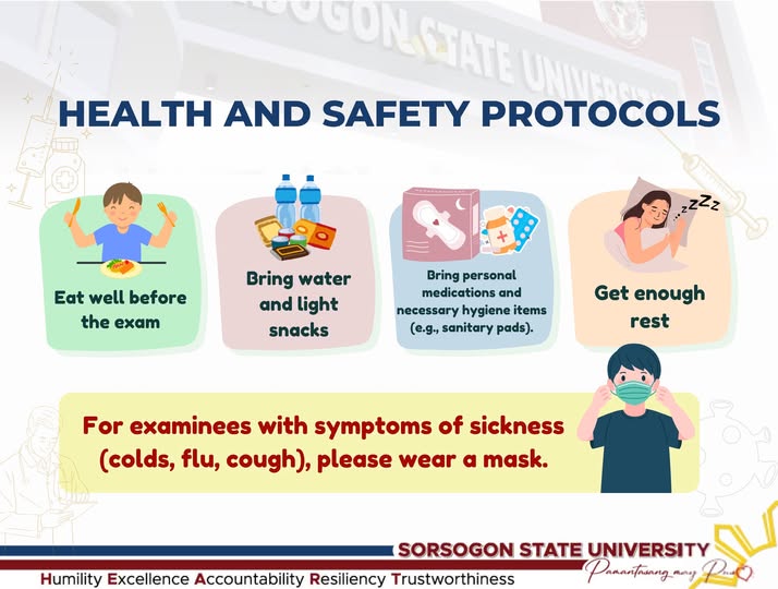 Fuel up, hydrate, rest well, and don’t forget your essentials. If you are experiencing any symptoms of illness, wearing a mask is strongly encouraged as a measure to help protect the health and well-being of everyone. Let’s look out for ourselves and each other—good luck, examinees! ✨💪