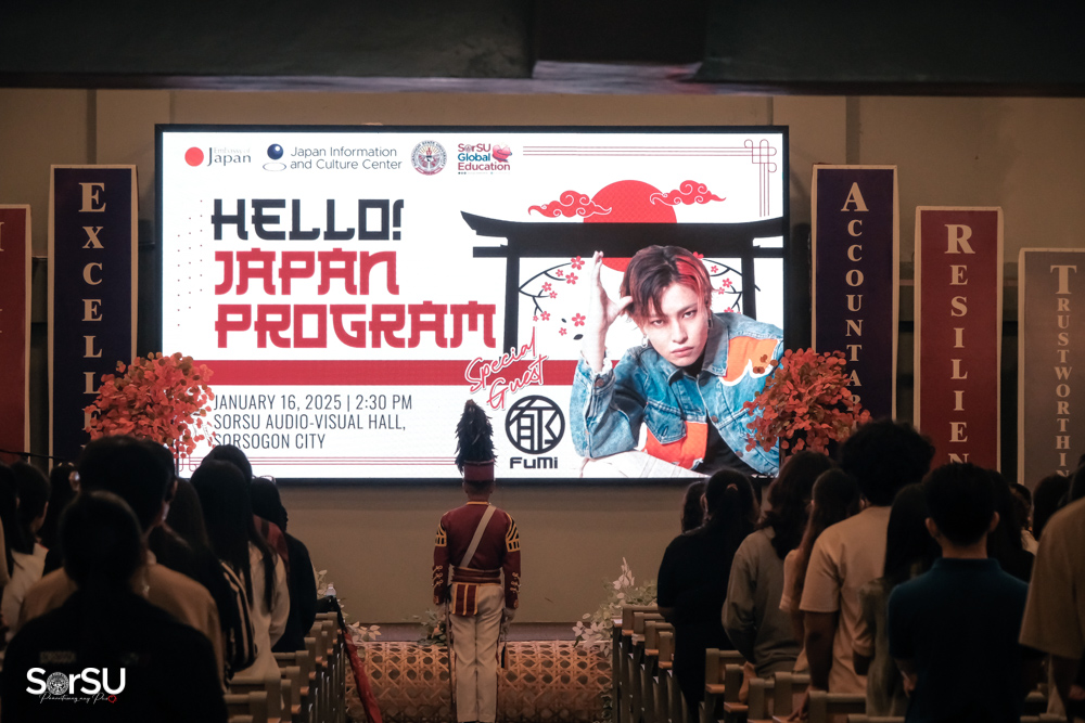 On January 16, 2025, the Japan Information and Culture Center (JICC) of the Embassy of Japan, in partnership with the SorSU-International Relations Office (IRO), SorSU-Nihongo Language Training Center (NLTC), and SDS-Sports and Culture Services Unit, hosted the Hello! Japan program at the SorSU Audio-Visual Hall, Sorsogon City. The event was designed to deepen understanding of Japanese culture and offer insights into academic exchange opportunities.