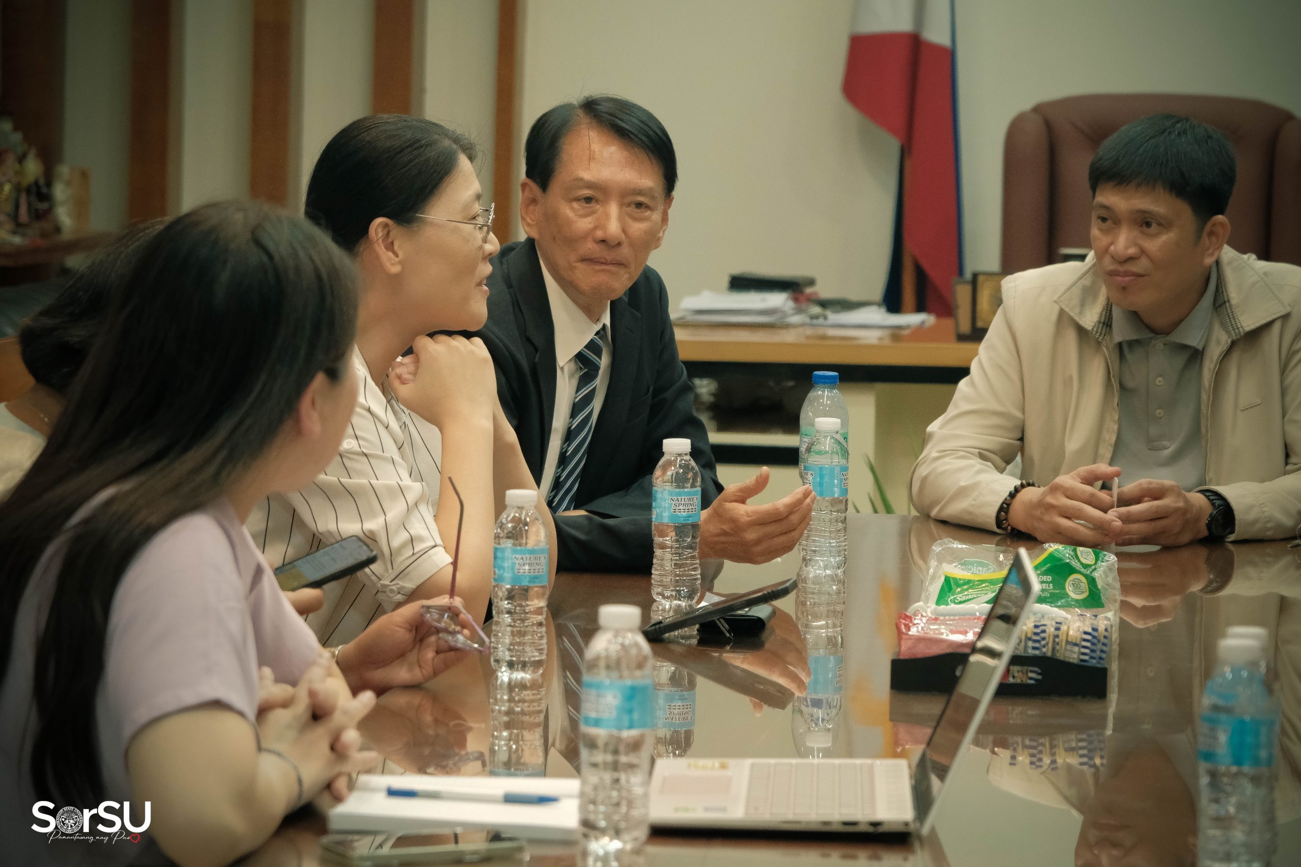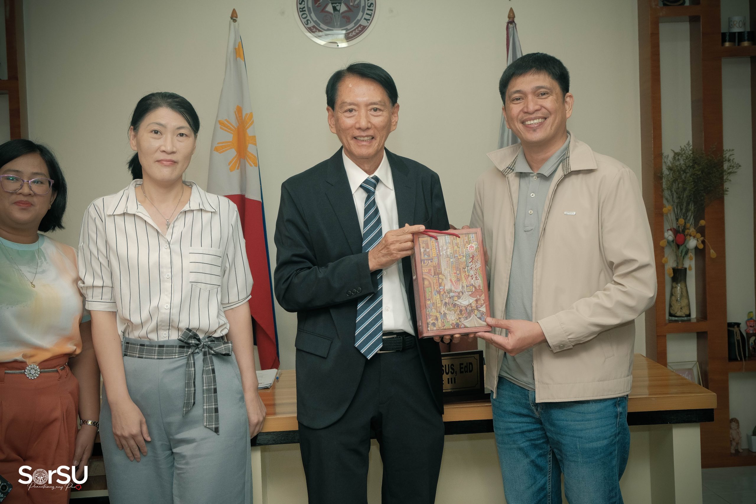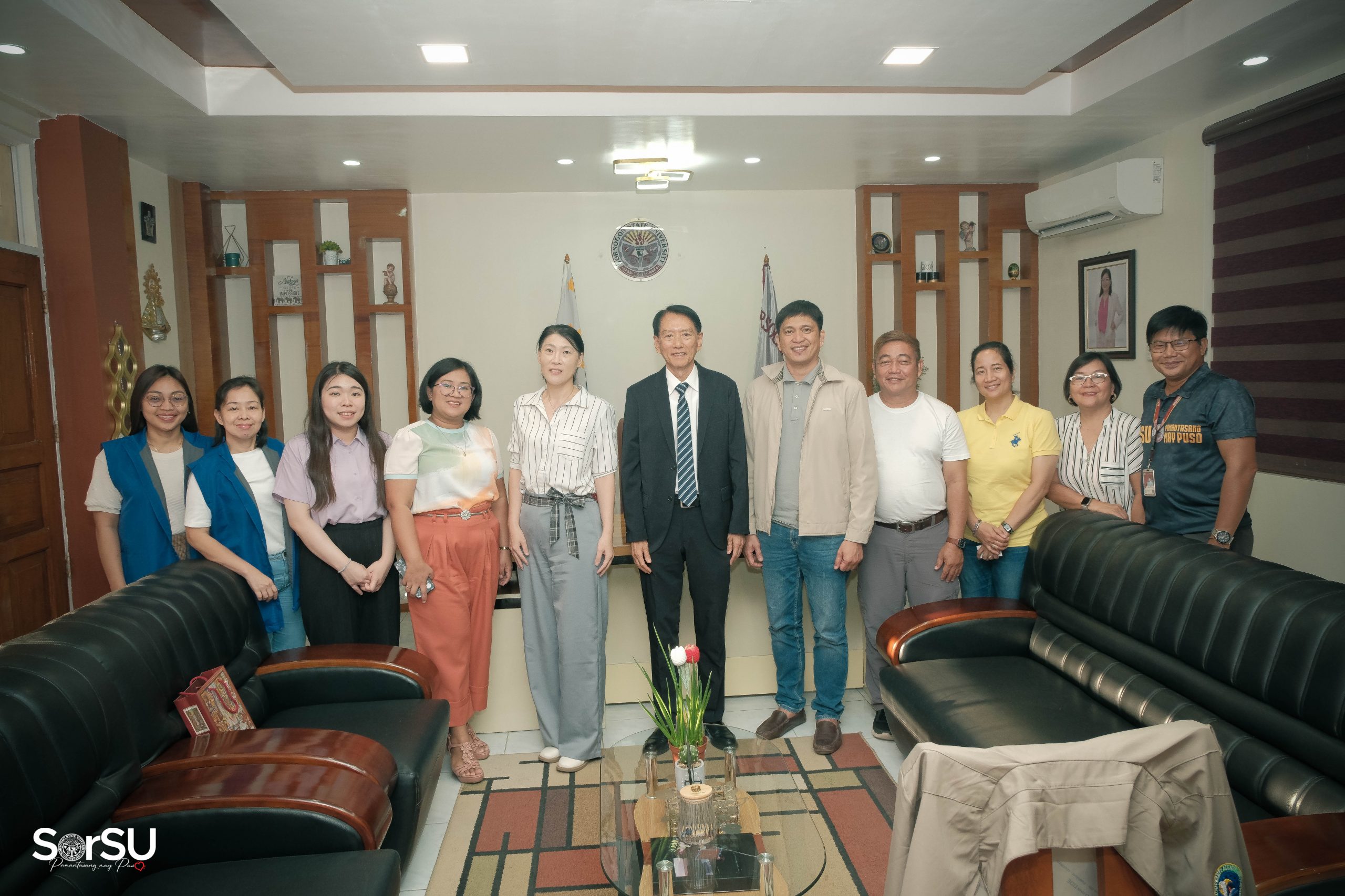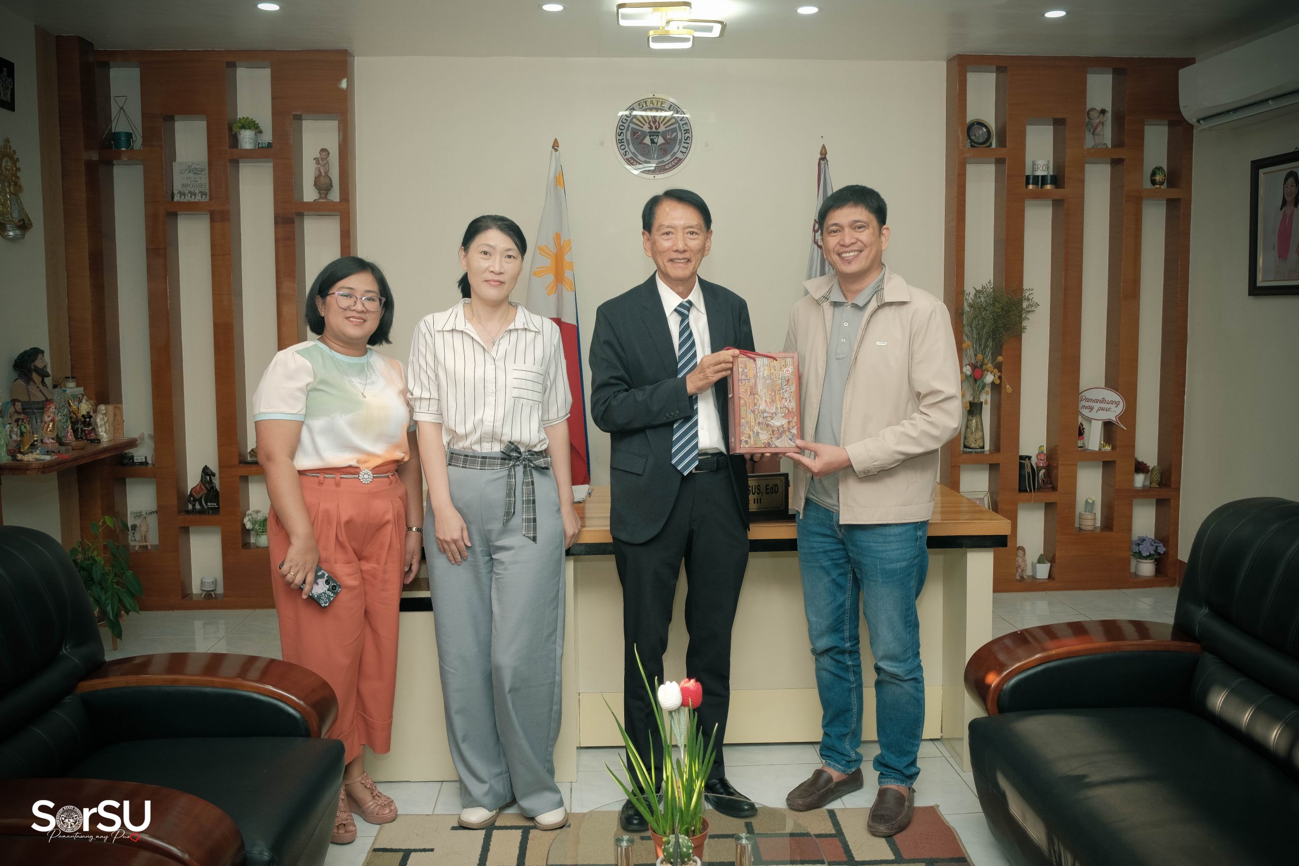 In line with forging international ties with academic institutions along student internship programs, I-MEI Food Corporation, a Taiwanese Employer-Corporation, represented by Ms. Chia Yi Lin (I-MEI HR Specialist), Ms. Sophia Wu (I-MEI GM Office HR Manager), and Mr. Jack Cheng (President of Taiwan News), together with the Department of Migrant Workers (DMW) personnel, headed by Atty. Jeena P. Paclibar-Laceda (OIC-Regional Director, DMW ROV-Legazpi City) paid a courtesy visit to Sorsogon State University (SorSU) top executives and successfully engaged in an exploratory meeting on April 26, 2024, at the SorSU Office of the President, Sorsogon City Campus.