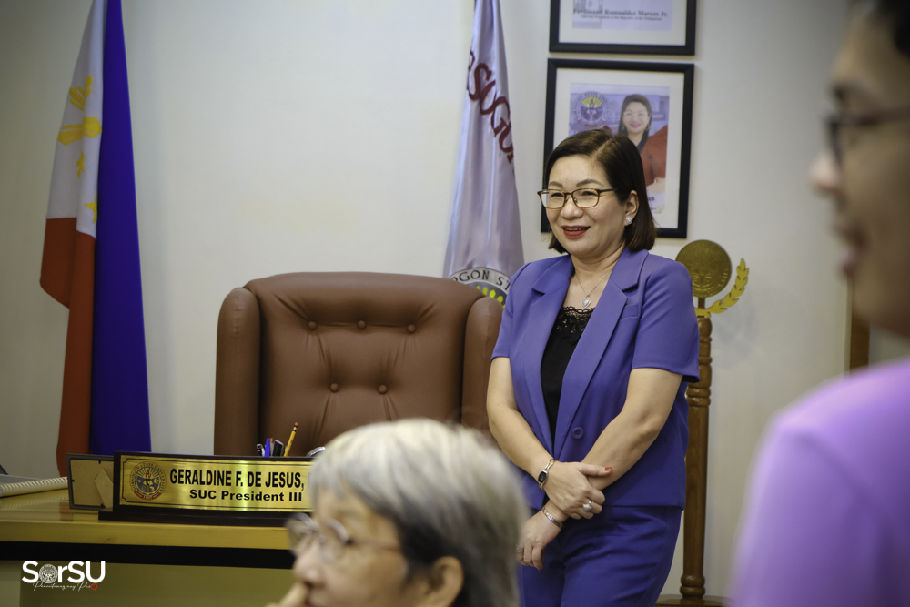 The National Government Audit Sector-State Universities and Colleges (NGAS-SUCs) of the Bicol Region paid a courtesy visit to SUC President III, Dr. Geraldine F. De Jesus, on August 7, 2025, at the Office of the University President, Sorsogon State University.