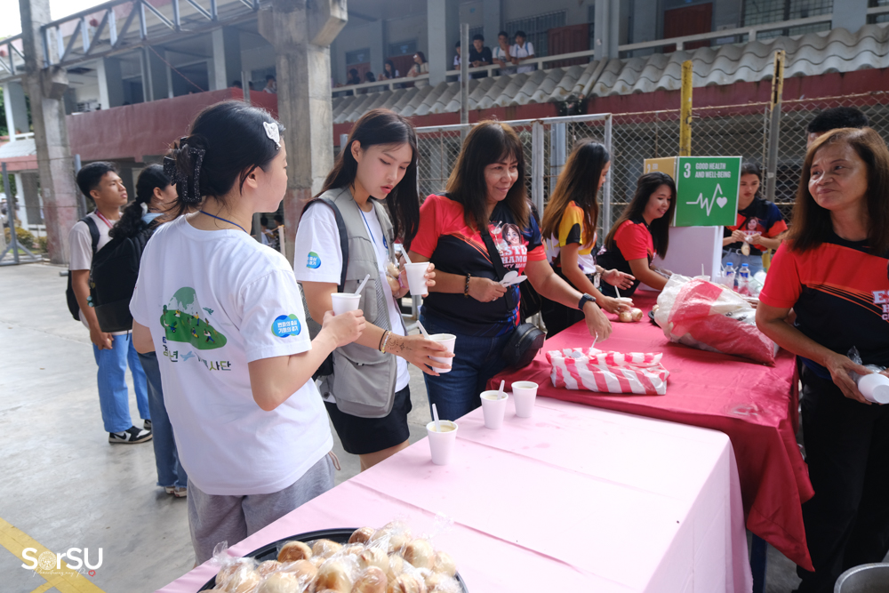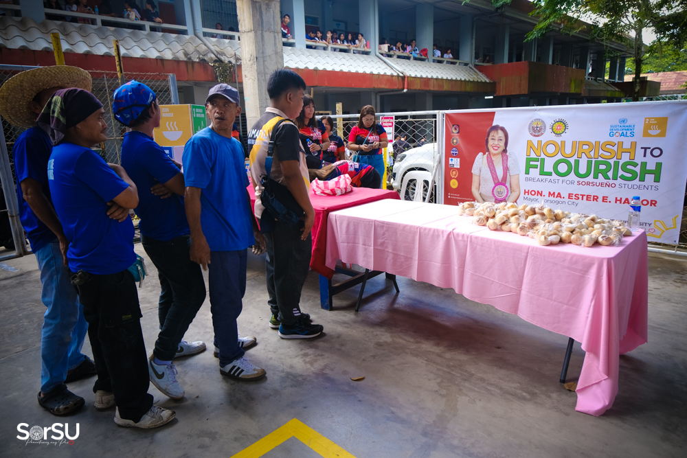 On August 20, 2025, the Office of the City Mayor, through the support of Hon. Ma. Ester E. Hamor, partnered with SorSU under the “Nourish to Flourish” program, serving rice porridge and bread to SorSUenos. This was followed by another activity on August 28, 2025, where macaroni soup and bread were distributed at the SorSU Covered Court. Both feeding activities were made possible through the generosity of Mayor Hamor and the assistance of her office staff.