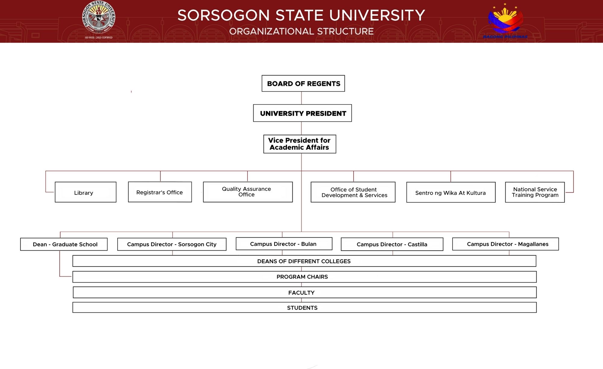 This structure ensures that SorSU’s vision, mission, and goals are effectively translated into action, promoting a culture of collaboration, innovation, and excellence across all campuses.