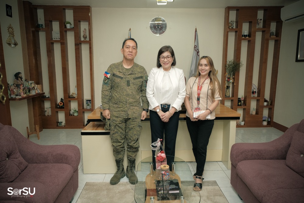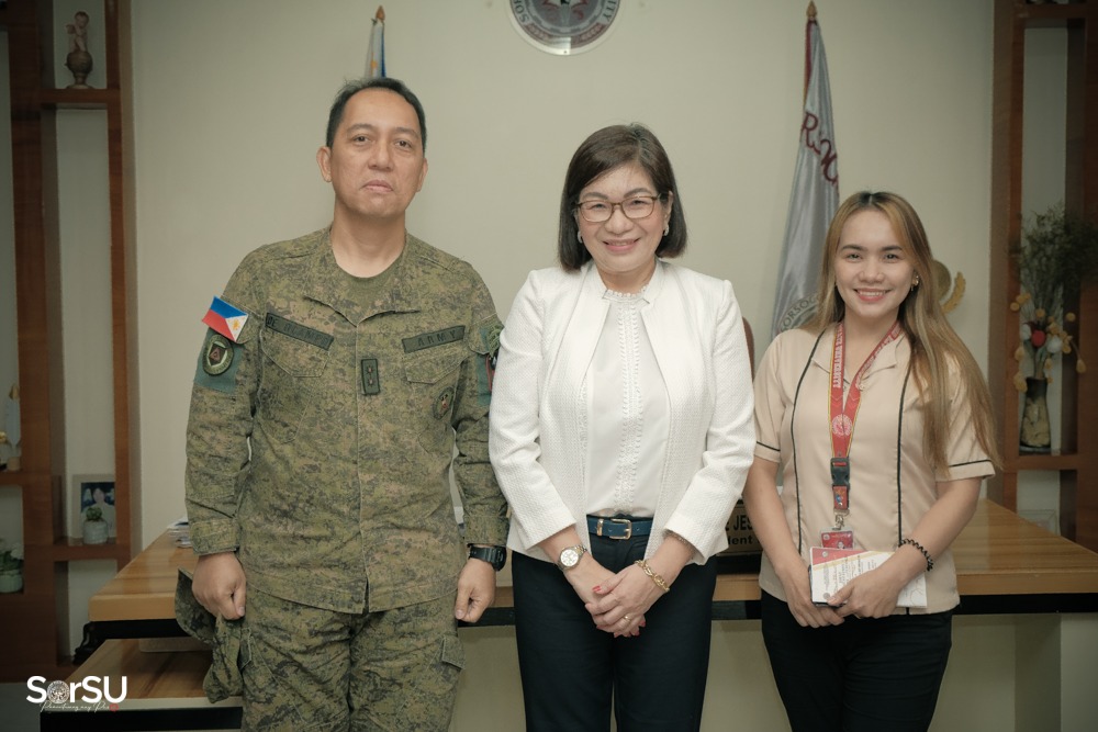Joining the courtesy visit were SSg Marlon L. Rubios (MS) PA and Prof. Mary Rose B. Lacdang (Director, NSTP). (SorSU PIO)