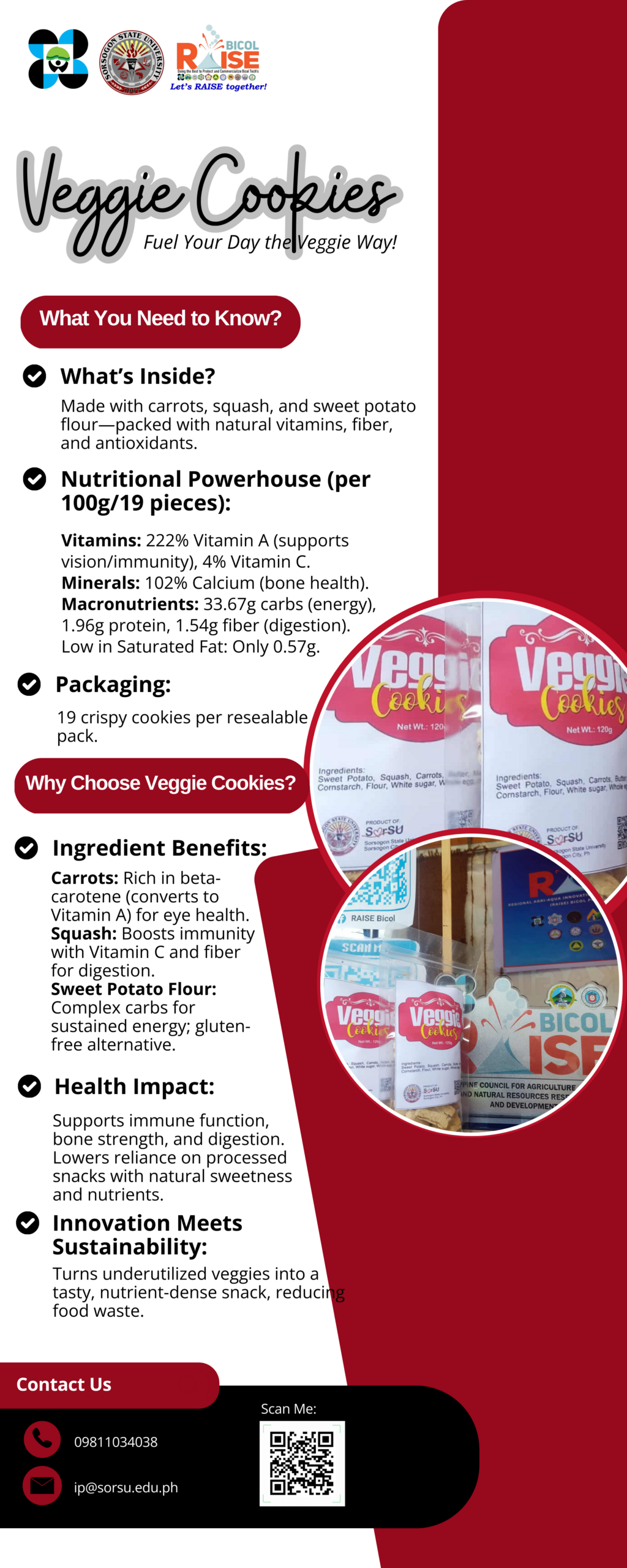 Explore SorSU’s Utility Model–registered products, including Pili Pulp Crackers, Ready-to-Cook Vacuum-Packed Baloko, and our signature Veggie Cookies.