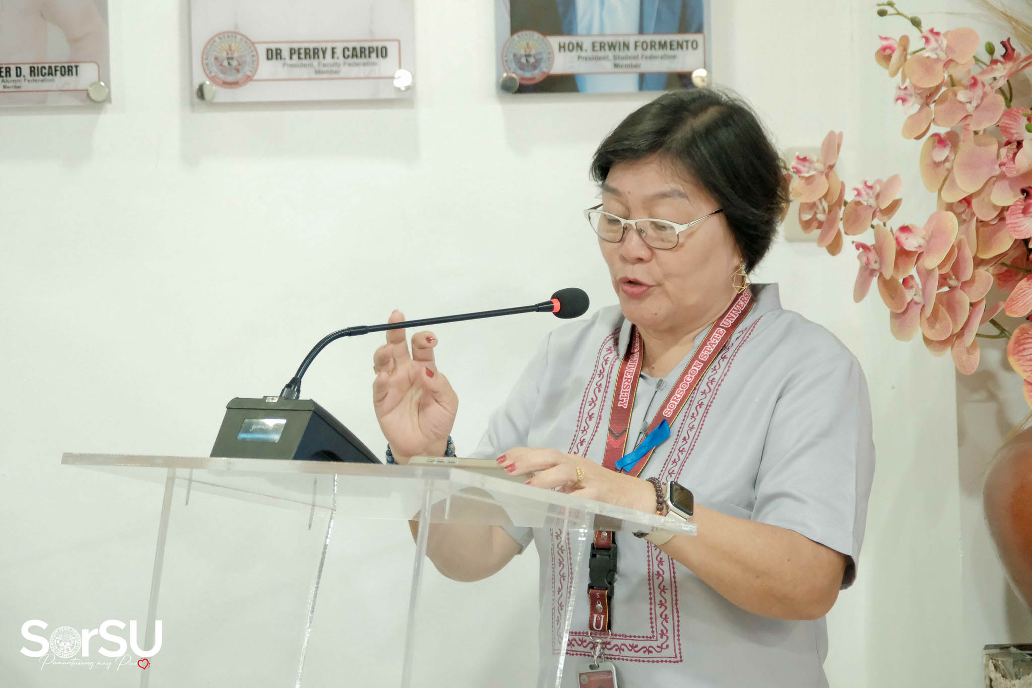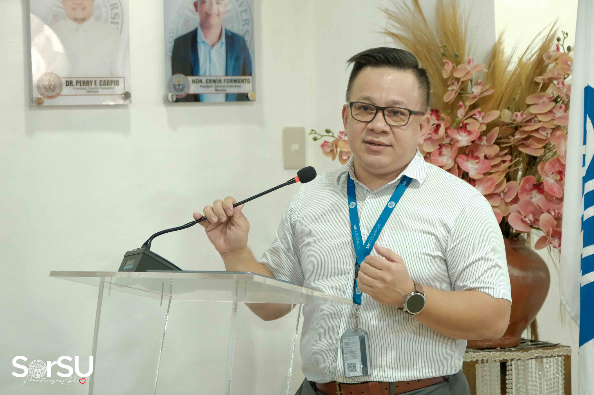 Prof. Maria Crisanta M. Jarque (Director, Office of Student Development and Services) delivered the welcome remarks. Arch. Marlo Niko G. Alvarez (Regional Operations Manager- SM Supermalls) also shared an insightful message. A notable aspect he mentioned during the ceremony was that 40% of SM City Sorsogon employees were graduates of Sorsogon State University. This statistic not only reflects the university’s strong educational foundation but also underscores the positive impact its graduates have in the workforce.