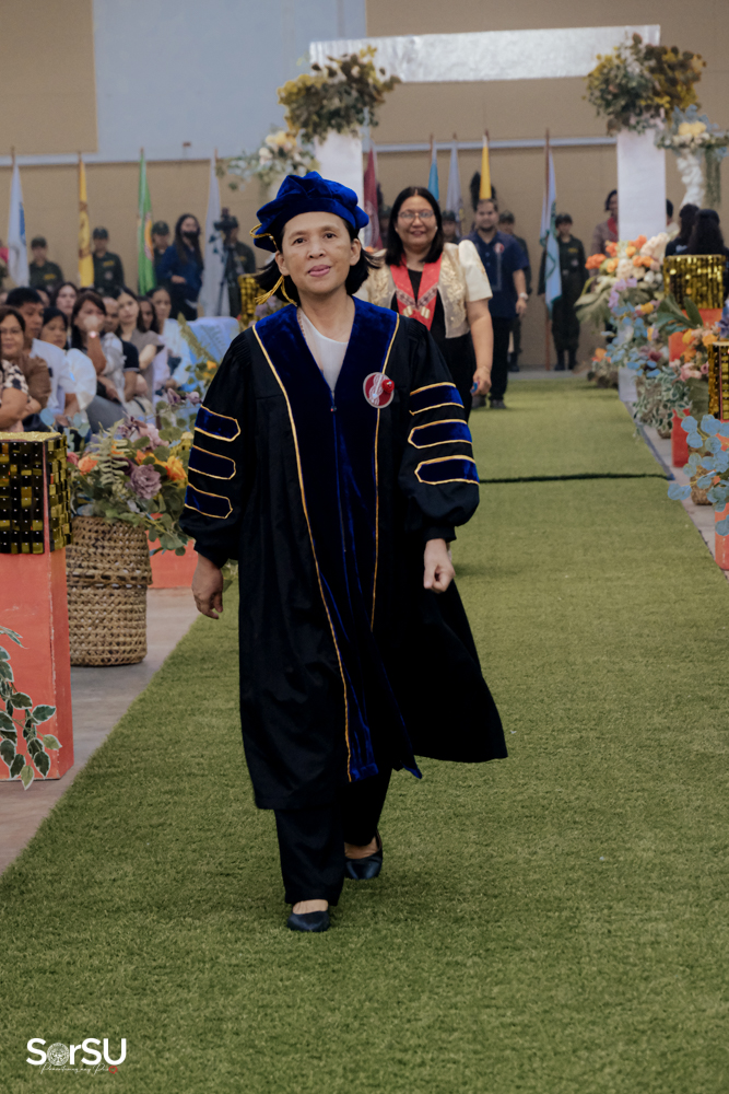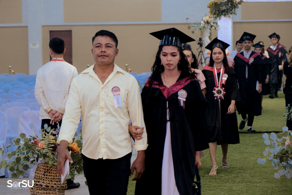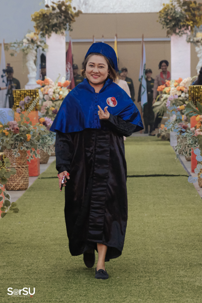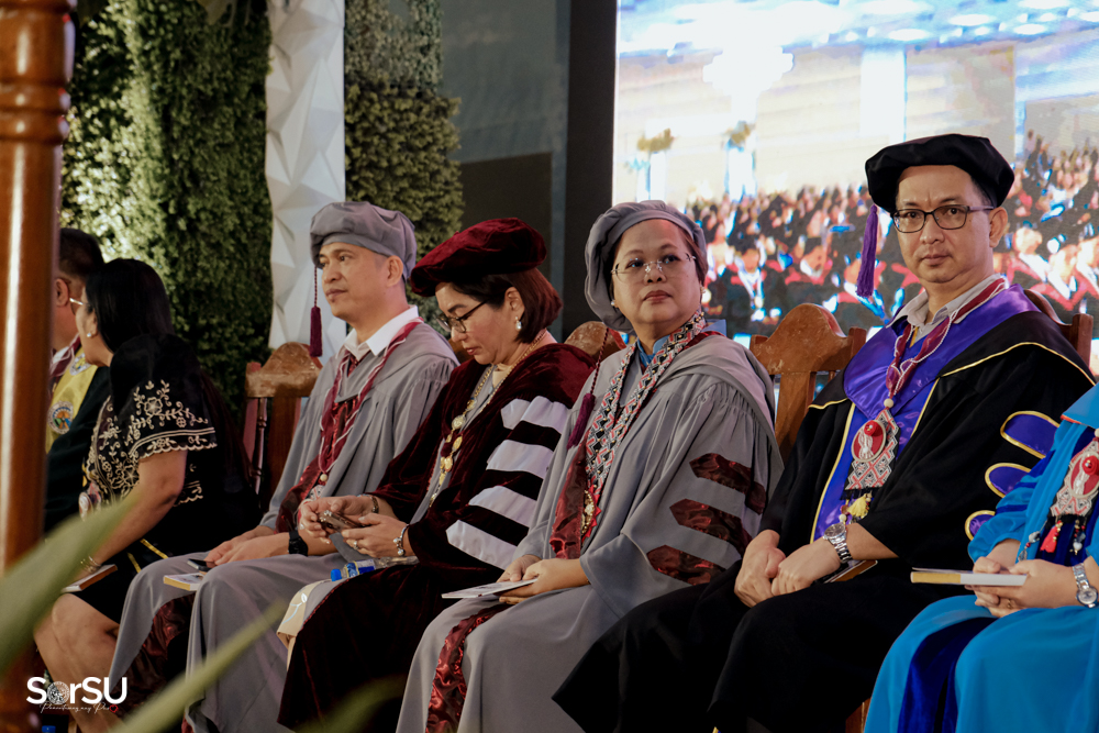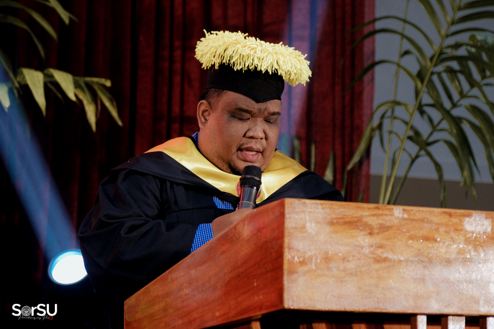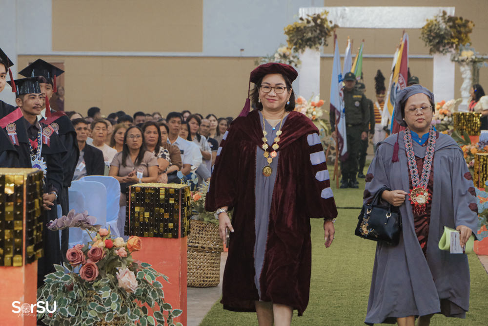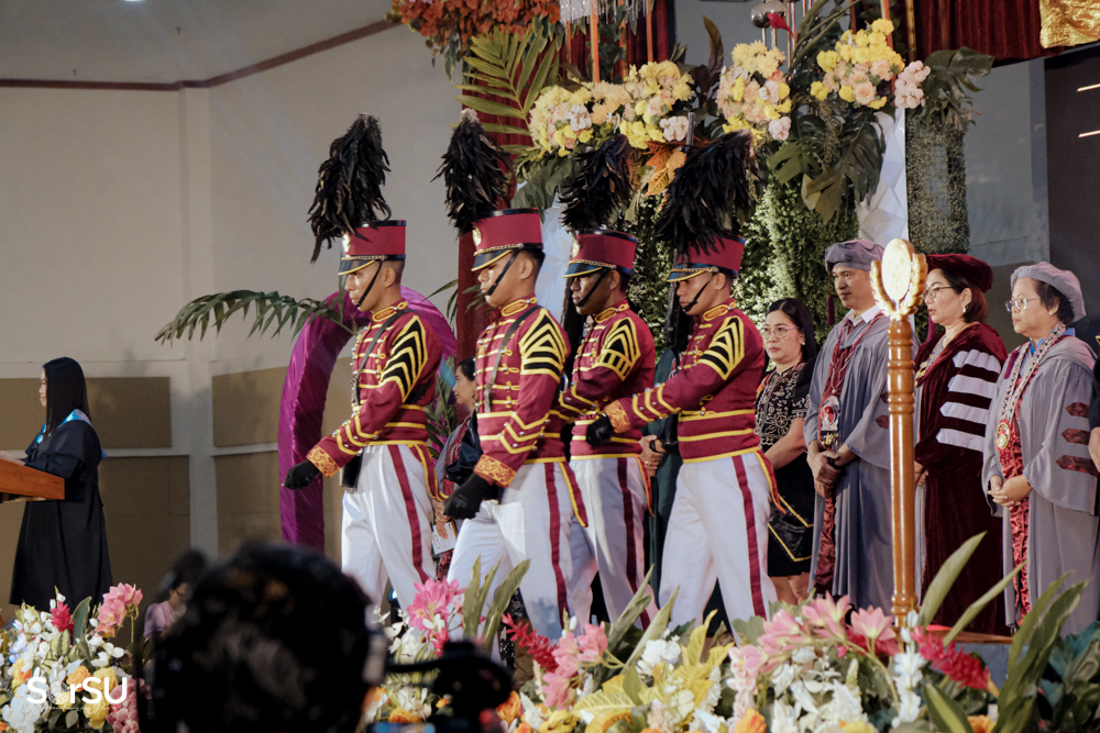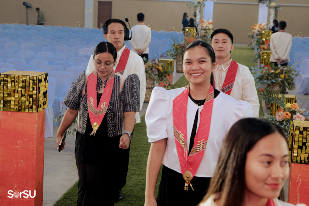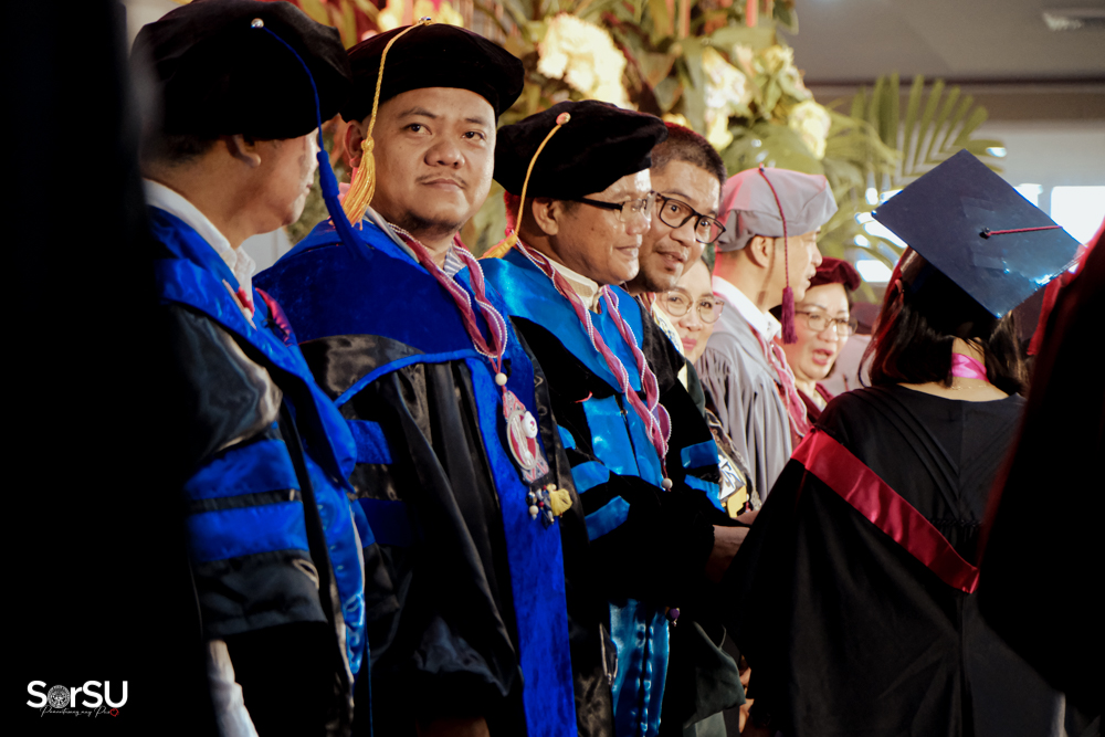 The ceremony began with a formal procession, attended by graduating students, their parents, faculty members, university personnel, guests, and the university officials. This was followed by the Philippine National Anthem conducted by Ms. Kristel Kimberly G. Dellomas, an opening prayer delivered through a doxology by the SorSU Chorale, and a musical overture performed by the SorSU Marching Band.