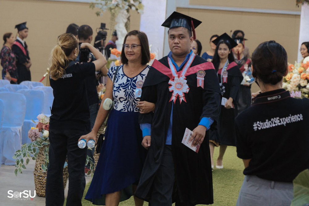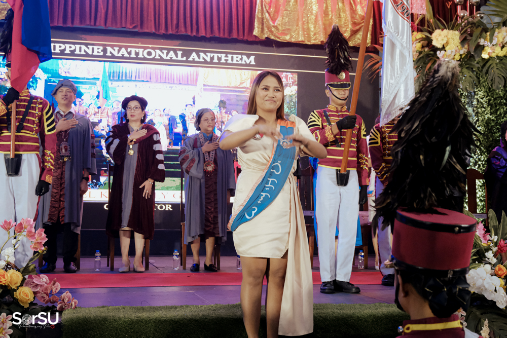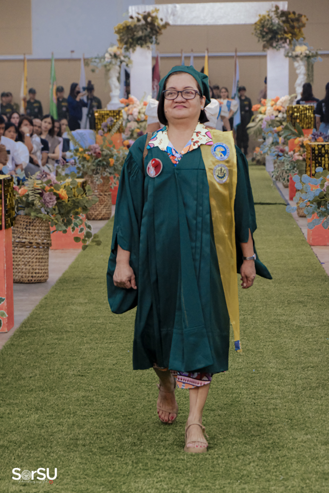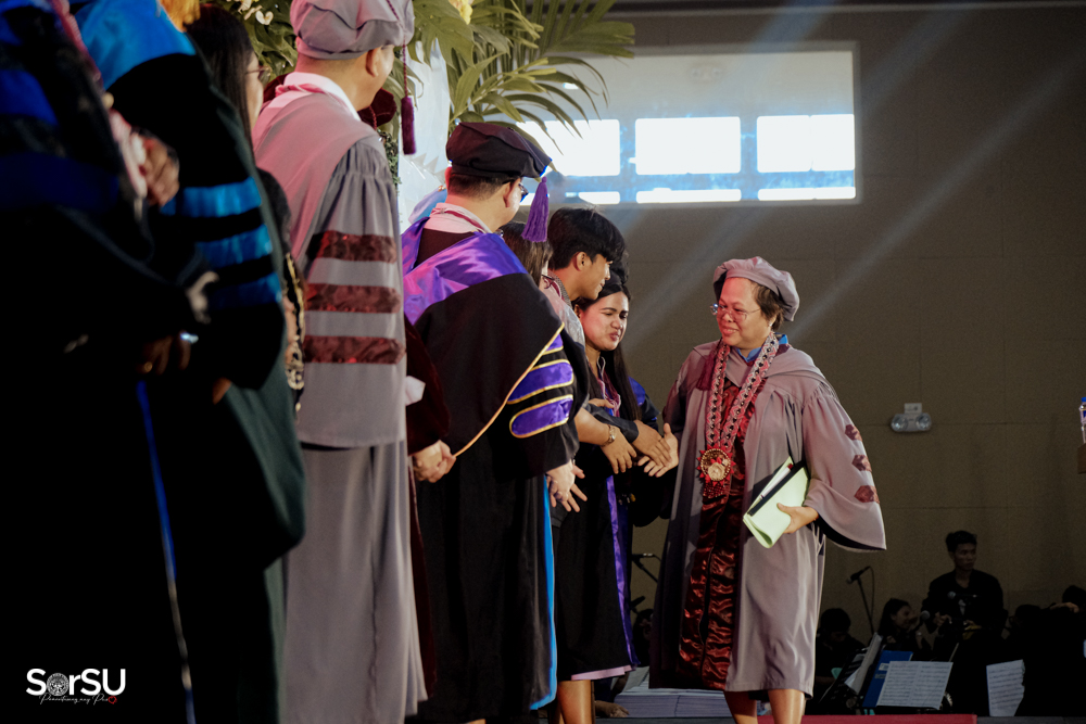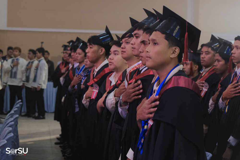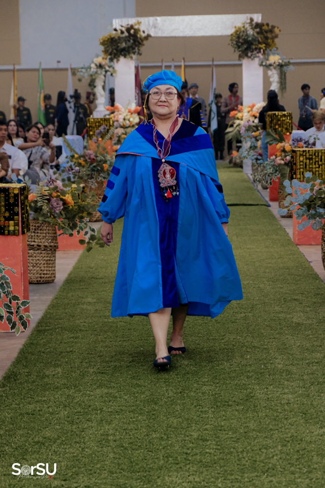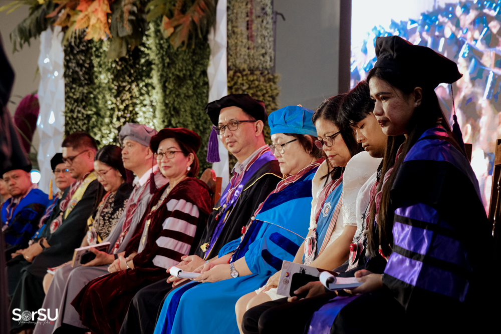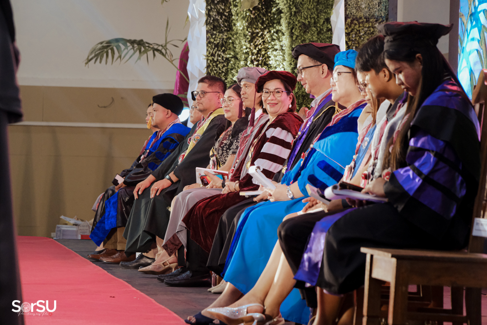 The ceremony began with a formal procession, attended by graduating students, their parents, faculty members, university personnel, guests, and the university officials. This was followed by the Philippine National Anthem conducted by Ms. Kristel Kimberly G. Dellomas, an opening prayer delivered through a doxology by the SorSU Chorale, and a musical overture performed by the SorSU Marching Band.