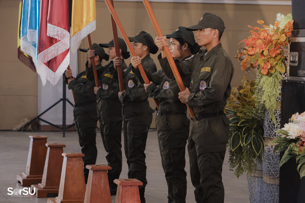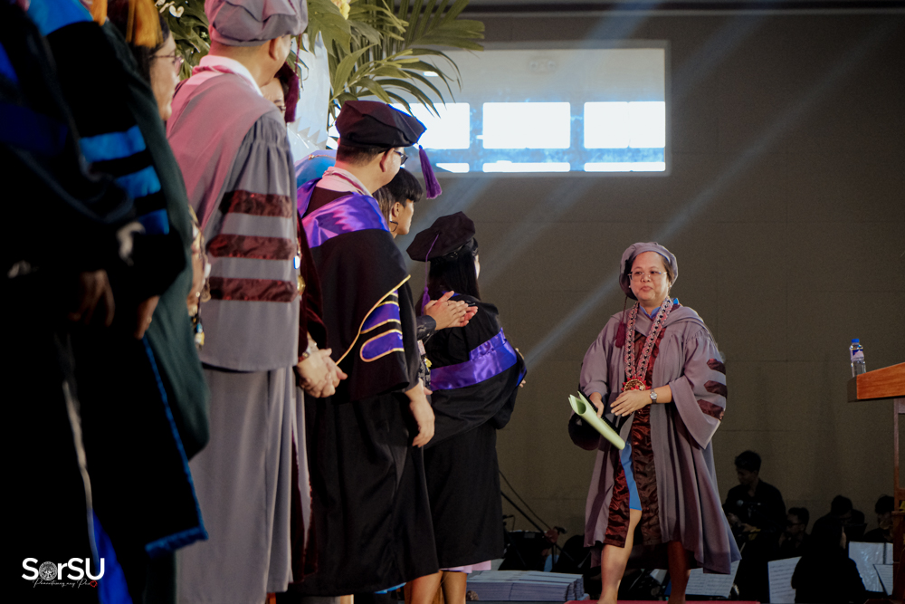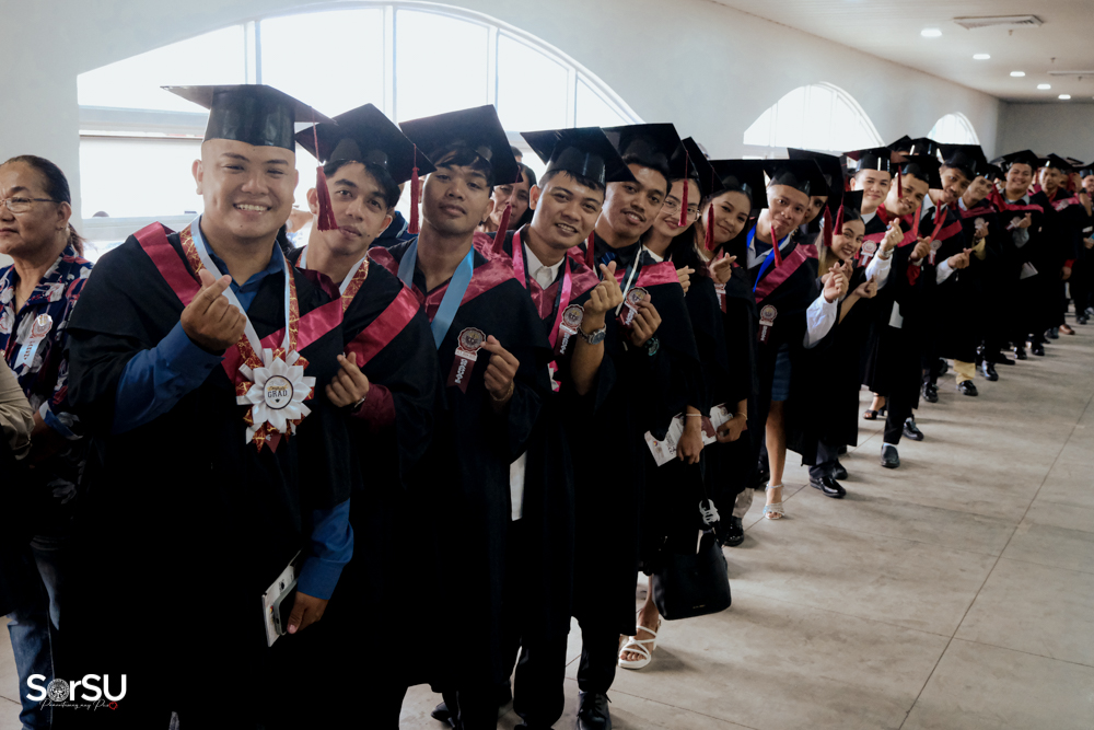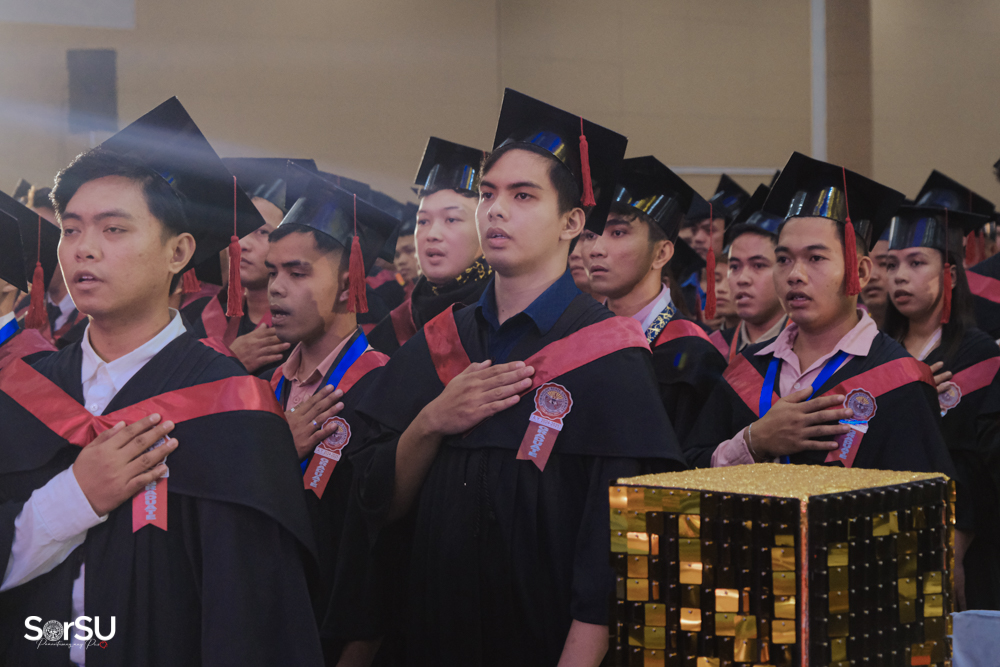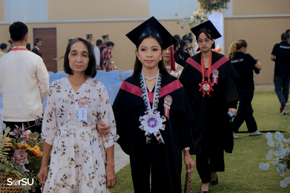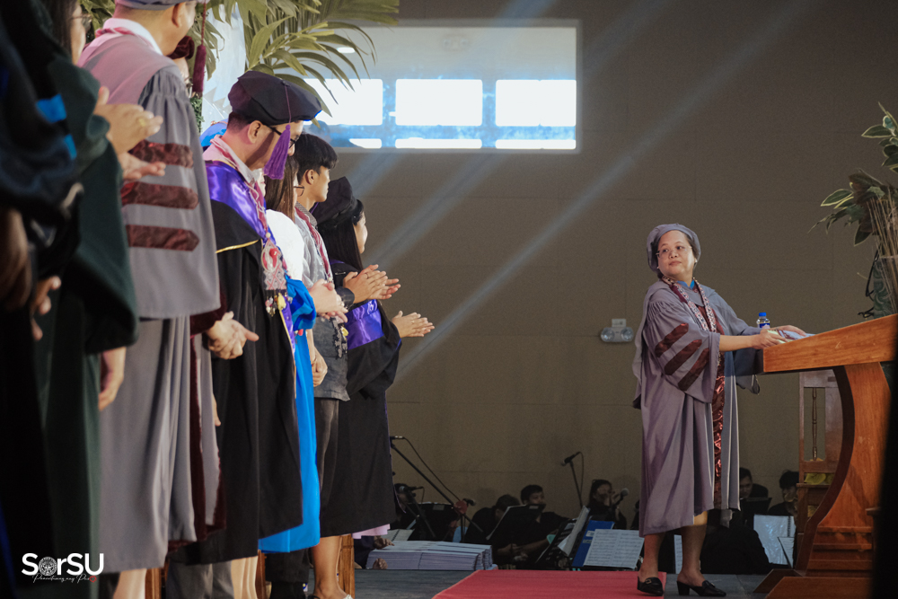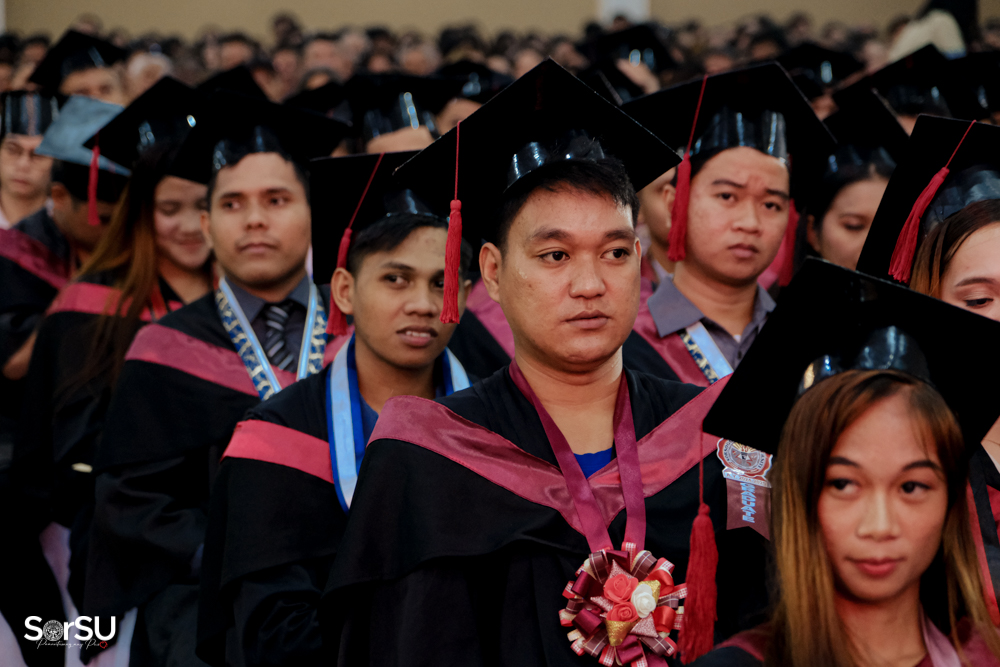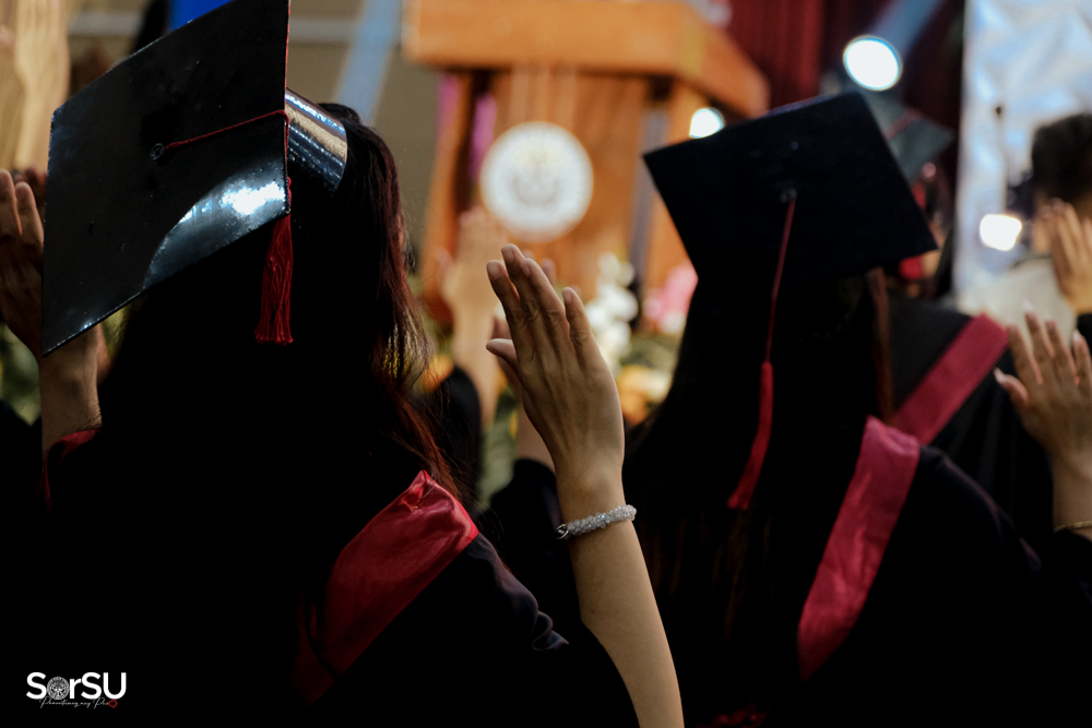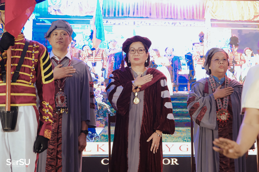 The ceremony began with a formal procession, attended by graduating students, their parents, faculty members, university personnel, guests, and the university officials. This was followed by the Philippine National Anthem conducted by Ms. Kristel Kimberly G. Dellomas, an opening prayer delivered through a doxology by the SorSU Chorale, and a musical overture performed by the SorSU Marching Band.