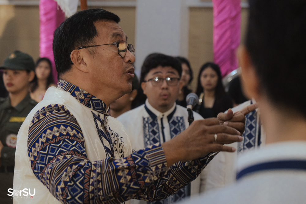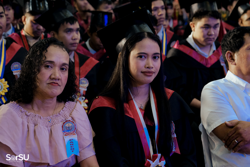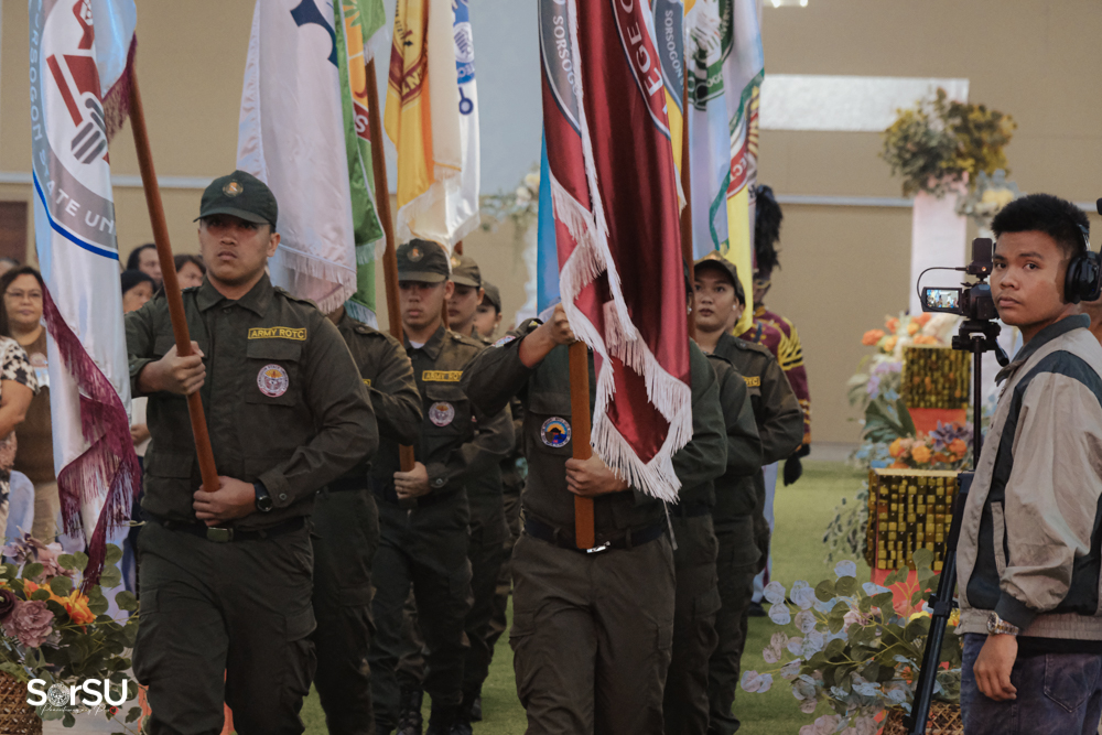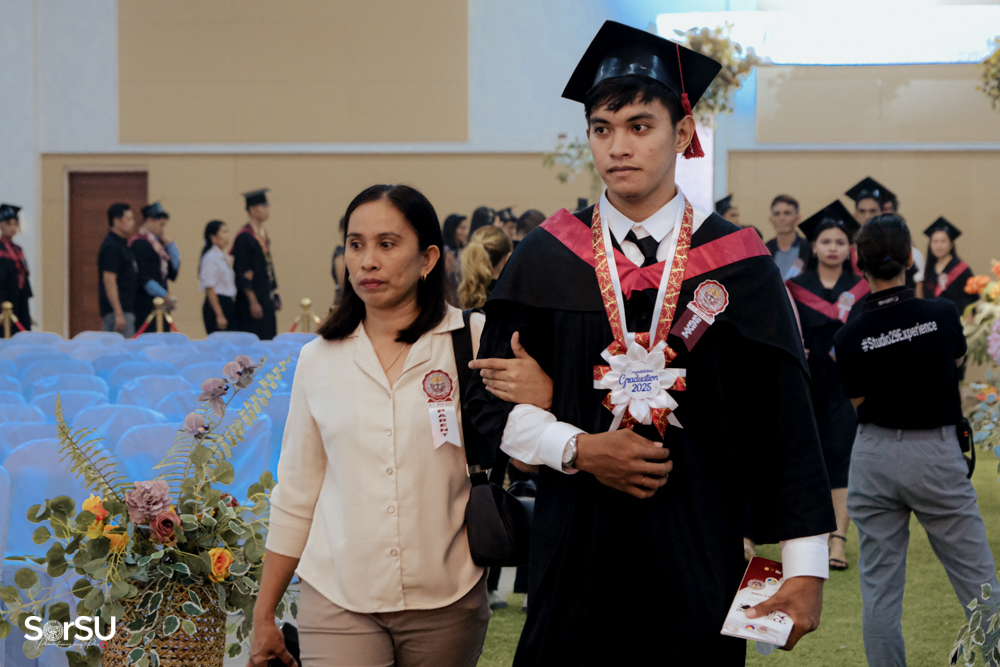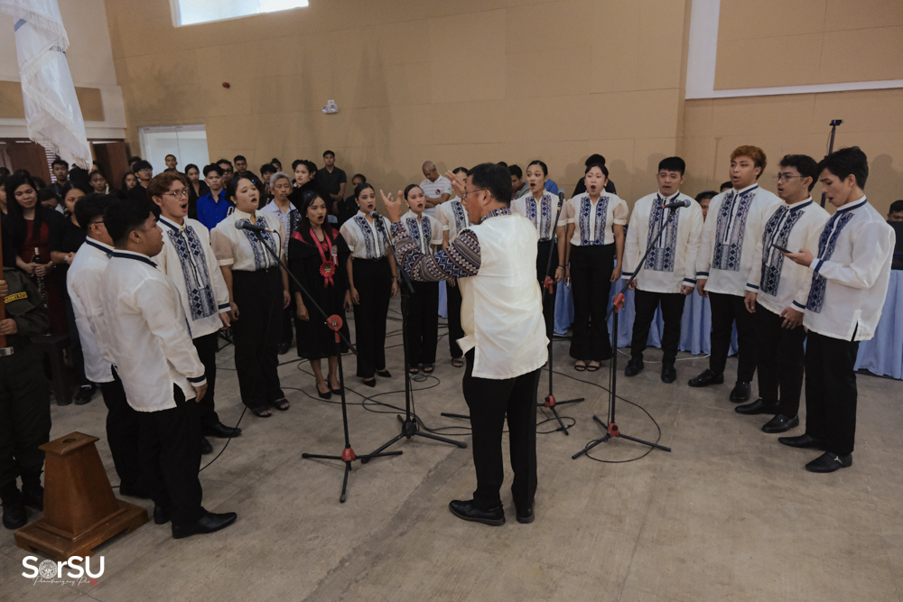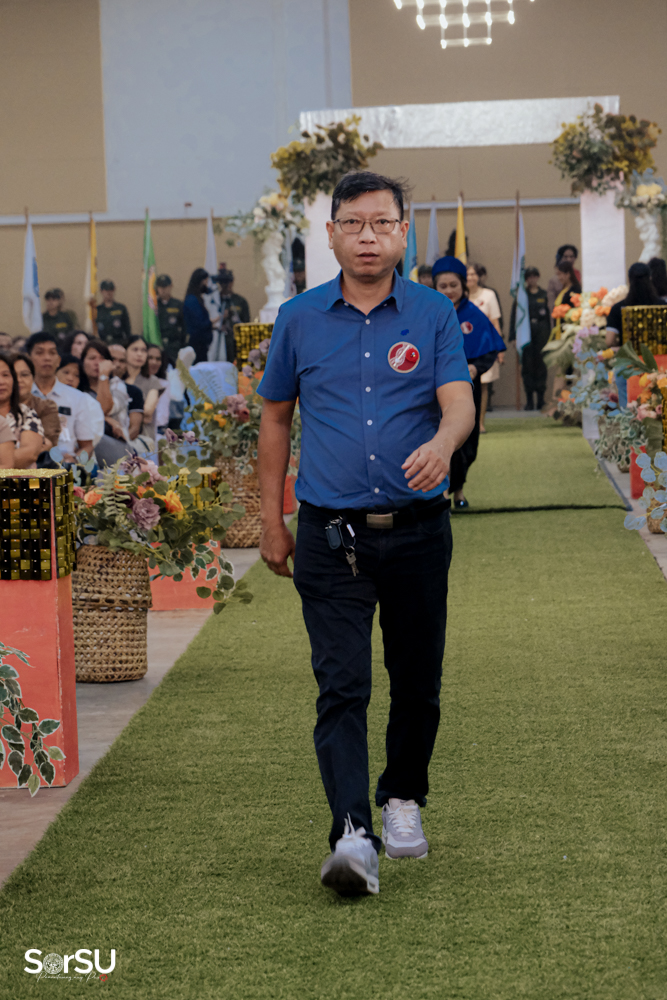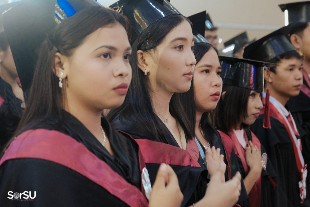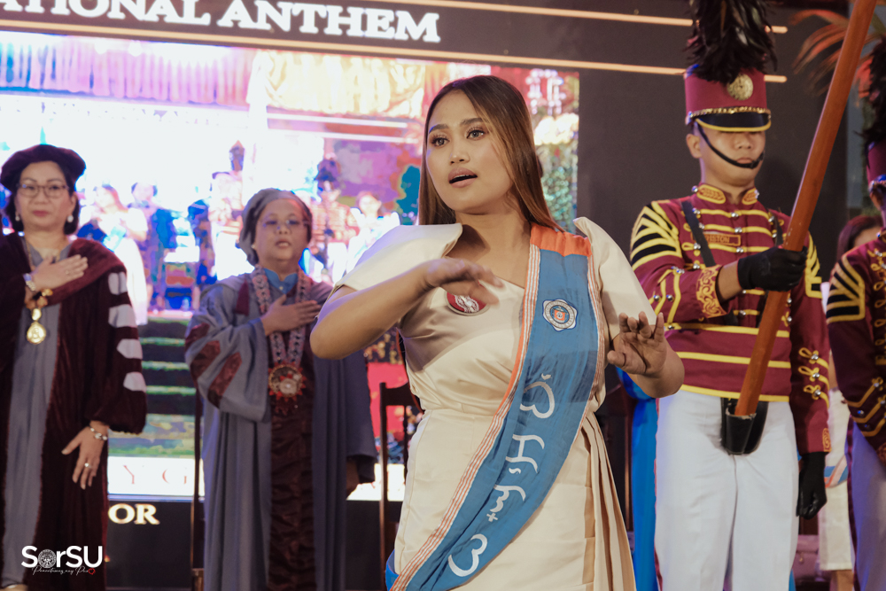 The ceremony began with a formal procession, attended by graduating students, their parents, faculty members, university personnel, guests, and the university officials. This was followed by the Philippine National Anthem conducted by Ms. Kristel Kimberly G. Dellomas, an opening prayer delivered through a doxology by the SorSU Chorale, and a musical overture performed by the SorSU Marching Band.