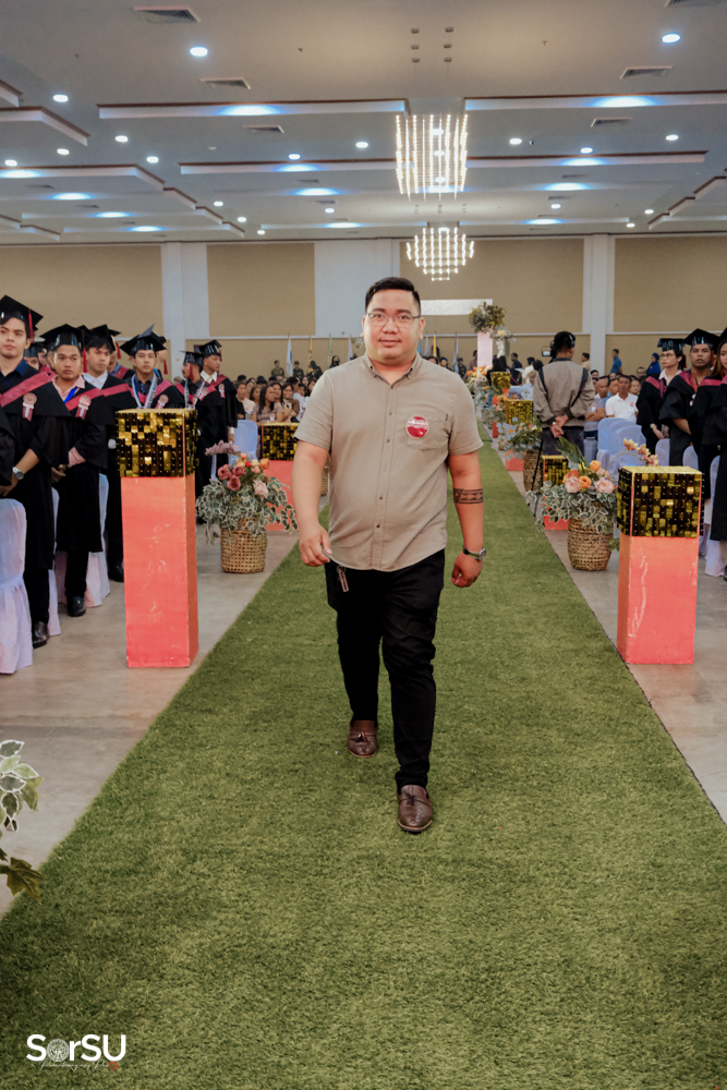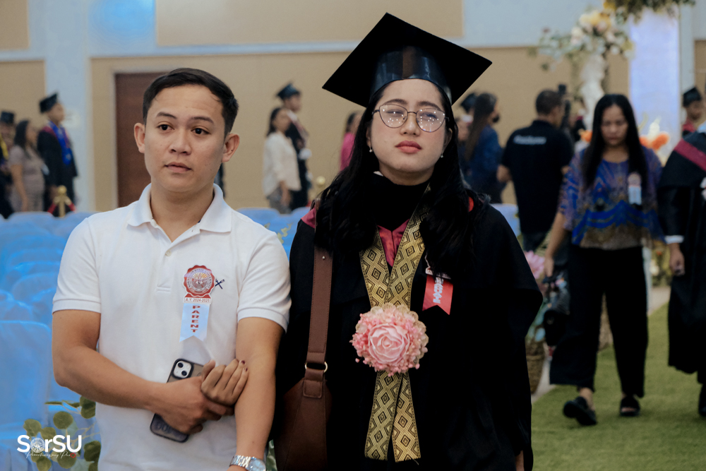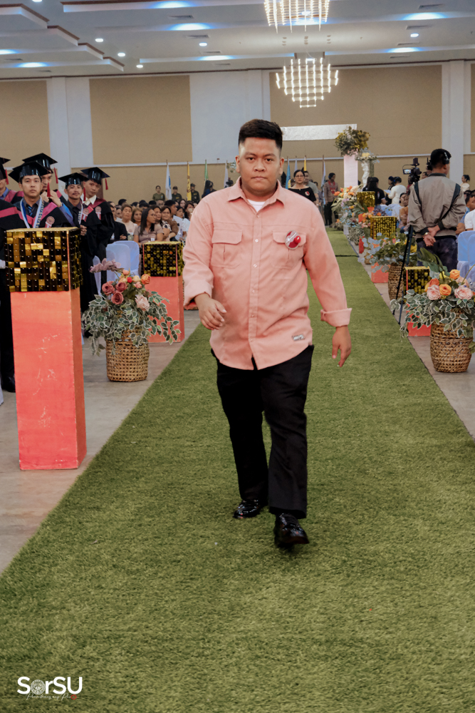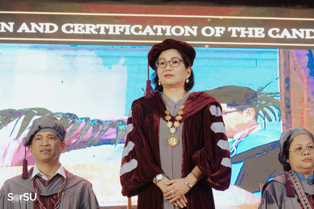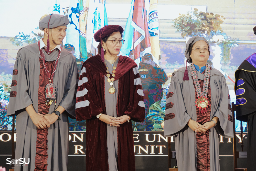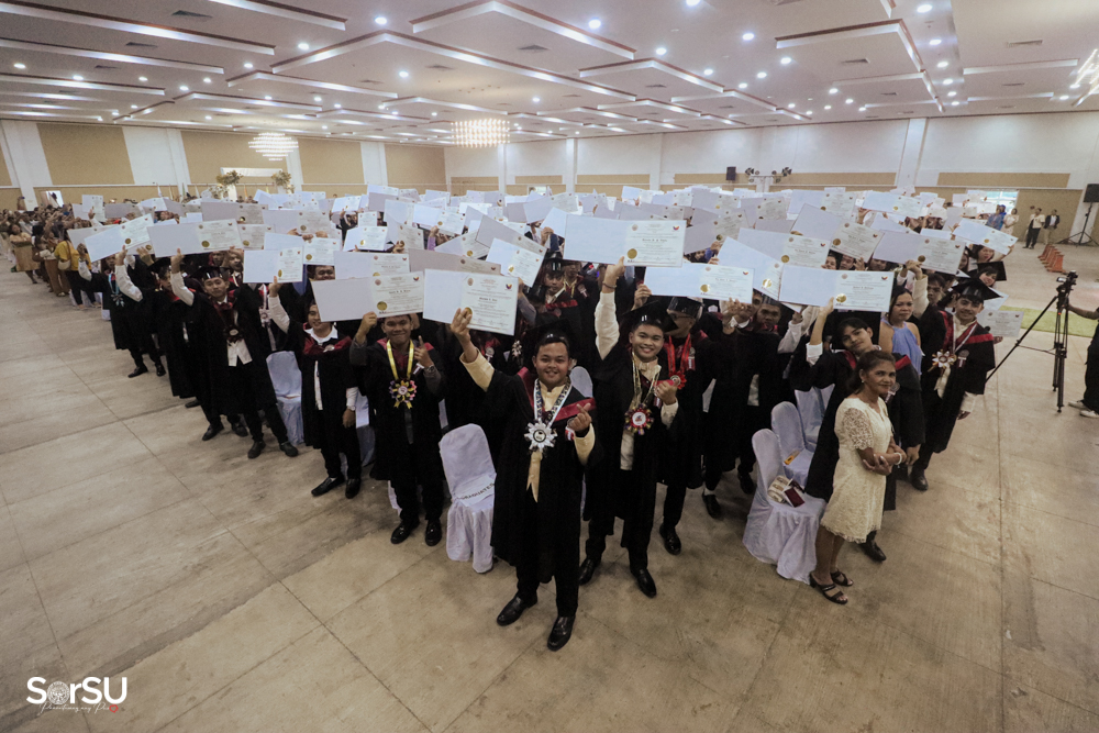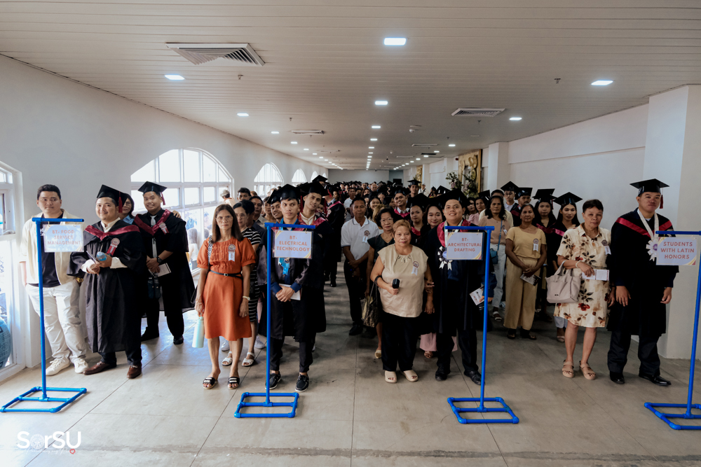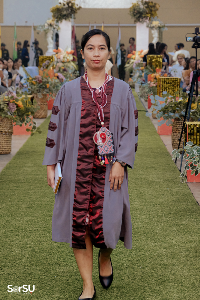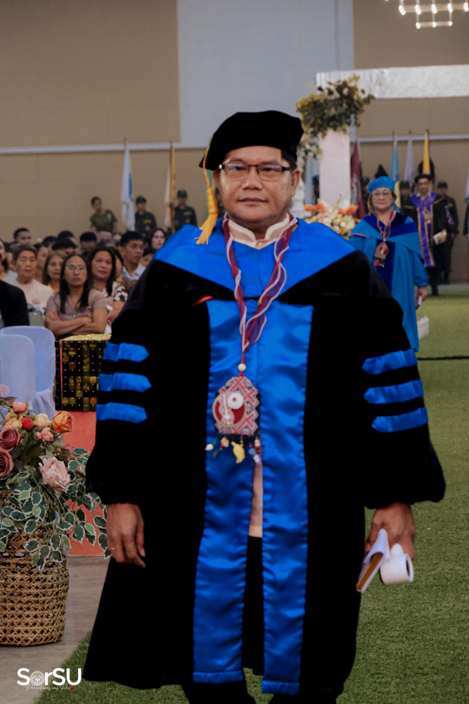 The ceremony began with a formal procession, attended by graduating students, their parents, faculty members, university personnel, guests, and the university officials. This was followed by the Philippine National Anthem conducted by Ms. Kristel Kimberly G. Dellomas, an opening prayer delivered through a doxology by the SorSU Chorale, and a musical overture performed by the SorSU Marching Band.