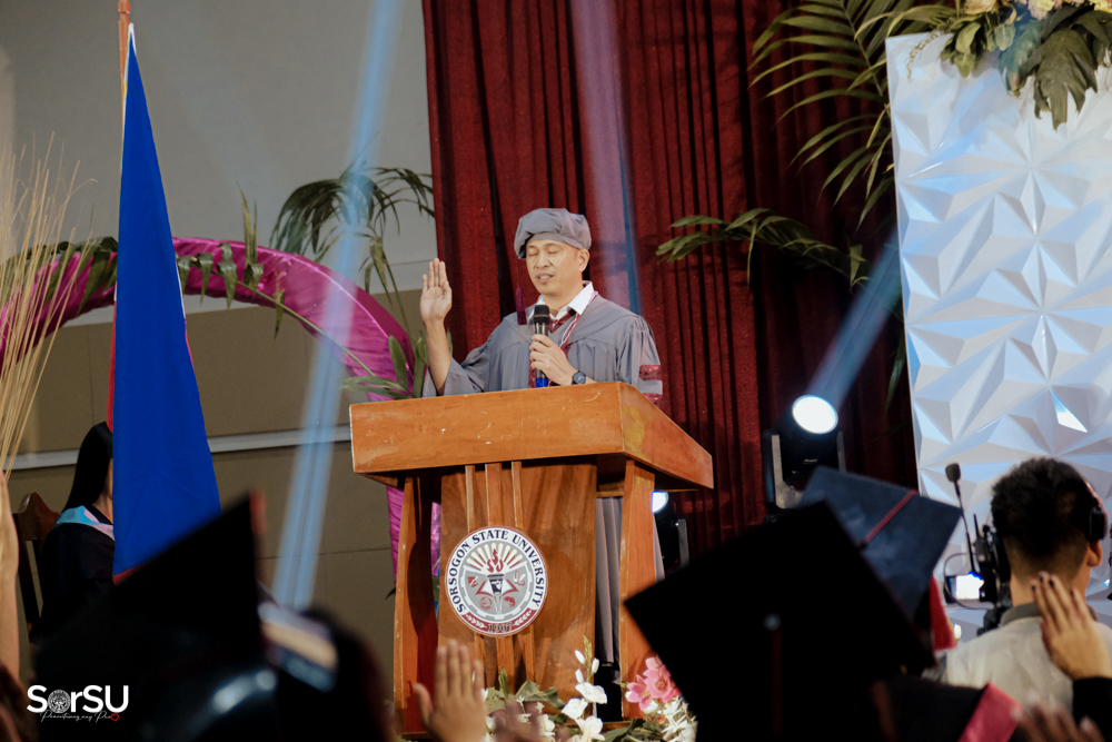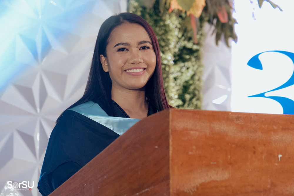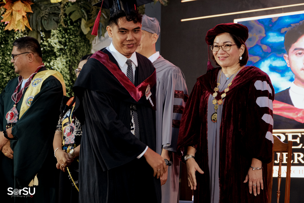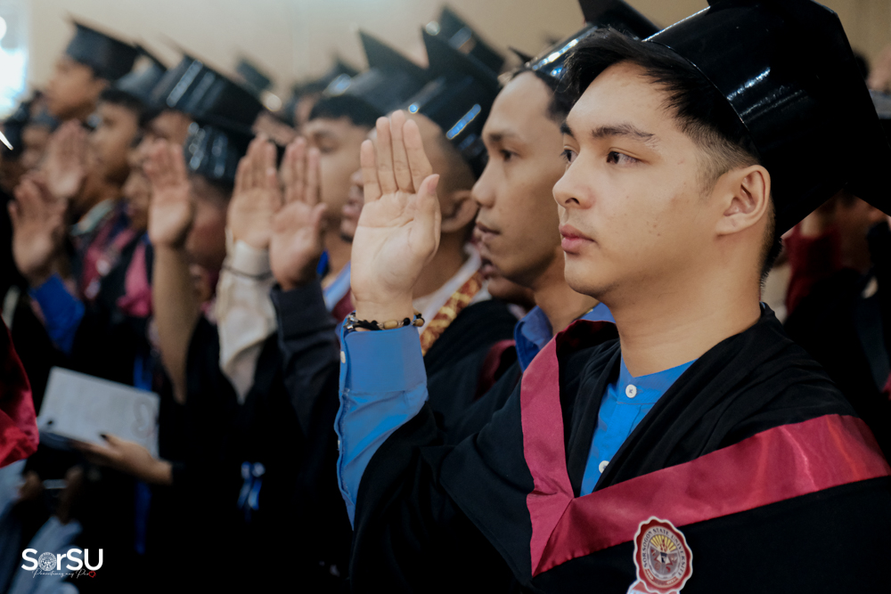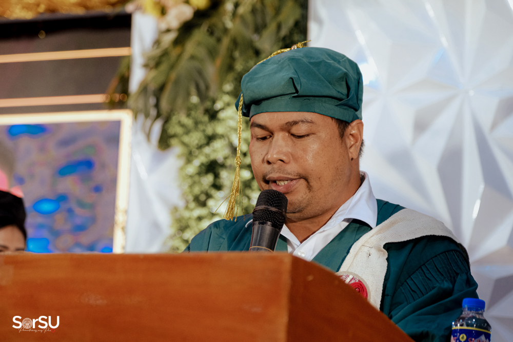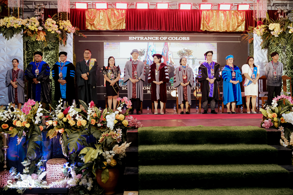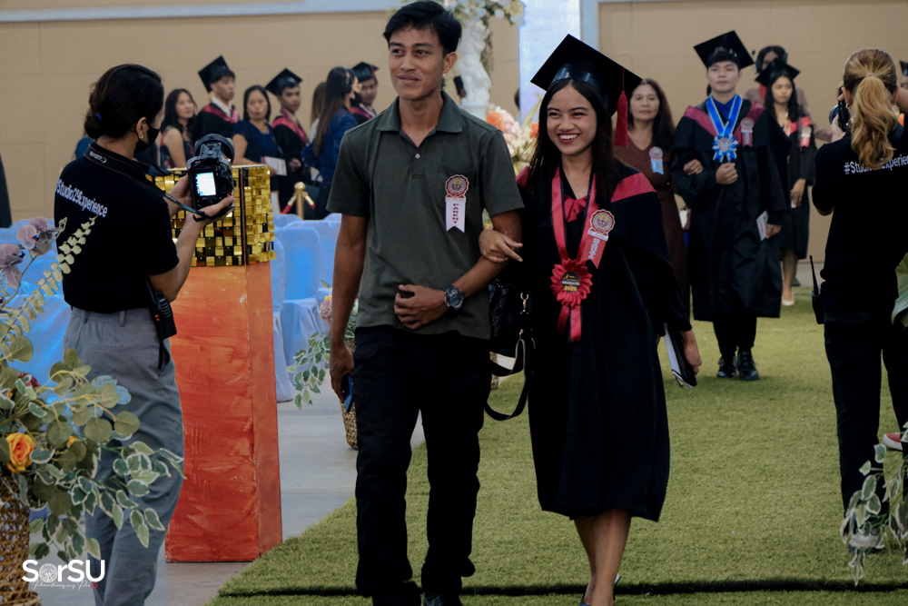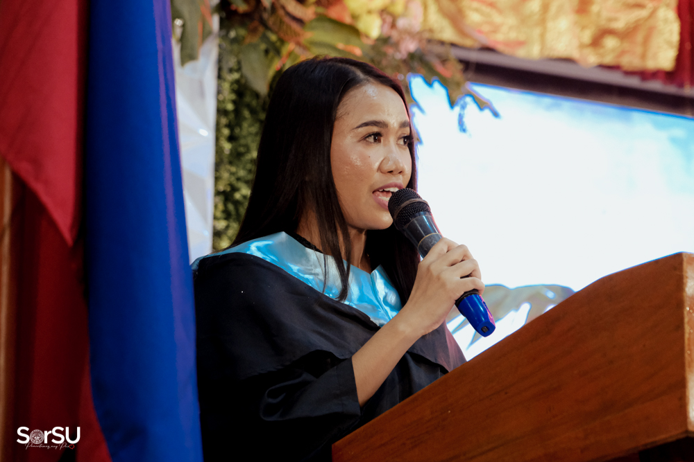 The ceremony began with a formal procession, attended by graduating students, their parents, faculty members, university personnel, guests, and the university officials. This was followed by the Philippine National Anthem conducted by Ms. Kristel Kimberly G. Dellomas, an opening prayer delivered through a doxology by the SorSU Chorale, and a musical overture performed by the SorSU Marching Band.