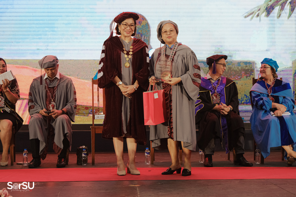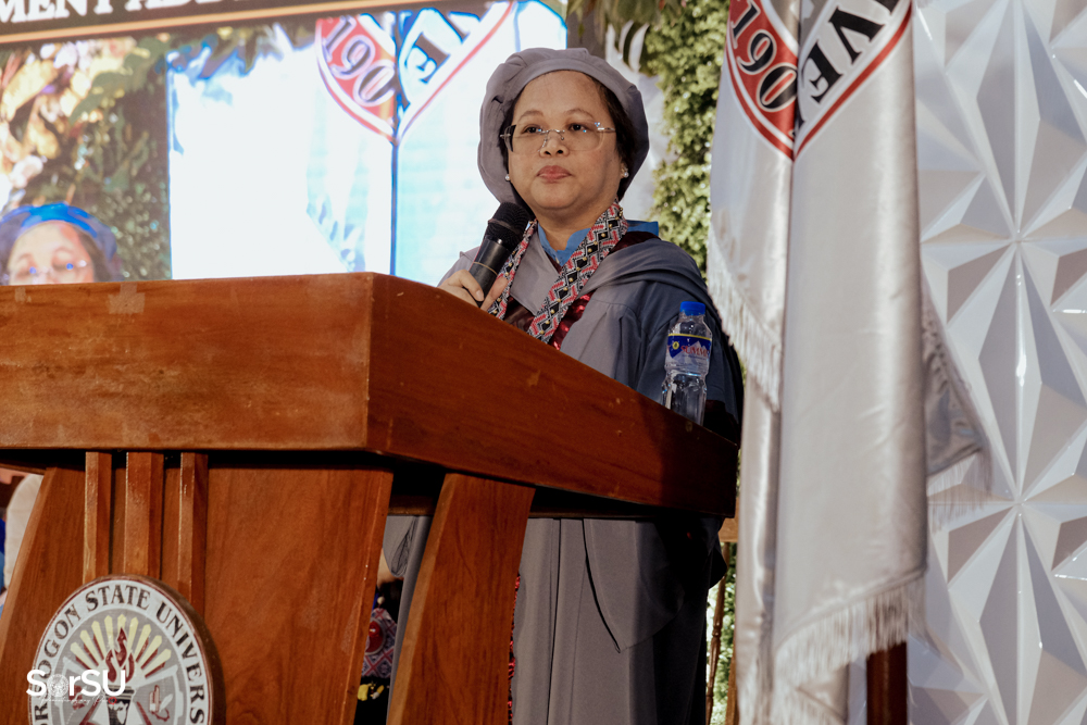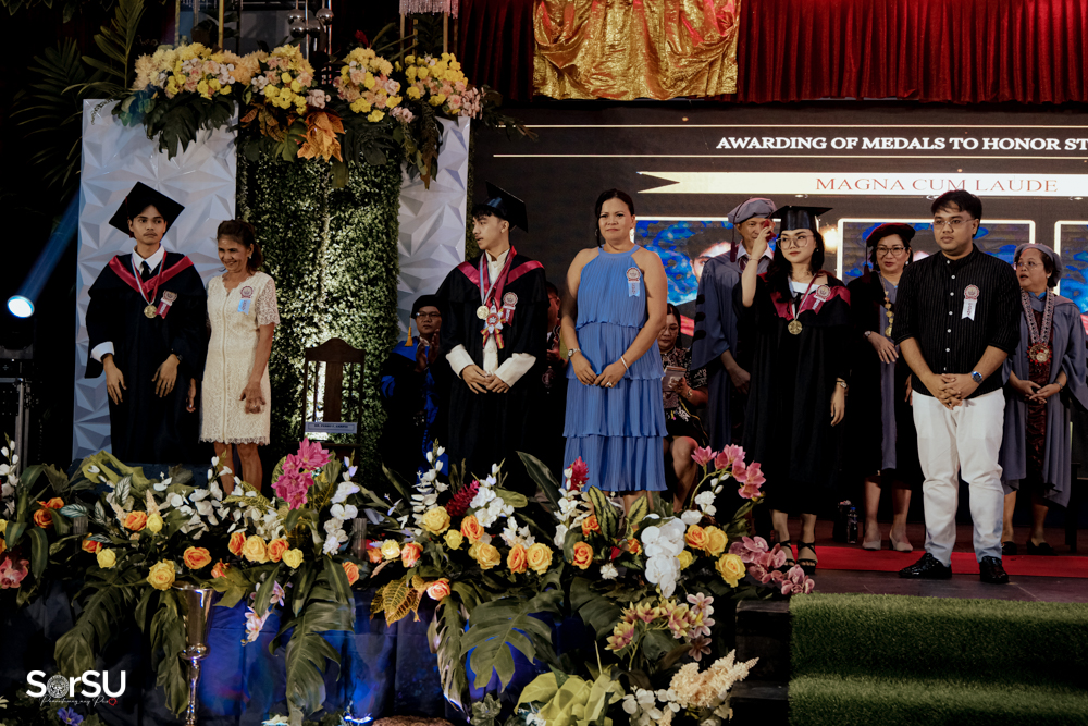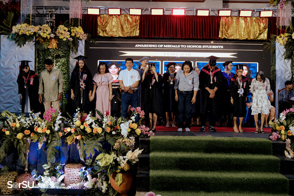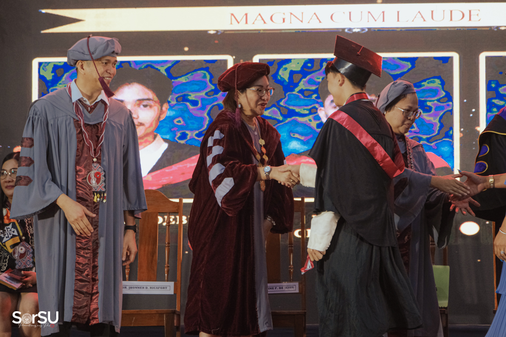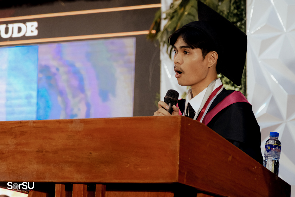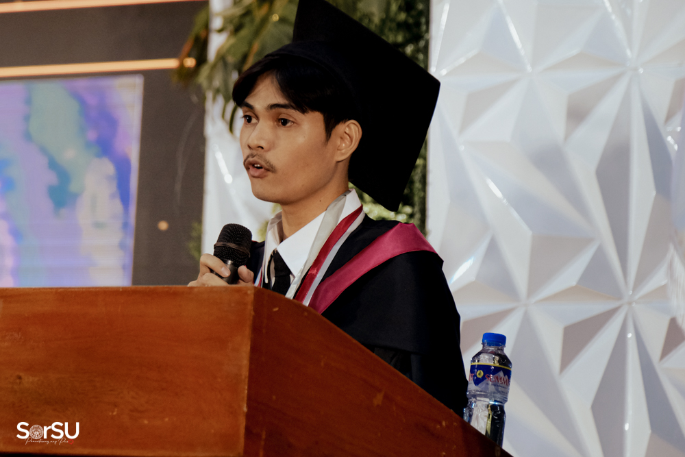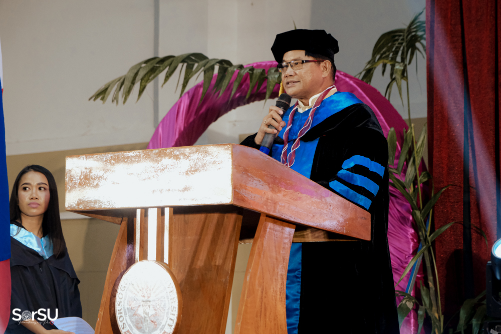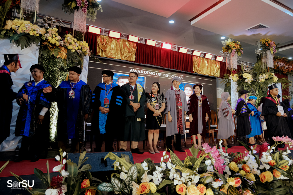 The ceremony began with a formal procession, attended by graduating students, their parents, faculty members, university personnel, guests, and the university officials. This was followed by the Philippine National Anthem conducted by Ms. Kristel Kimberly G. Dellomas, an opening prayer delivered through a doxology by the SorSU Chorale, and a musical overture performed by the SorSU Marching Band.