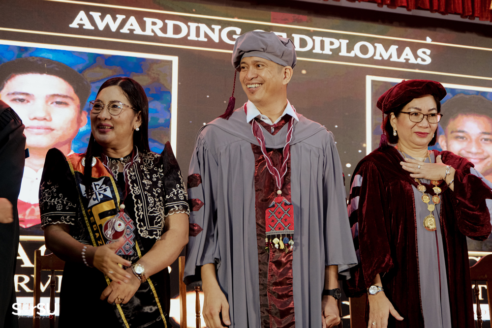 In recognition of academic excellence, medals were awarded to outstanding graduates, led by the University President and assisted by the Vice President for Academic Affairs. A message of gratitude was delivered by Mr. Joebert J. Dimaano (BT-Drafting, Magna Cum Laude), who expressed appreciation to the university, faculty, family, and fellow graduates for their support throughout the academic journey. The ceremonial awarding of diplomas followed, facilitated by President De Jesus, along with the Vice Presidents, the campus director, the university registrar, and the dean.