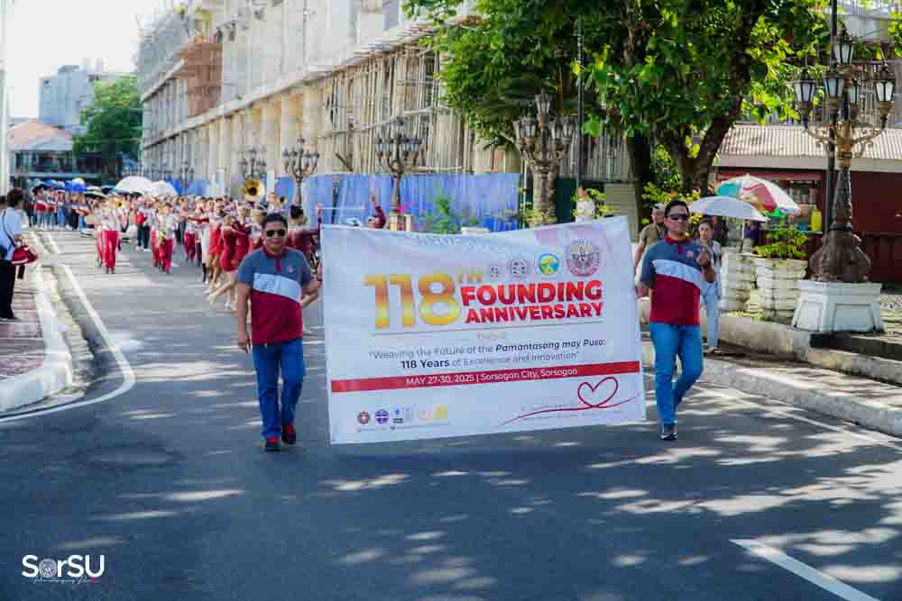 Sorsogon State University (SorSU) officially opened its 118th Founding Anniversary celebration with a university-wide parade on May 27, 2025. The activity was led by SUC President III, Dr. Geraldine F. De Jesus, and participated in by key officials, faculty members, non-teaching personnel, and students.