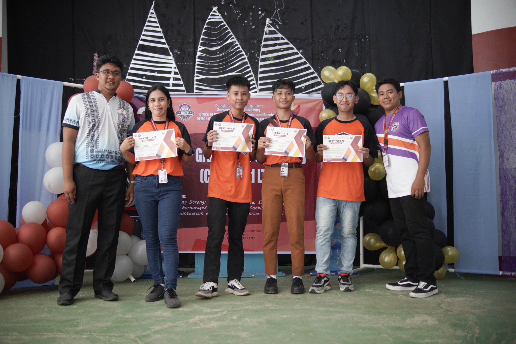 Other highlights of the activity was the presentation and distribution of the certificates to top performing students and the graduates by Prof. Jerick G. Esguerra and Prof. Michael H. Galapon, NSTP Coordinator. The program was concluded with a lively graduation song of triumphs, hope and affirmations. (Sor SU Magallanes Campus)