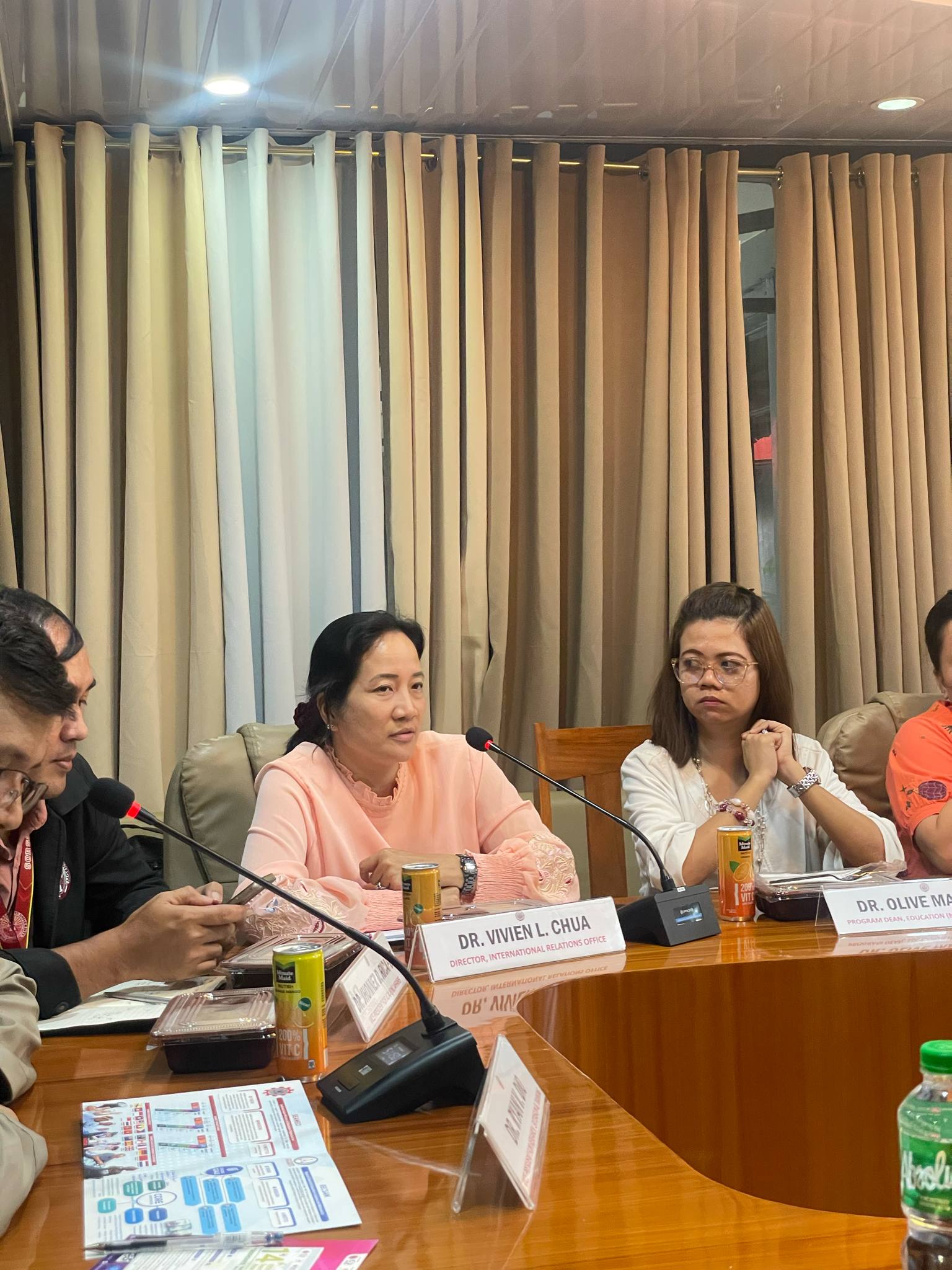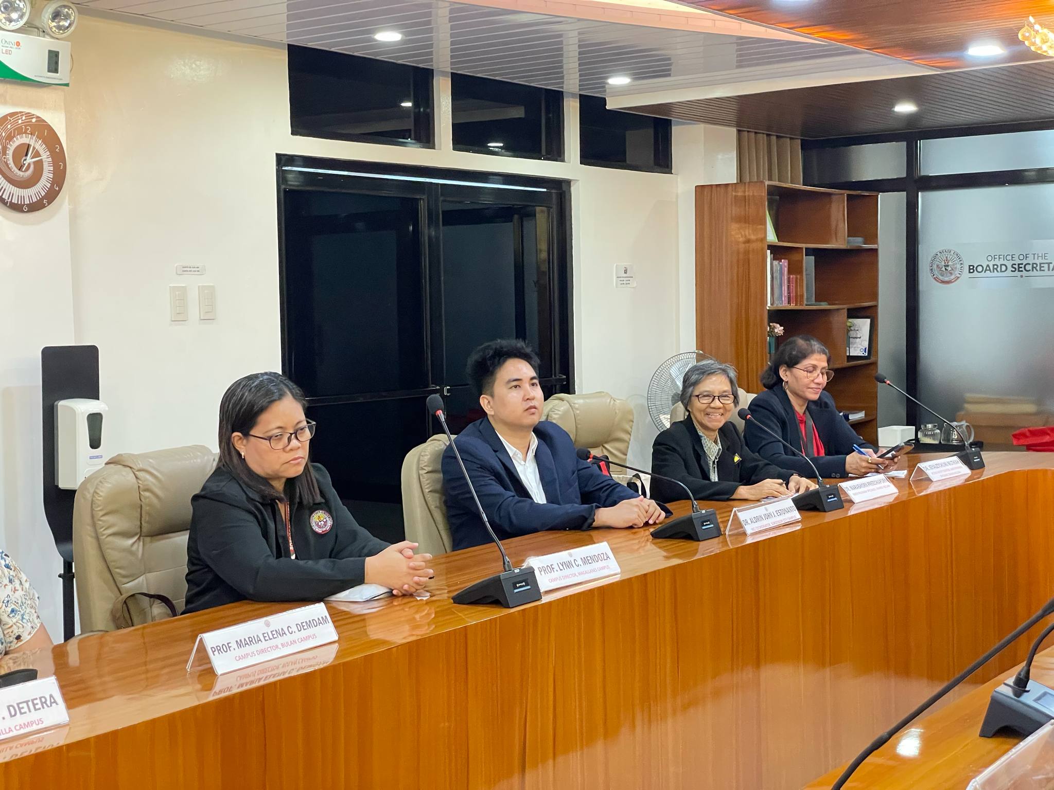 SorSU officials including Dr. Ryan V. Dio (Vice President for Research, Extension and Training), Dr. Vivien L. Chua (Director, International Relations Office), Dr. Susan S. Janer (Dean, Graduate Studies), Prof. Ma. Elena C. Demdam (Campus Director, Bulan Campus), Prof. Andrew F. Detera (Campus Director, Castilla Campus), Prof. Lynn C. Mendoza (Campus Director, Magallanes Campus), Dr. Alfonzo L. Garcia, Jr. (Dean, College of Teacher Education), Dr. Ma. Claire M. Dicen (Dean, College of Business and Management), Dr. Orlando D. Doncillo (Dean, College of Technology), Dr. Teresa Haide R. Belgica (Dean, Health and Science), Engr. Rufo D. Durian III (Dean, Engineering and Architecture), Dr. Aldrin John J. Estonanto (IRO Coordinator, Sorsogon City Campus), Dr. Olive Mancera (Dean, Education, Magallanes Campus), Ms. Glicelda Perol (Program Chair, Entrep, Magallanes Campus), and Prof. Nestor G. Gutiza, Jr. were also in attendance during the meeting. (SorSU PIO)