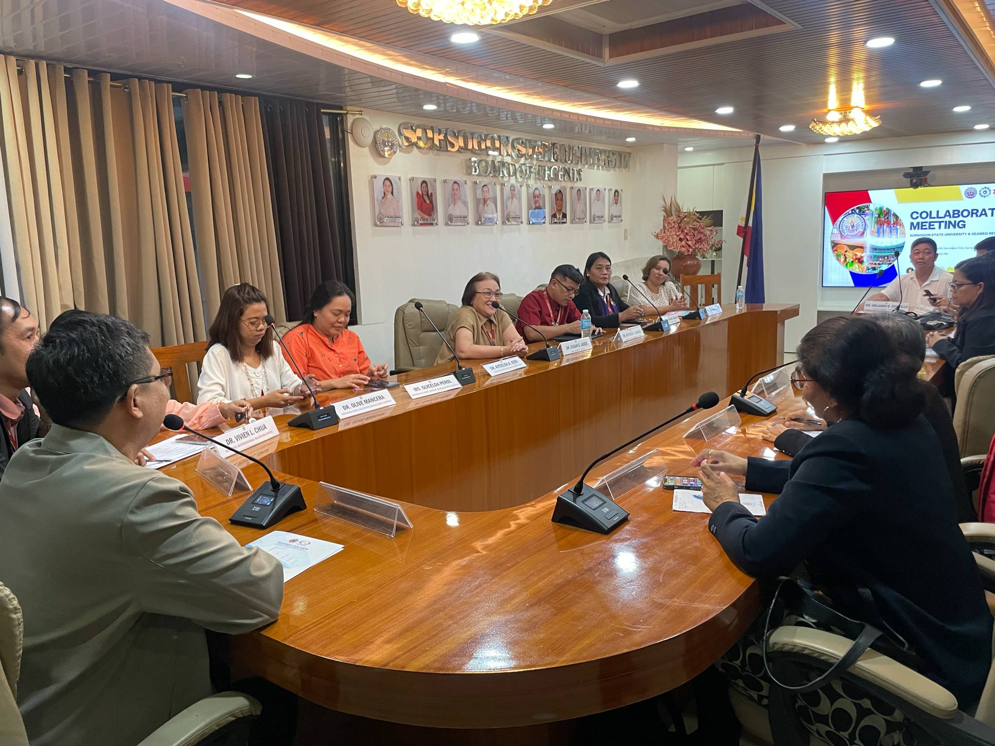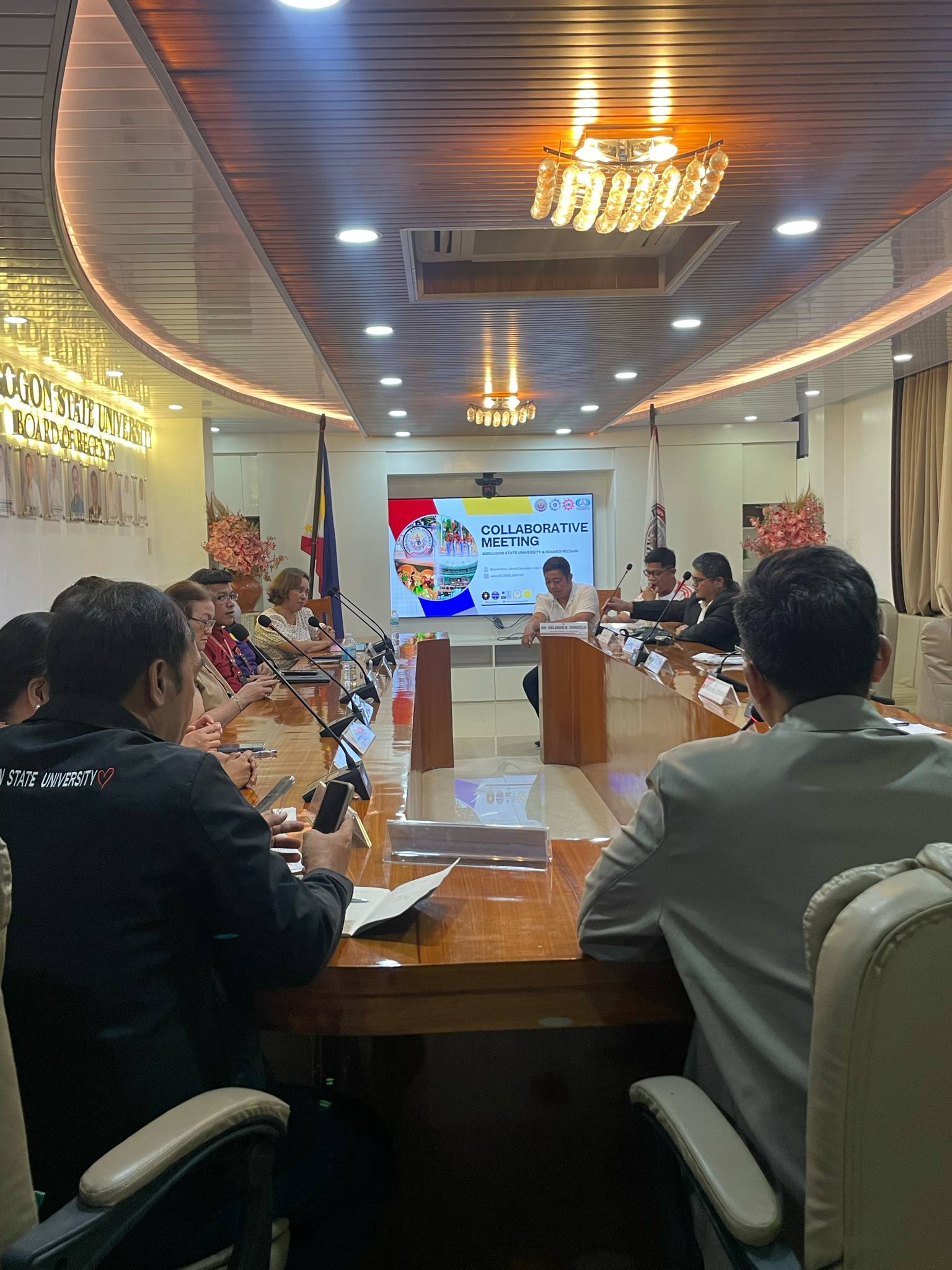 Sorsogon State University (SorSU) and the Southeast Asian Ministers of Education Organization Regional Centre for Education in Science and Mathematics (SEAMEO RECSAM) convened on June 25, 2025, at the SorSU Board Room, Sorsogon City Campus, to discuss initiatives aimed at enhancing academic collaboration and professional development between the two institutions.