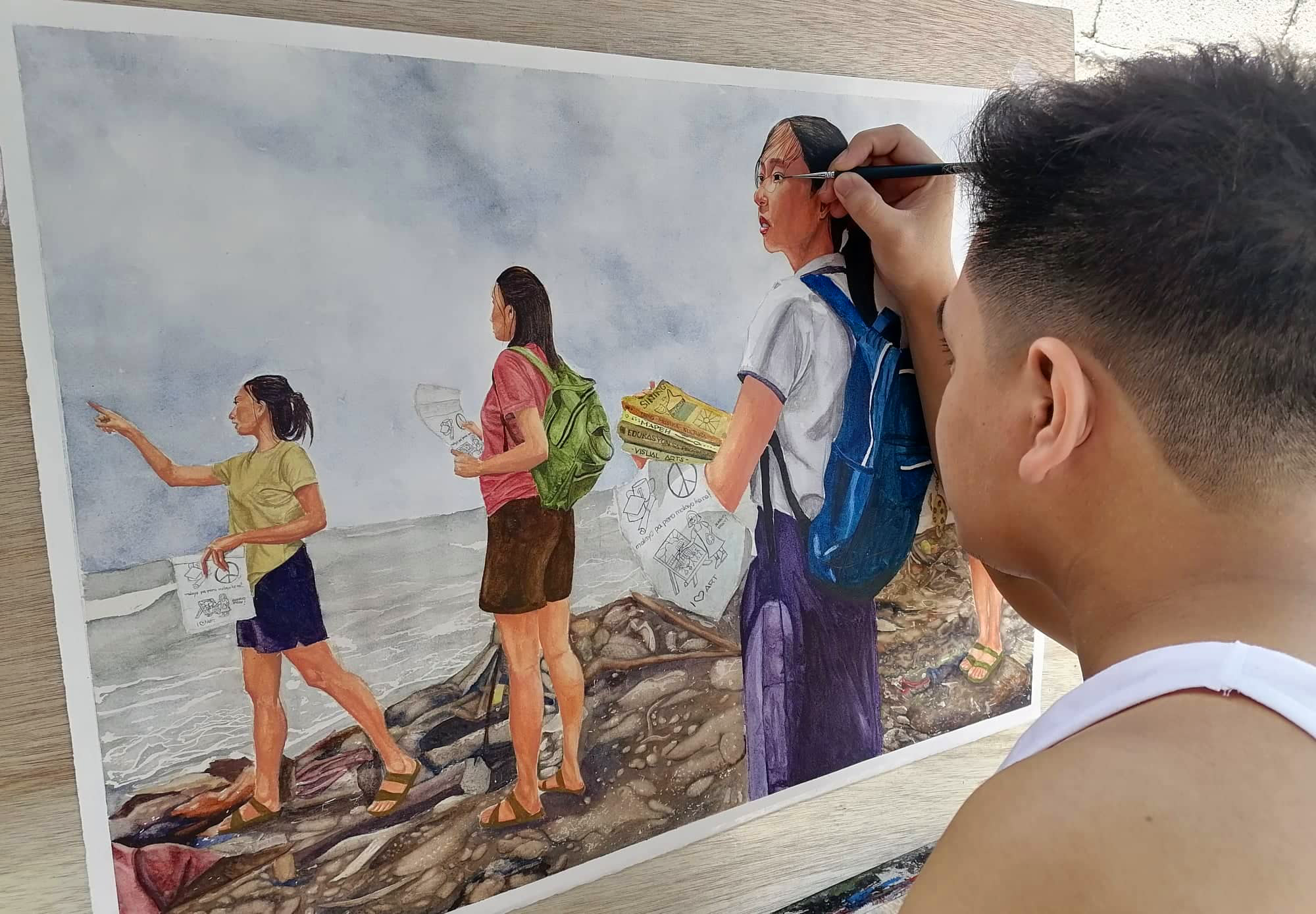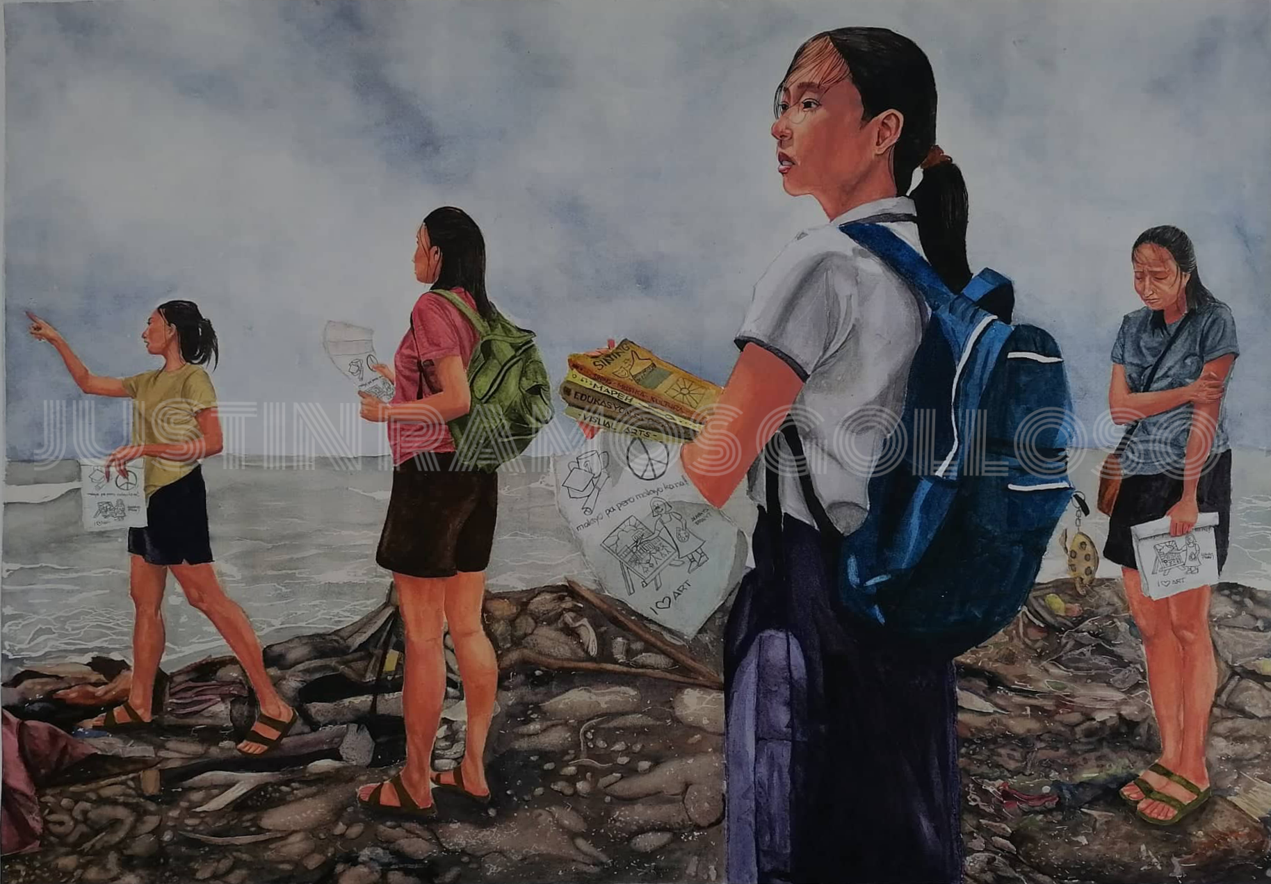 Part of the mechanics of the event was to base the artworks on the centralized theme of “𝘗𝘢𝘯𝘨𝘢𝘳𝘢𝘱 𝘴𝘢 𝘒𝘪𝘯𝘢𝘣𝘶𝘬𝘢𝘴𝘢𝘯”, which forged inspiration to Golloso in executing his art, he said, “𝘐 𝘸𝘢𝘴 𝘢𝘣𝘭𝘦 𝘵𝘰 𝘷𝘪𝘴𝘶𝘢𝘭𝘪𝘻𝘦 𝘸𝘩𝘢𝘵 𝘵𝘰 𝘱𝘢𝘪𝘯𝘵 𝘢𝘯𝘥 𝘸𝘩𝘢𝘵 𝘮𝘺 𝘴𝘵𝘰𝘳𝘺 𝘢𝘯𝘨𝘭𝘦 𝘸𝘰𝘶𝘭𝘥 𝘣𝘦 𝘣𝘺 𝘪𝘯𝘤𝘰𝘳𝘱𝘰𝘳𝘢𝘵𝘪𝘯𝘨 𝘮𝘺 𝘰𝘸𝘯 𝘴𝘵𝘰𝘳𝘺… 𝘍𝘶𝘳𝘵𝘩𝘦𝘳𝘮𝘰𝘳𝘦, 𝘐 𝘴𝘩𝘰𝘸𝘦𝘥 𝘪𝘯 𝘮𝘺 𝘢𝘳𝘵 𝘵𝘩𝘦 𝘪𝘮𝘱𝘰𝘳𝘵𝘢𝘯𝘤𝘦 𝘰𝘧 𝘦𝘥𝘶𝘤𝘢𝘵𝘪𝘰𝘯 𝘪𝘯 𝘢𝘤𝘩𝘪𝘦𝘷𝘪𝘯𝘨 𝘥𝘳𝘦𝘢𝘮𝘴”. He also added that he chose women as his art subject since they also symbolize life and love similar to his love and commitment to the arts.