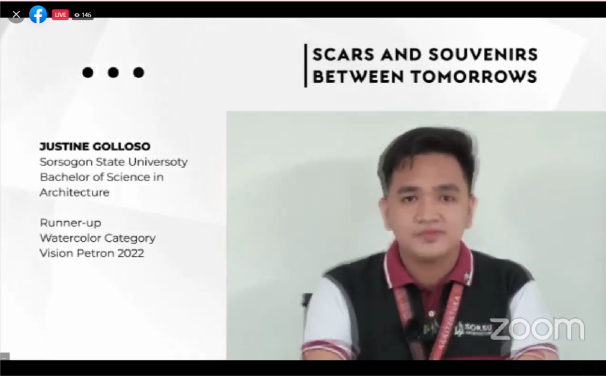 Sorsogon State University third-year Bachelor of Science in Architecture student, Mr. Justin R. Golloso, won Runner Up at the Vision Petron National Student Art Competition 2022 announced during the Vision Petron 2022 Awards last April 28, 2023.