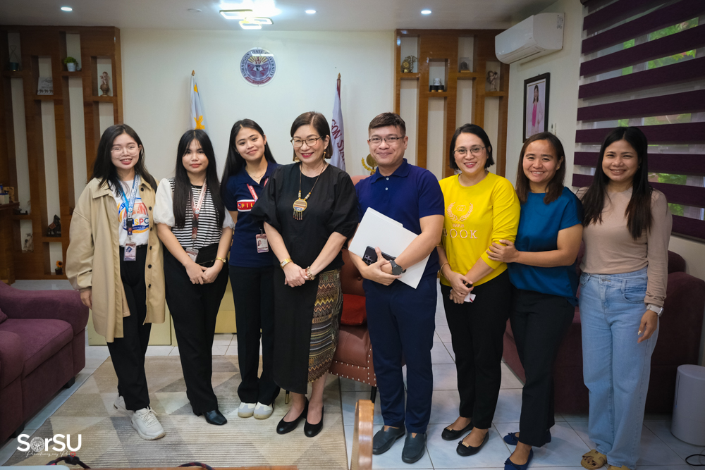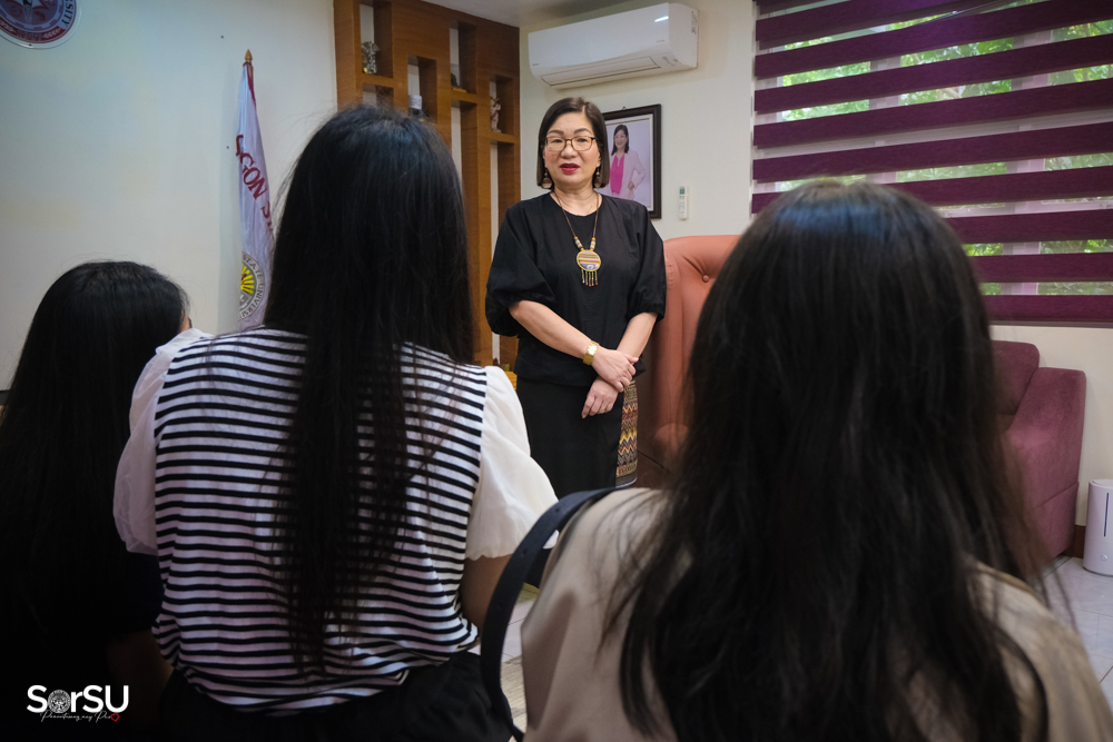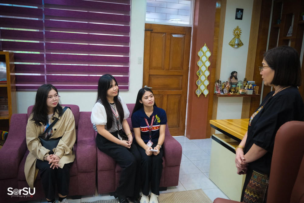 Three (3) fourth-year students of the Bachelor of Elementary Education (BEED) program at Sorsogon State University (SorSU) paid a courtesy visit to SUC President III, Dr. Geraldine F. De Jesus, following the successful completion of their international work immersion in Japan.