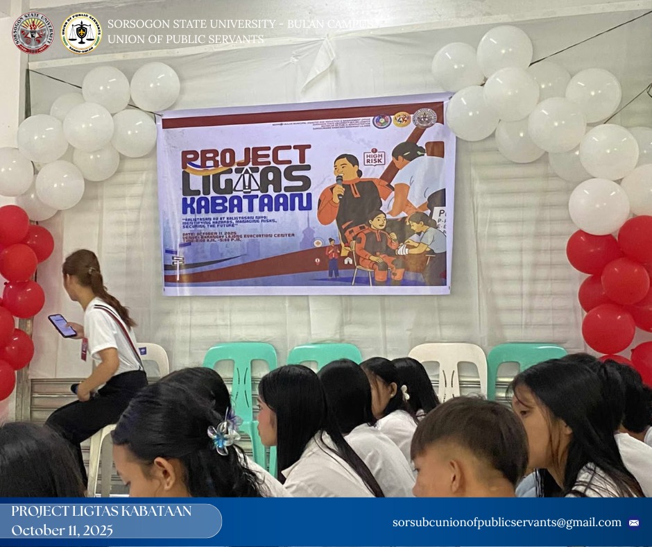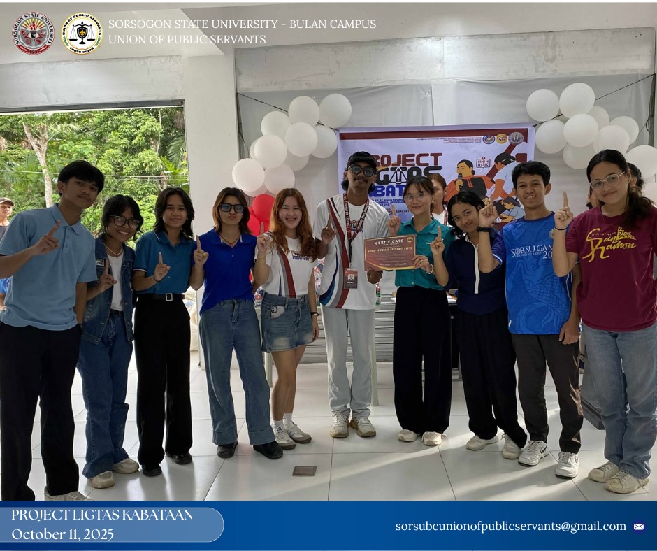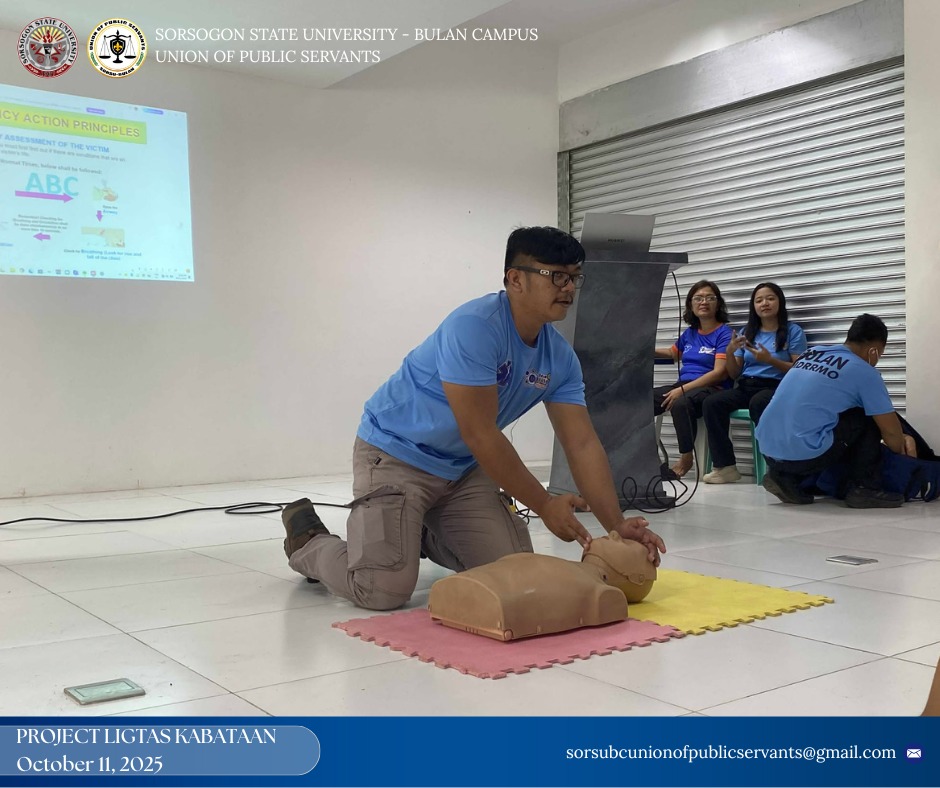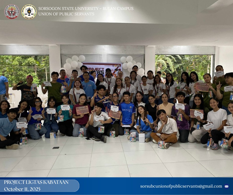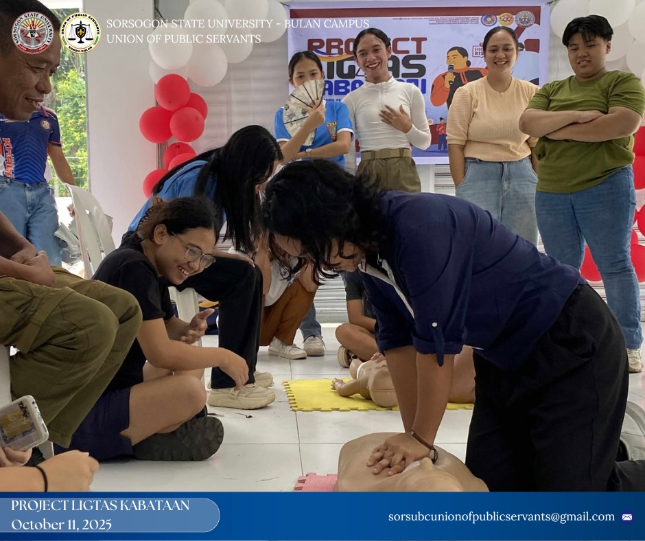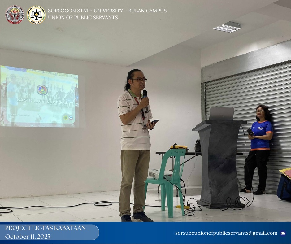 The Union of Public Servants enthusiastically joined the project implementation of selected 4th Year BPA students with partnership of the Sangguniang Kabataan of Barangay Lajong for the impactful training and seminar tagged as “PROJECT LIGTAS KABATAAN – KALIGTASAN KO AT KALIGTASAN NIYO: Identifying Hazards, Managing Risks, Securing The Future.” Effectively headed and instructed by the Bulan Municipal Disaster Risk Reduction and Management Office (MDRRMO-BULAN).