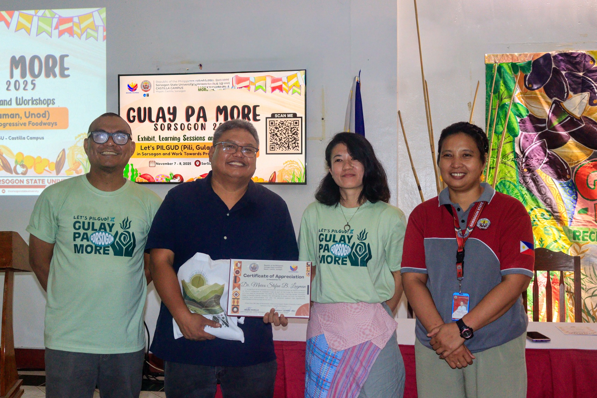 In its pursuit to promote cultural heritage and highlight the rich tapestry of Sorsogon, Sorsogon State University – Castilla Campus, in partnership with Gulay Pa More, successfully conducted a two-day Gulay Pa More – Sorsogon Exhibits, Learning Sessions, and Workshops on November 7–8, 2025, at the Farmers Training Center. The initiative aimed to holistically promote wellness and cultural heritage by encouraging healthy eating habits, community engagement, and the celebration of local traditions.