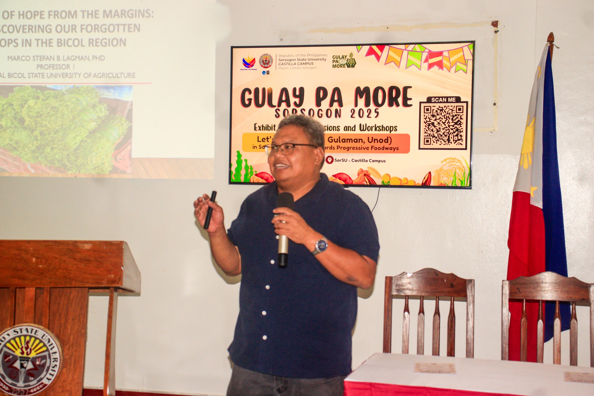 In the morning, the event featured presentations by distinguished speakers on indigenous and local resources, including pili, gulaman, and unod, aligned with the event’s theme. Dr. Marco Stefan B. Lagman, Professor at CBSUA, discussed Bicol’s Indigenous and Localized Crops. Following this, Mr. Joeriz P. Olbes, President of the Philippine Pili Industry League, shared insights on Cultural Management of Pili. Adding a marine perspective, Dr. Richard V. Dumilag, Professor and Seaweed Scientist at SorSU, highlighted Seaweed Ethnobotany.