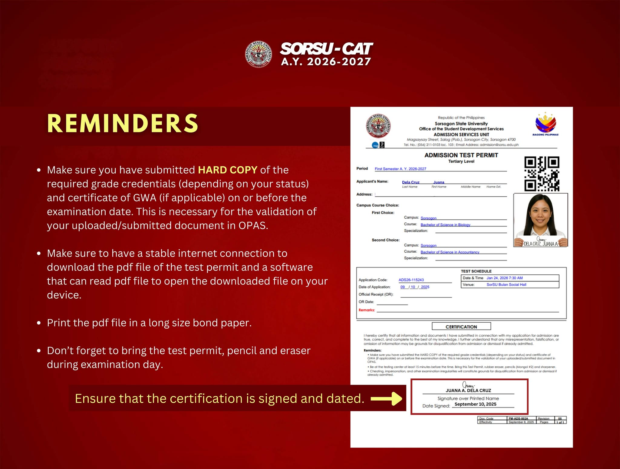 The SorSU Admission Test is coming! Examinees, gear up and make sure your test permit is ready!